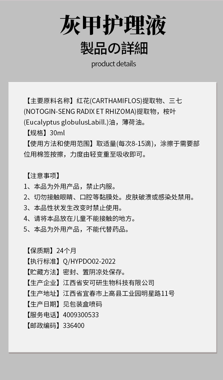 【养甲辅助 保卫手足】日本汉方灰甲护理液 滋养不损甲根 灰指甲液30ml/瓶