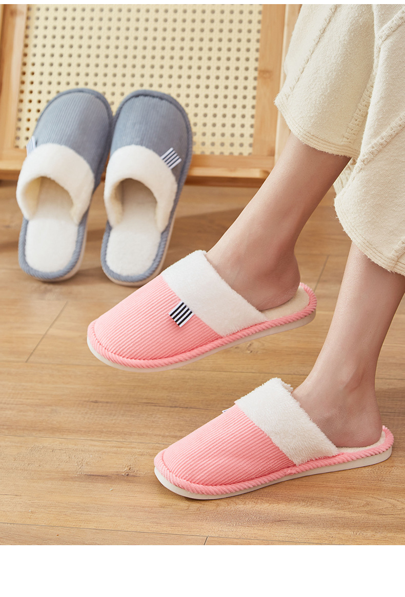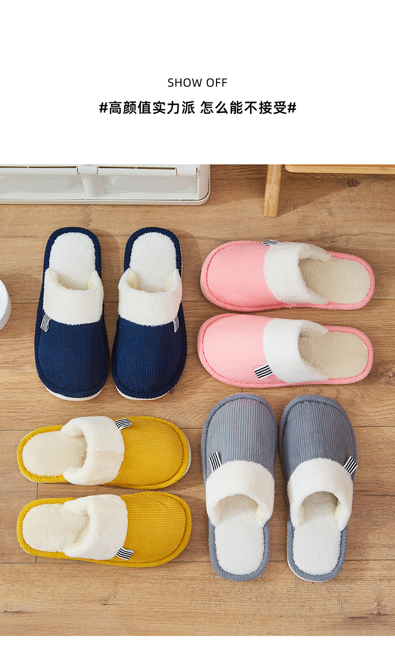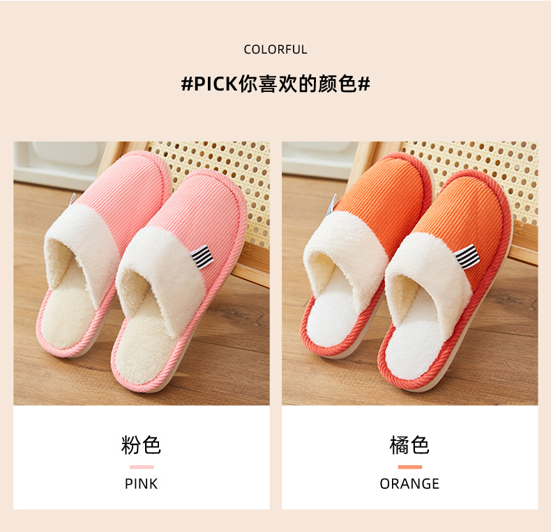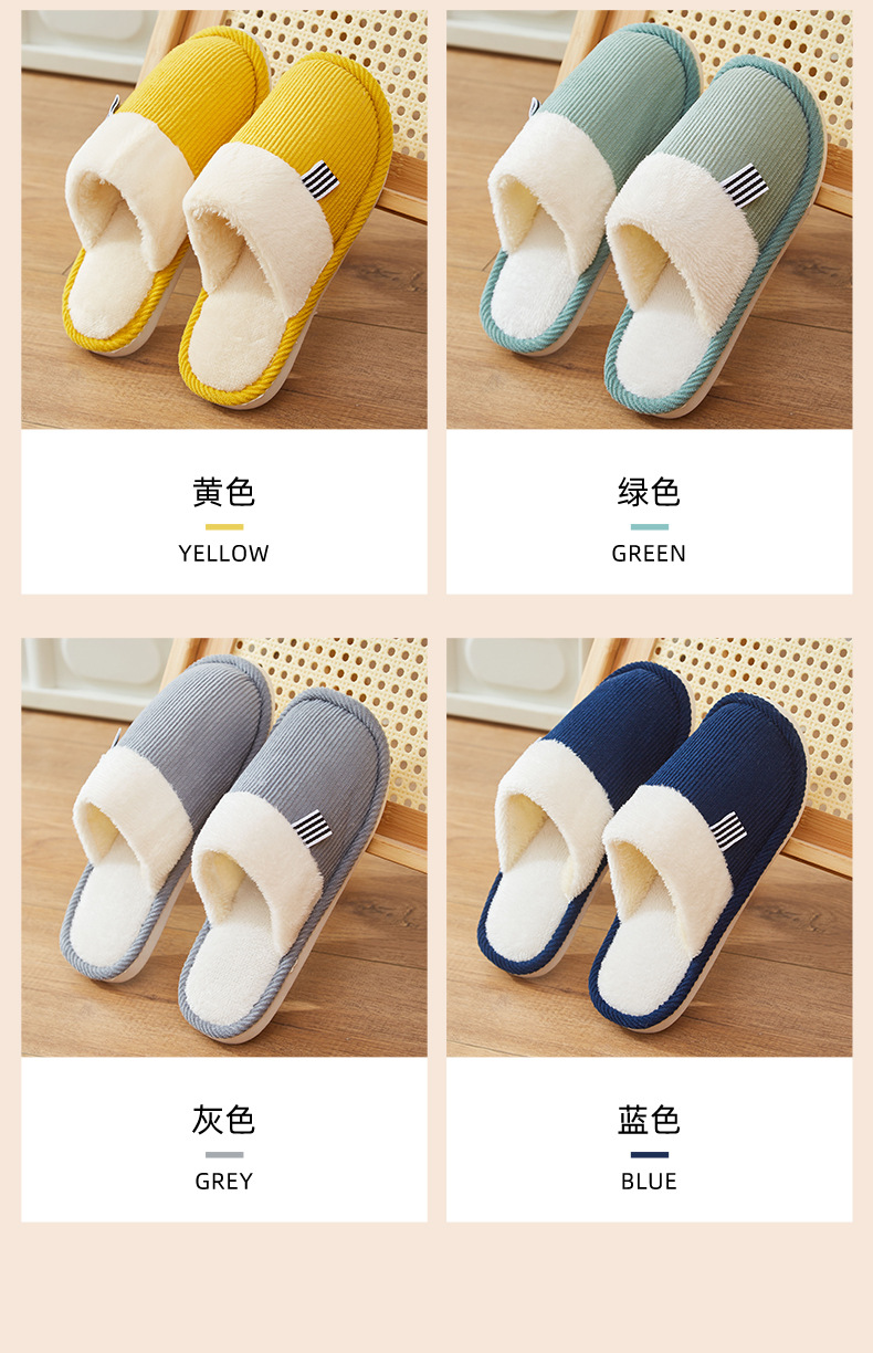 「六色可选!灯芯绒面料」棉拖鞋冬季简约日系棉拖室内地板 男女家居PVC防滑地板拖