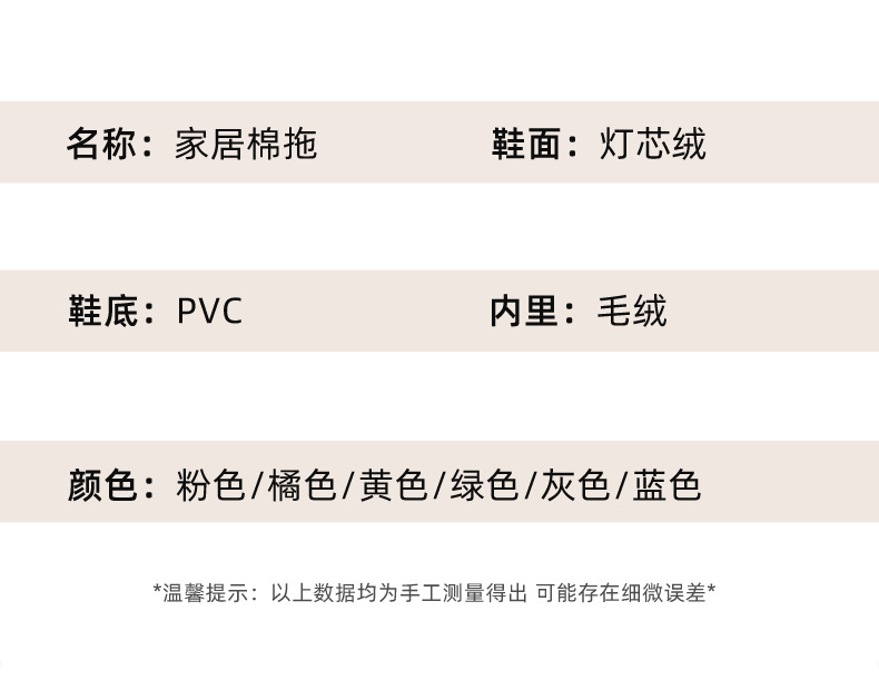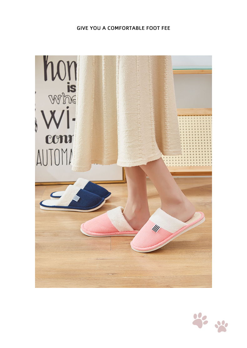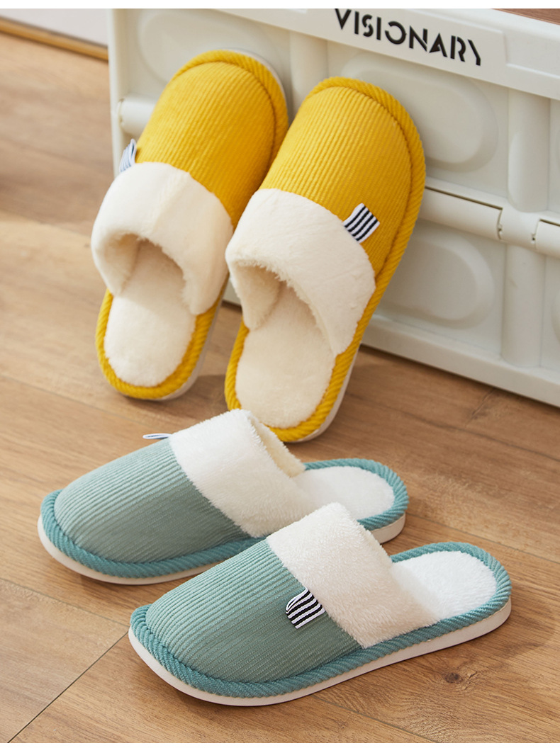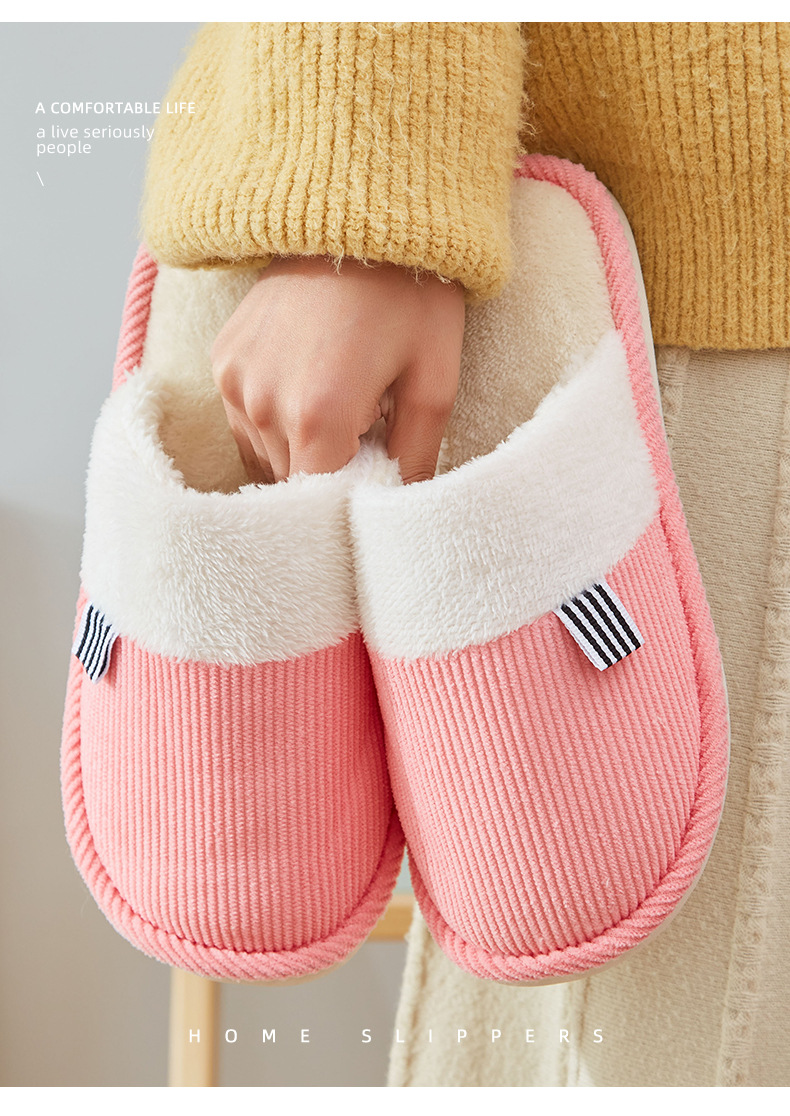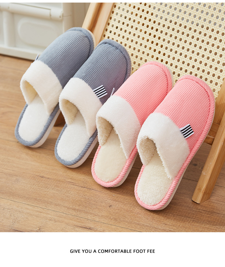 「六色可选!灯芯绒面料」棉拖鞋冬季简约日系棉拖室内地板 男女家居PVC防滑地板拖