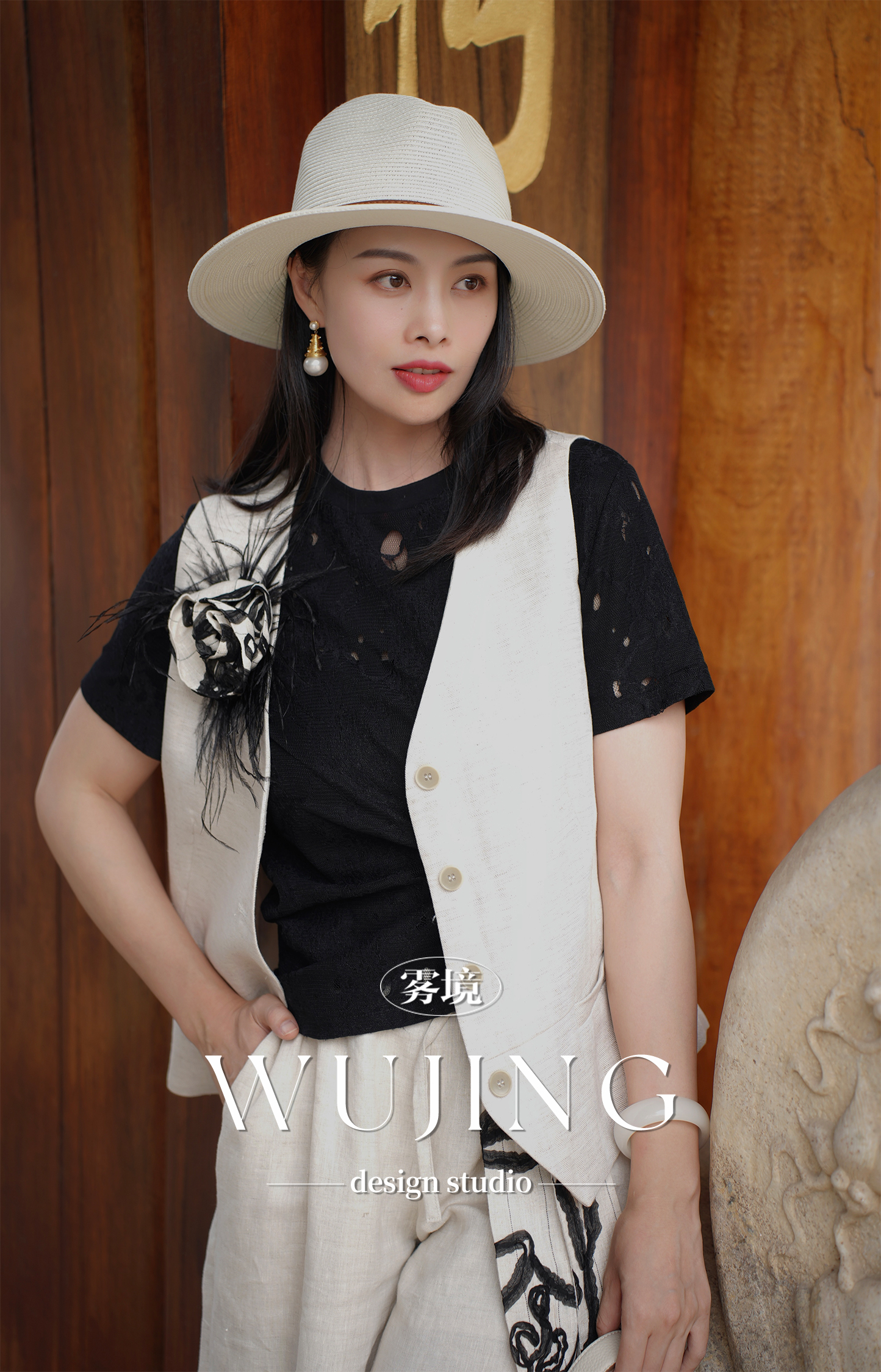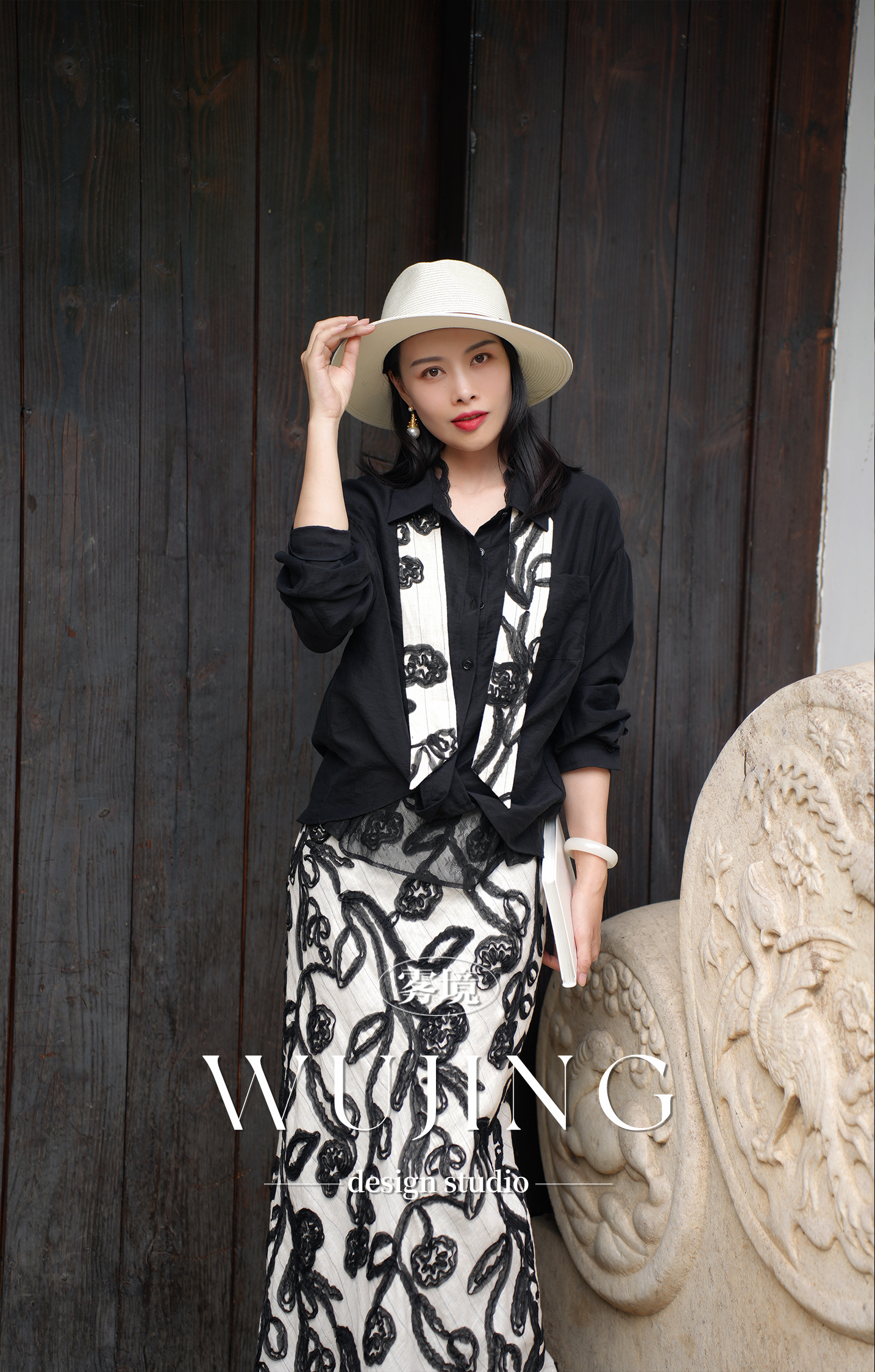 【雾境定制】黑金锦竹高级感新中式拼皮刺绣上衣外套 3203095