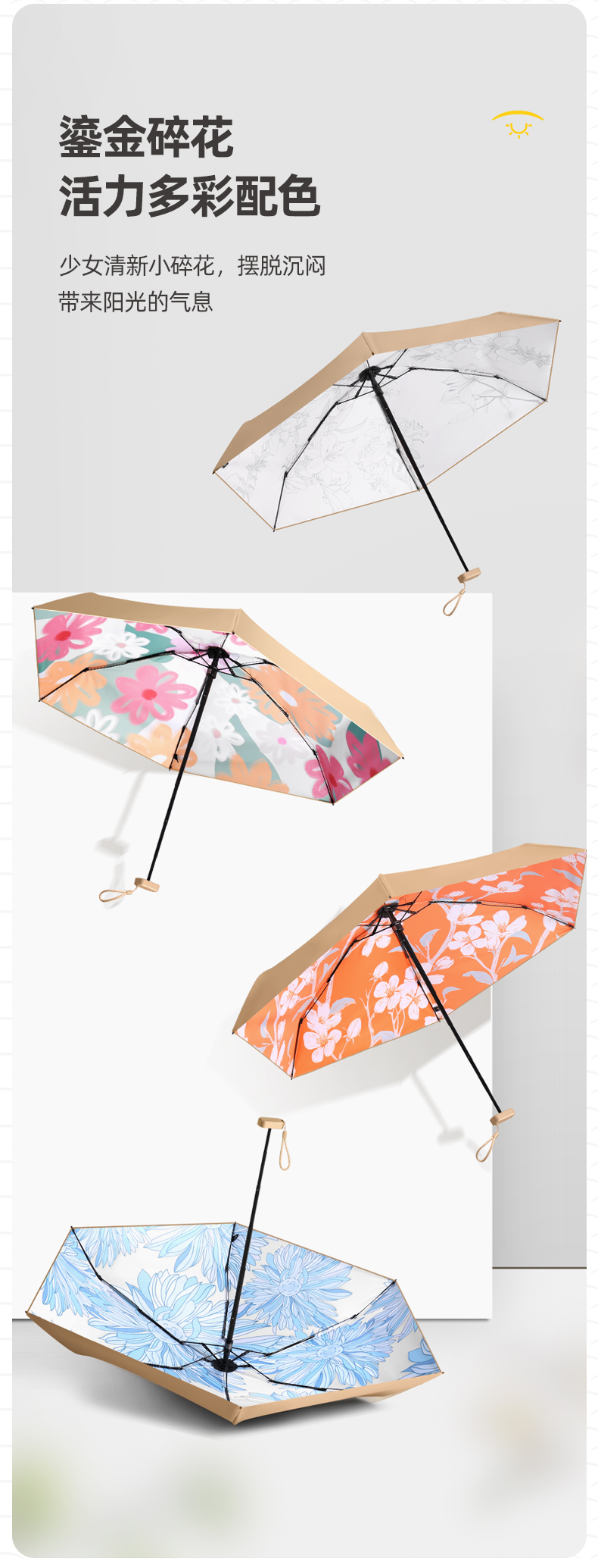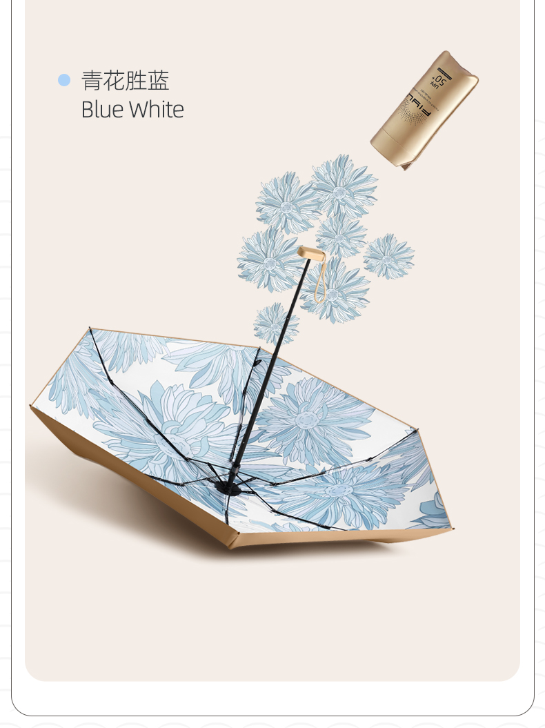 【品名】日本FIYU小金伞2.0 扁小轻 晴雨两用 随行简约 4款可选 【规格】春田花花,百合馥郁,青花胜蓝,山茶细语 【产地】国内 【发货包装】独立包装盒 【发货地】浙江 【发货快递】邮政 申通 【不发货区域】港澳台 【补邮费地区】新疆,西藏+5元 【发货时效】48-72小时,周末节假日顺延 |