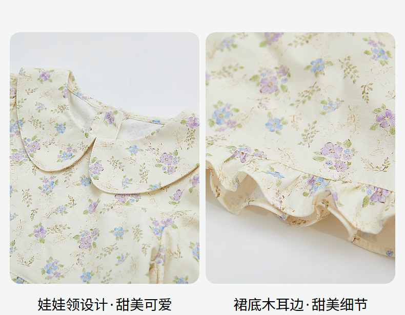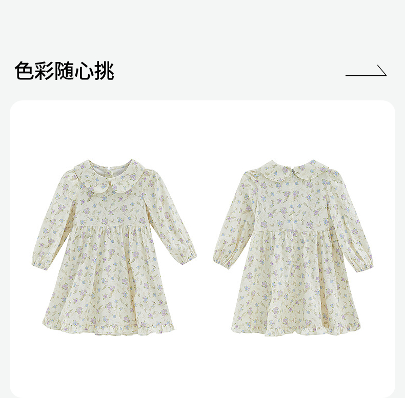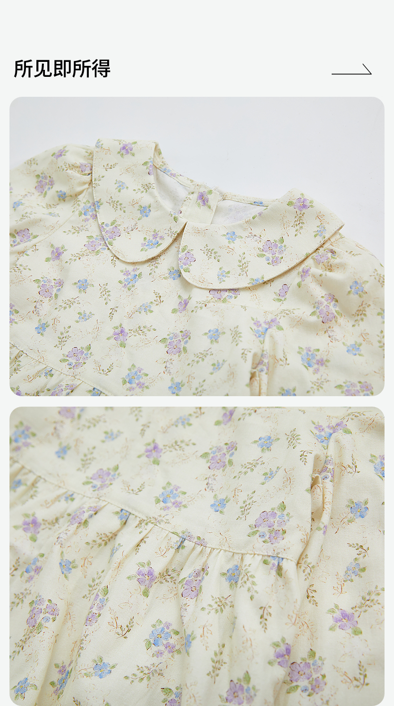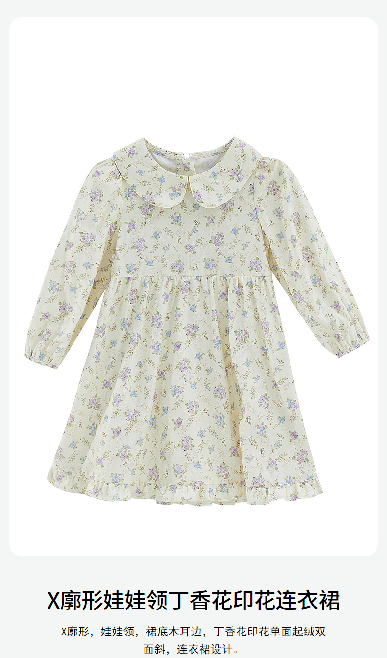 DEESHA/笛莎笛莎童装2024秋季新款娃娃领丁香花印花连衣裙