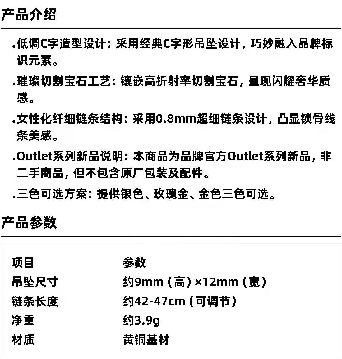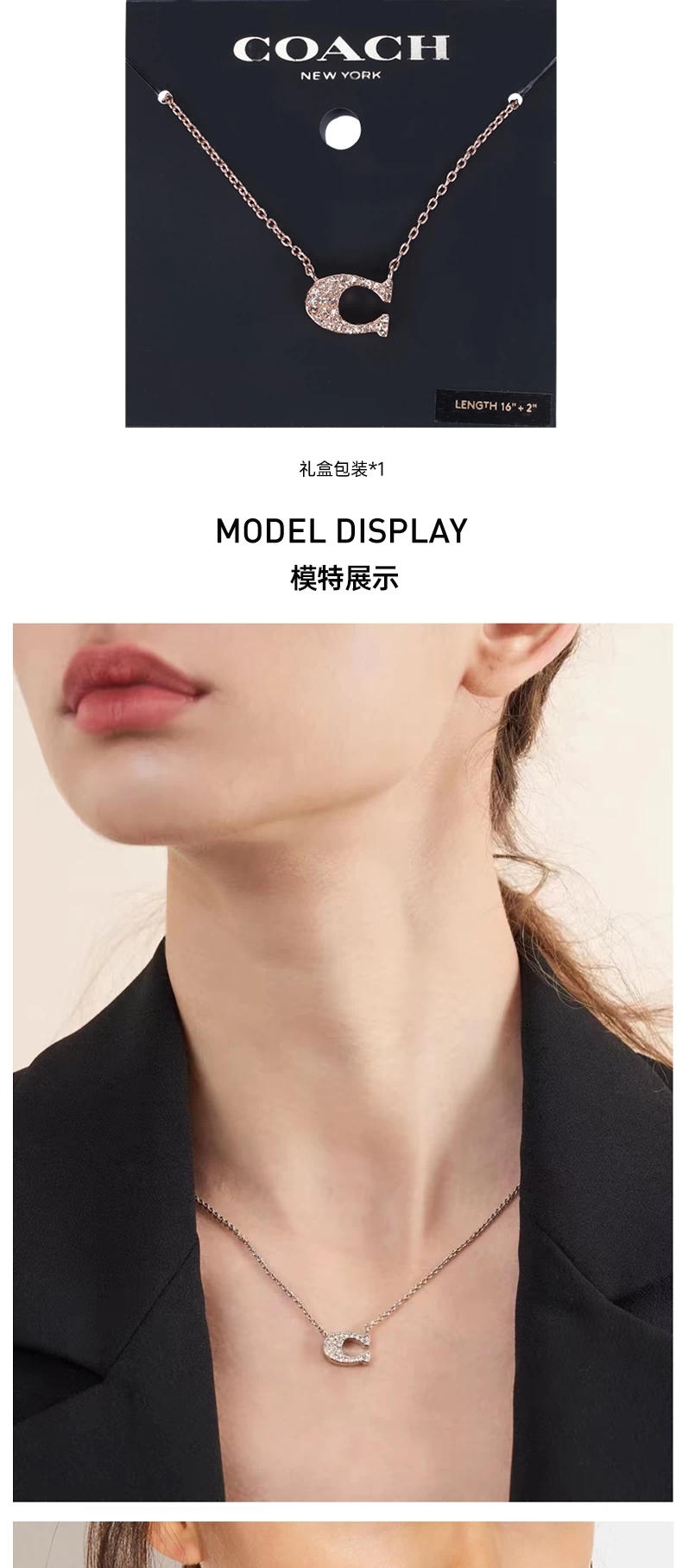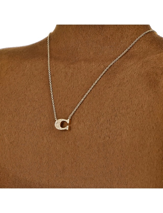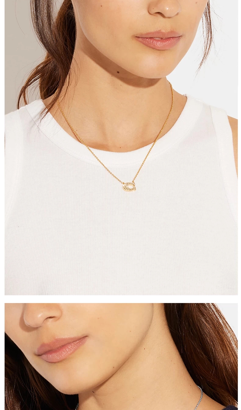 【新春特惠】【品牌授权】COACH蔻驰奥莱潮流高奢饰品项链 经典C标志密镶项链-金色
