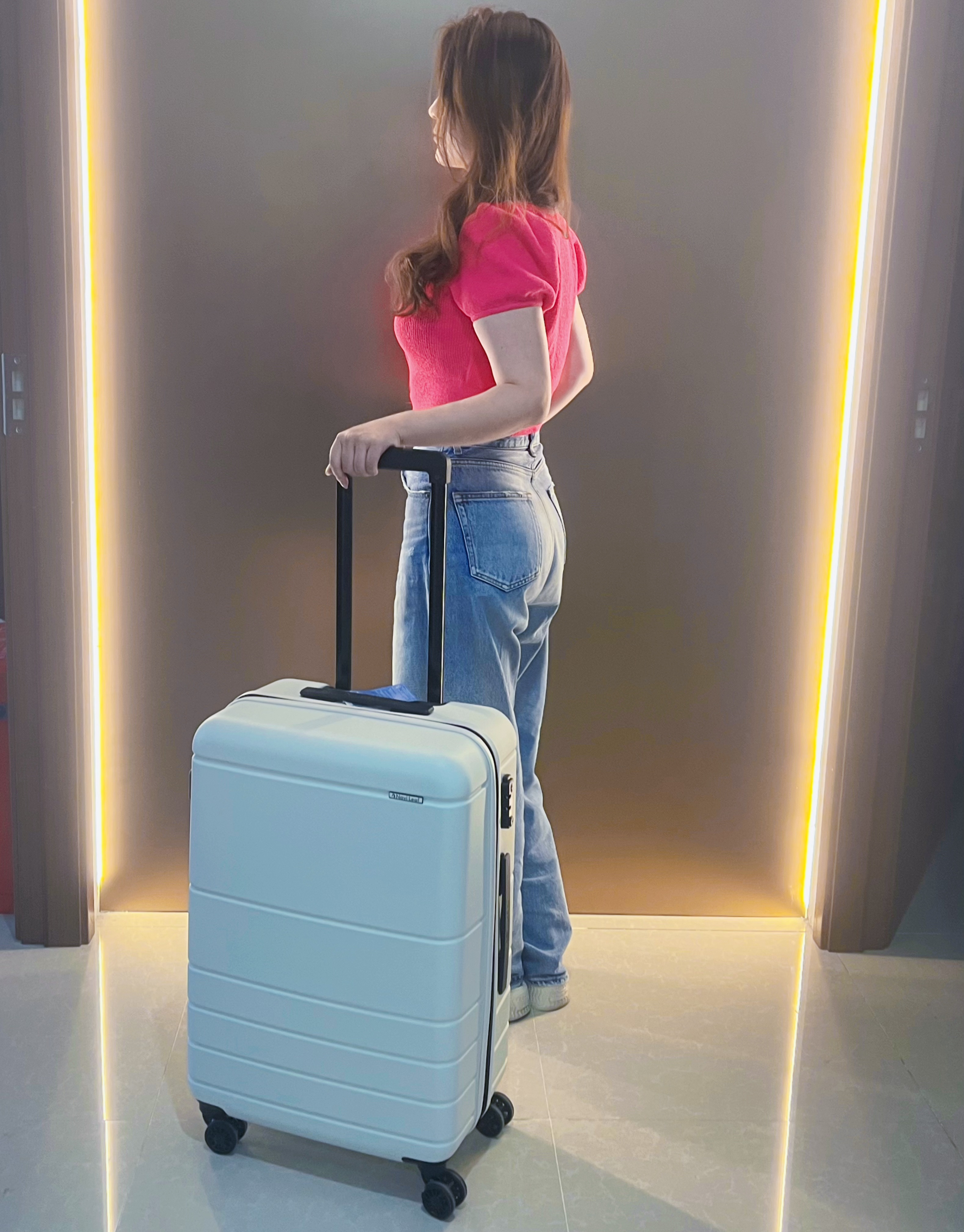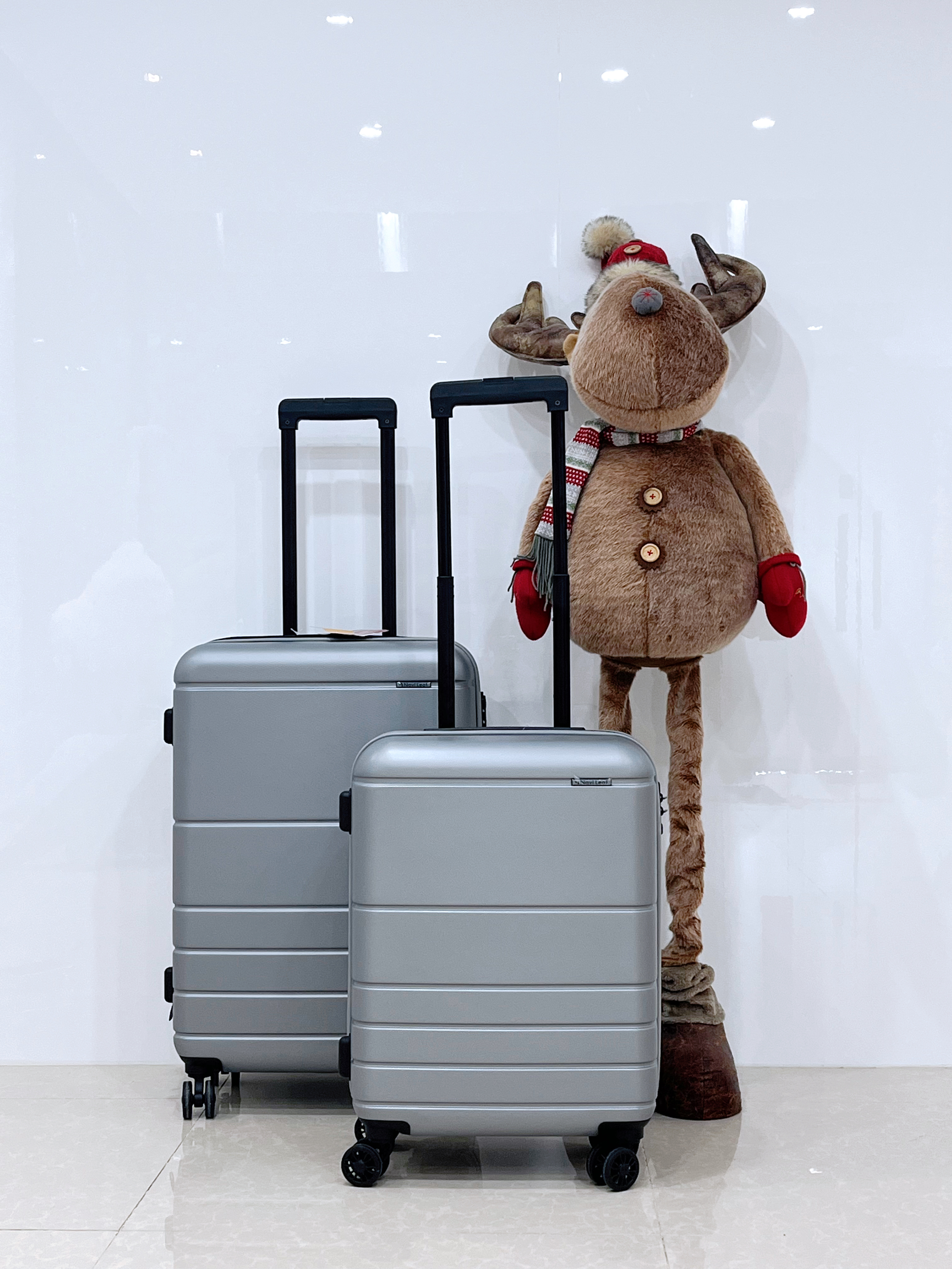 ⚠️PC材质+汽车保险杠材质ABS 牢固有质感的材料 箱体高强度坚韧,耐磨耐摔 怎么造都不会轻易坏 成年人踩上去都不会变形 可以扛得住托运中的摔摔打打 横条纹的设计,美观又防刮花 非常实用!可以陪伴你好多年!