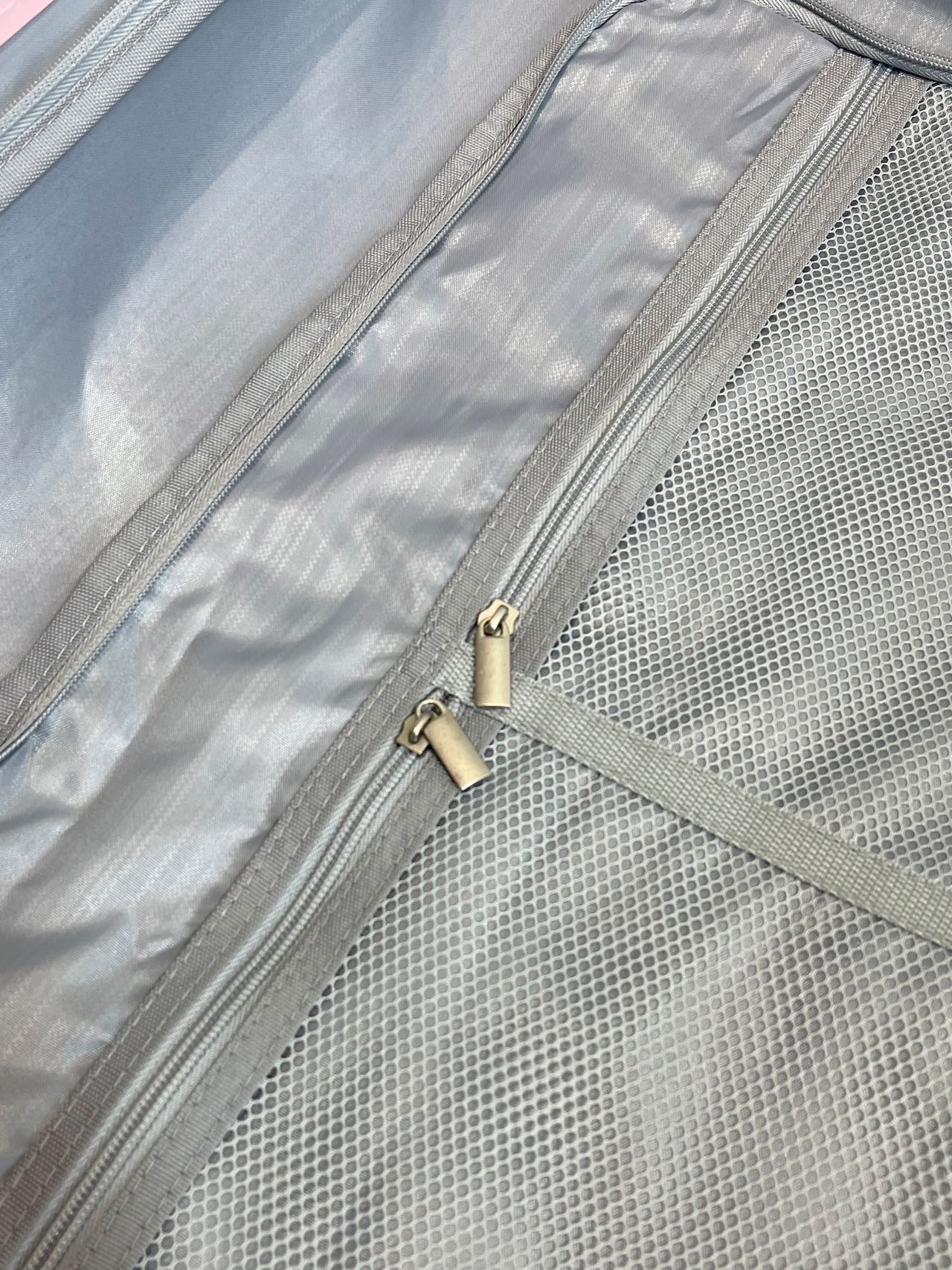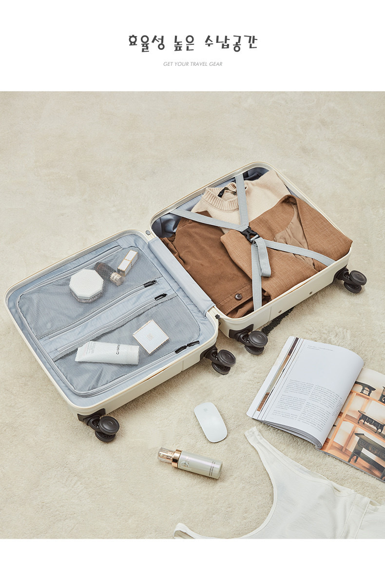 ⚠️内里布局合理,一目了然 打开箱子,一分为二的收纳设计 科学分区,网兜隔离,适合放日常用品 弹力带固定衣物,衣服不变性不错位 上中间的小收纳袋,便于收纳零碎小物品