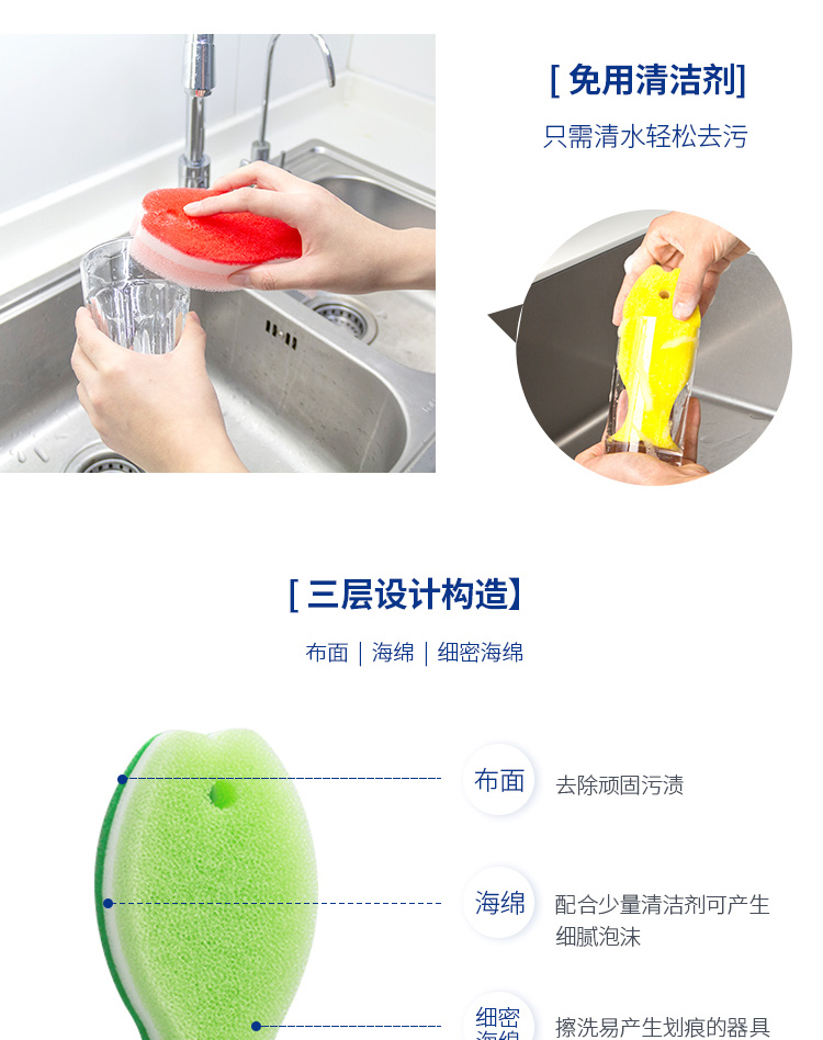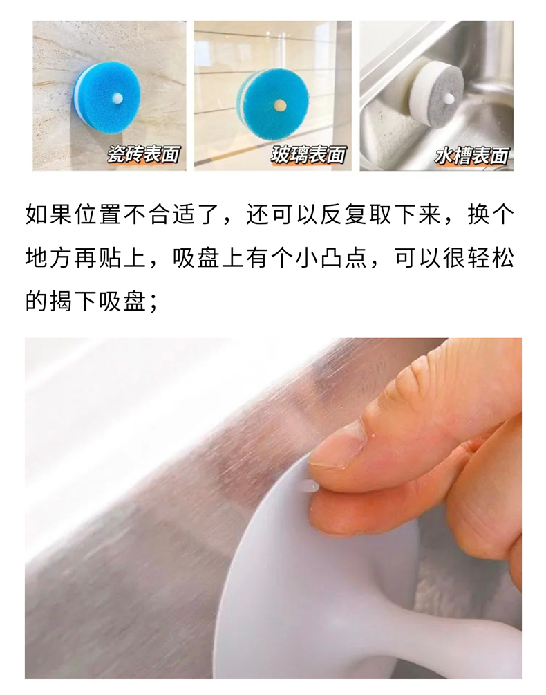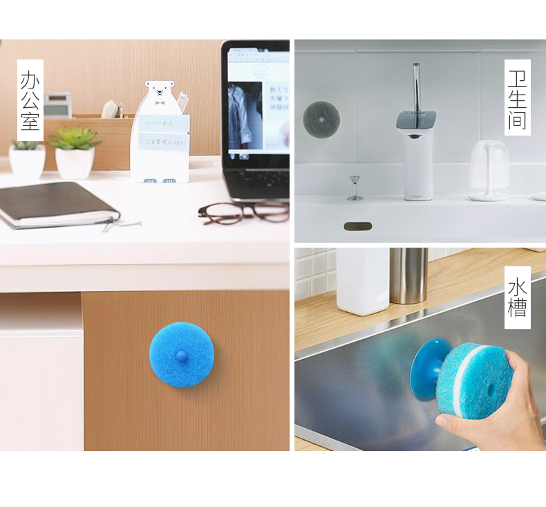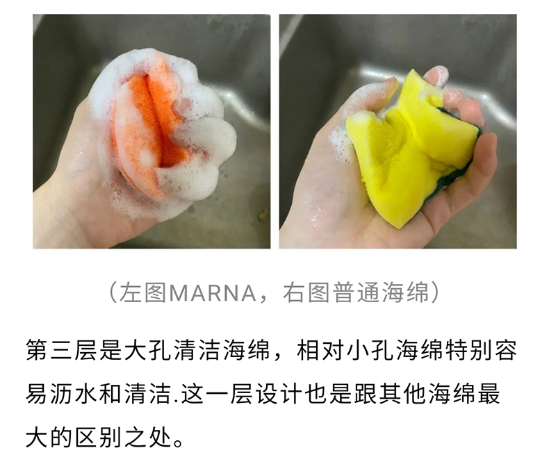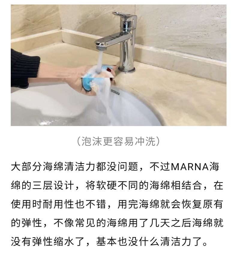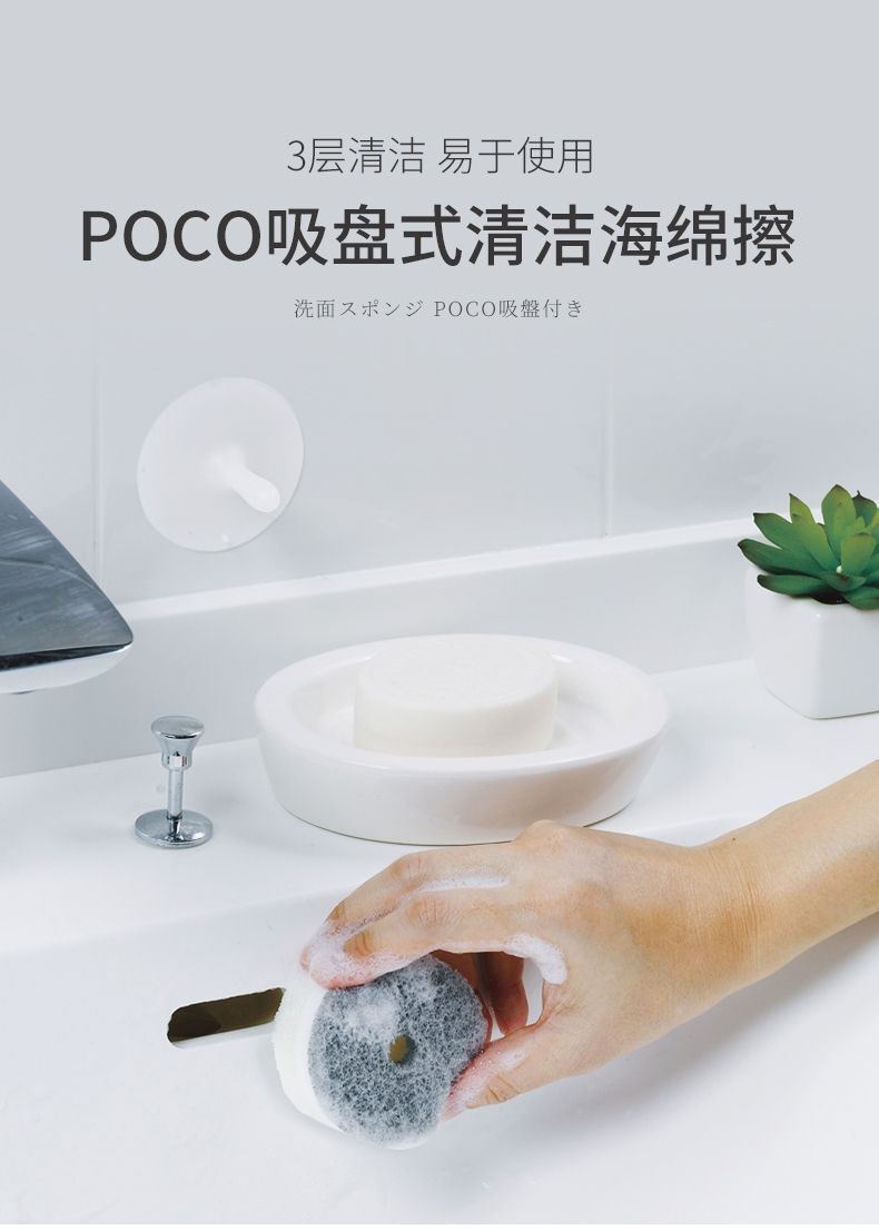 日本MARNA POCO海绵擦带吸盘厨房双面去污洗碗布清洁擦可替换