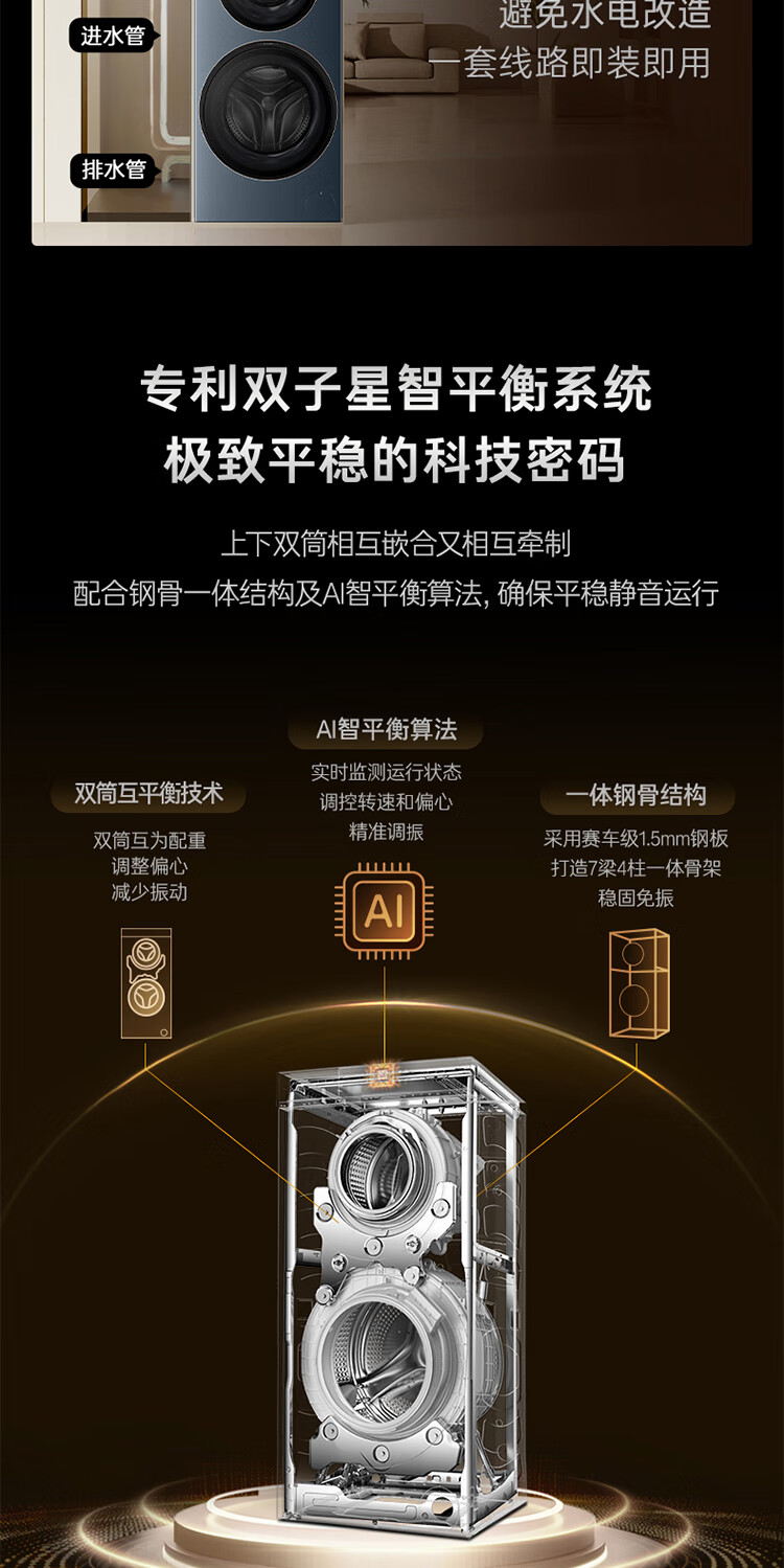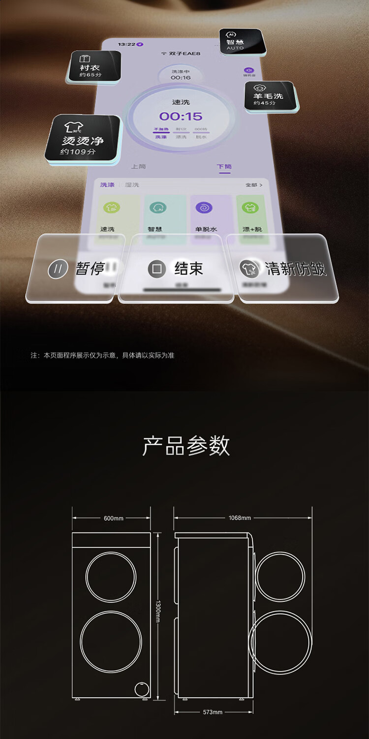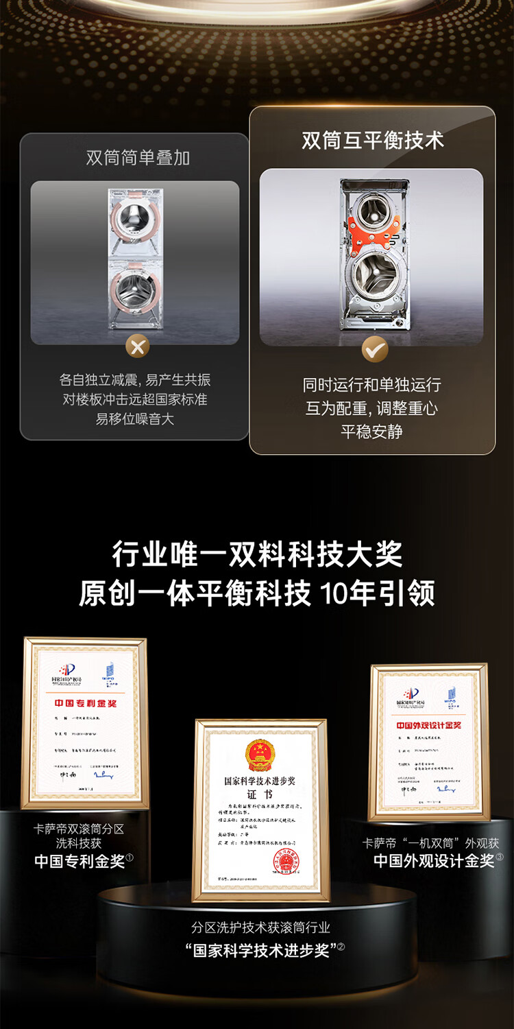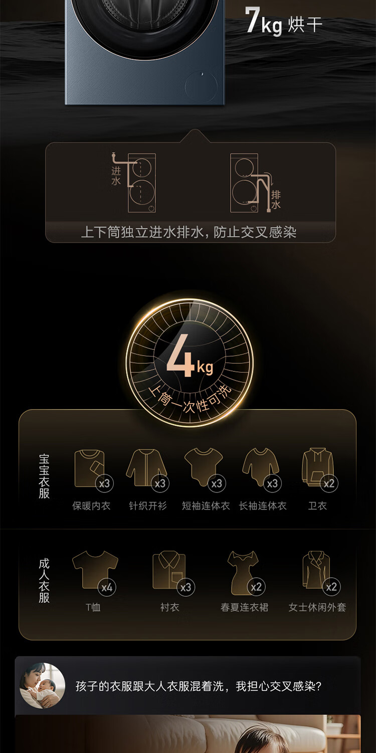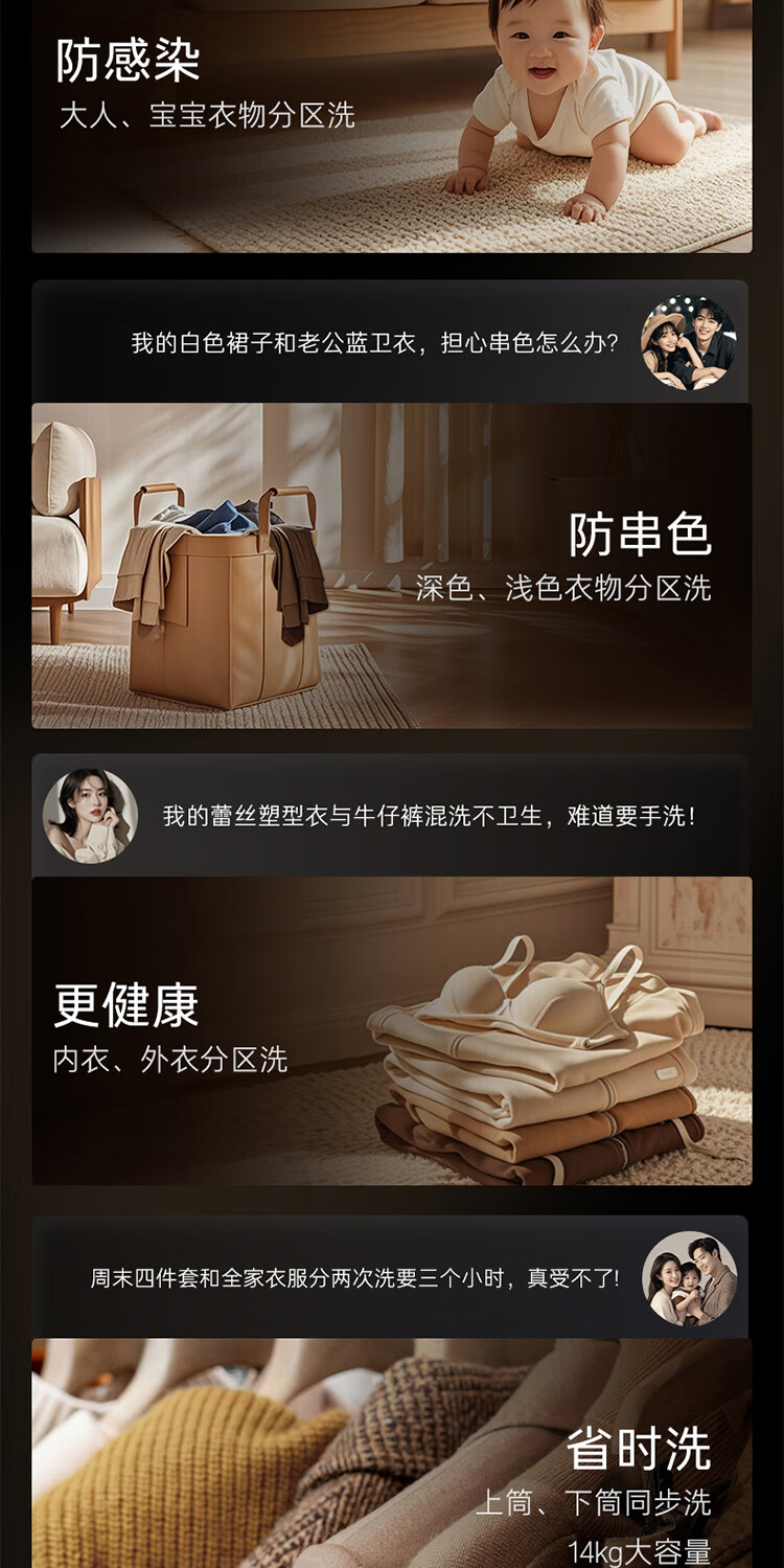 卡萨帝14公斤双子滚筒洗衣机 洗烘一体机 养护湿洗 精华洗 羊毛绿标 UVC紫外除菌螨 95°烫烫净 14公斤分区洗烘一体CS HB14LWCLGU1