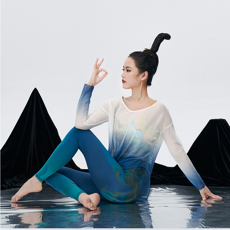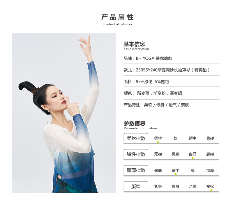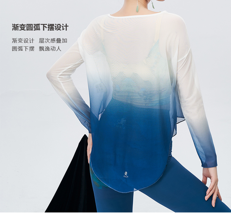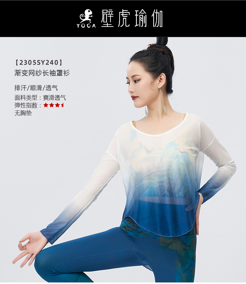 壁虎瑜伽【2305SY240】渐变网纱长袖罩衫(无胸垫)【5天发货】