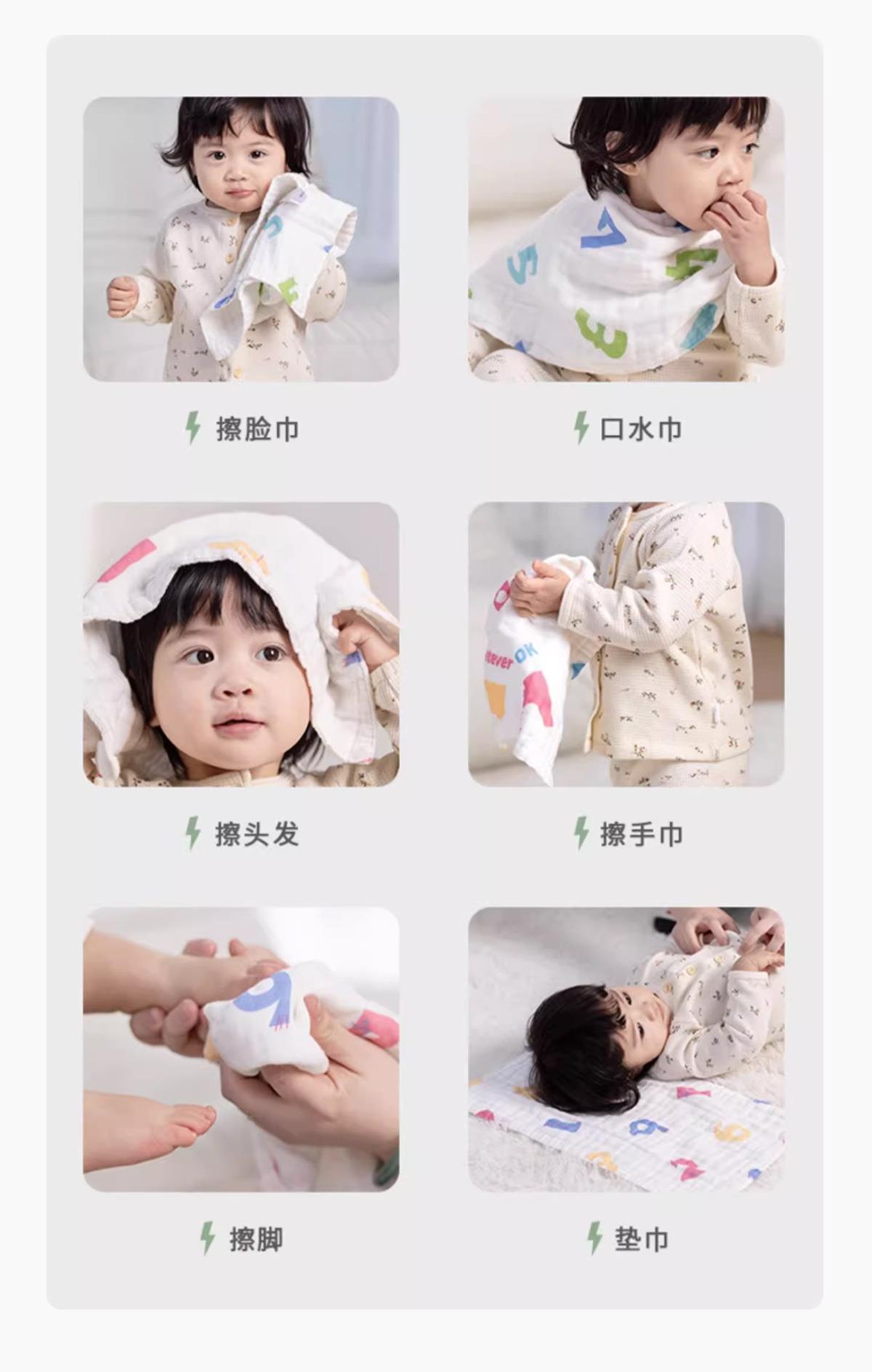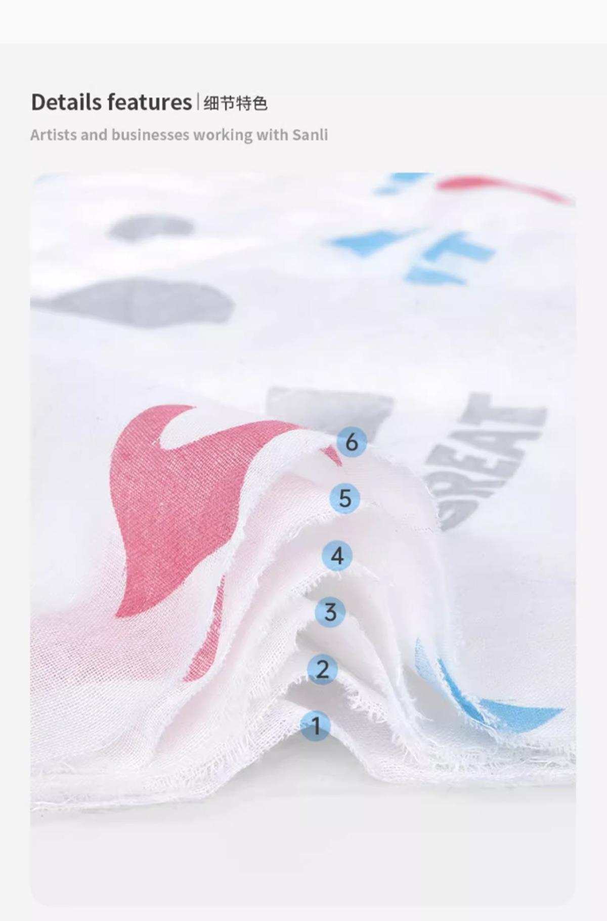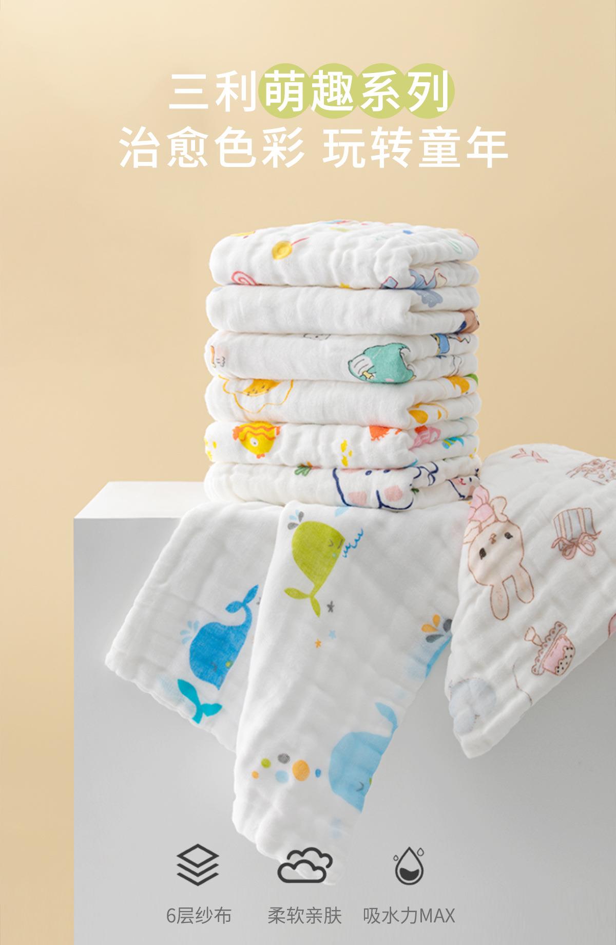 三利毛巾儿童毛巾6层高密纯棉纱布印花毛巾婴儿宝宝新生儿洗脸巾
