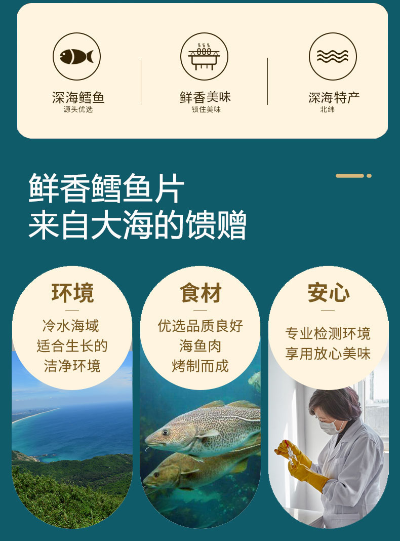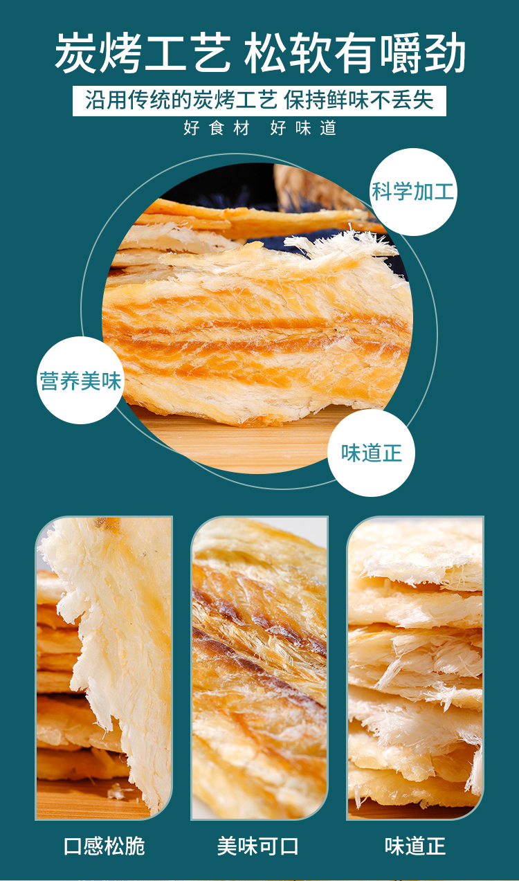 碳烤深海鳕鱼片,5袋组合,深海鳕鱼干烤鱼片,真材实料,肉质疏松,营养丰富,多道工序去腥留鲜,老少皆宜的健康美味零食M