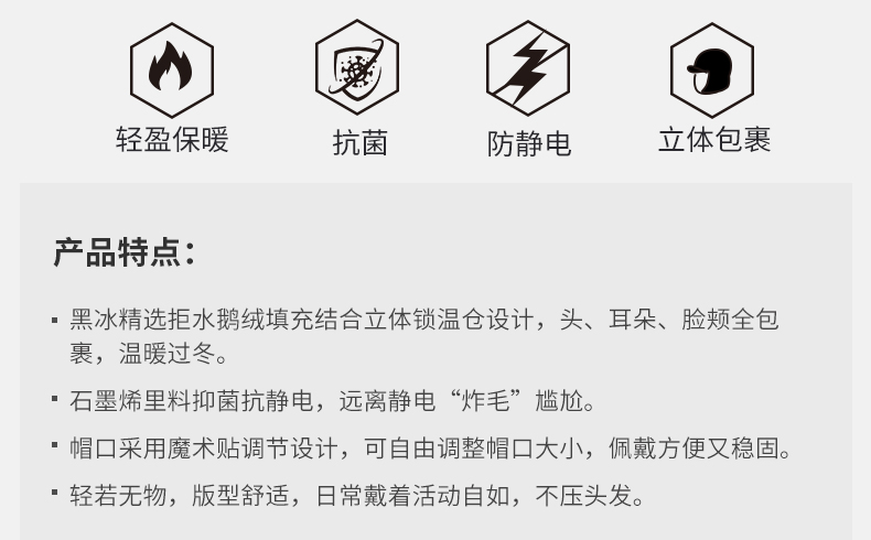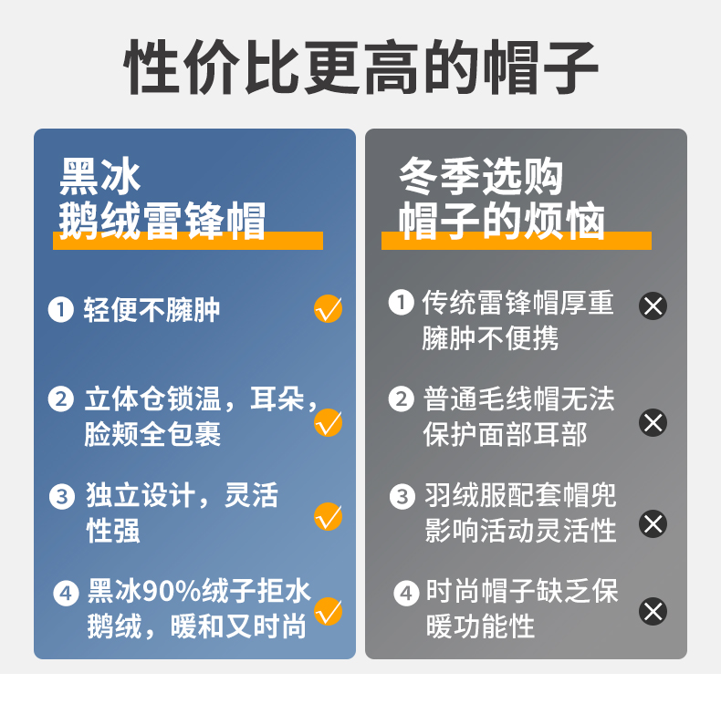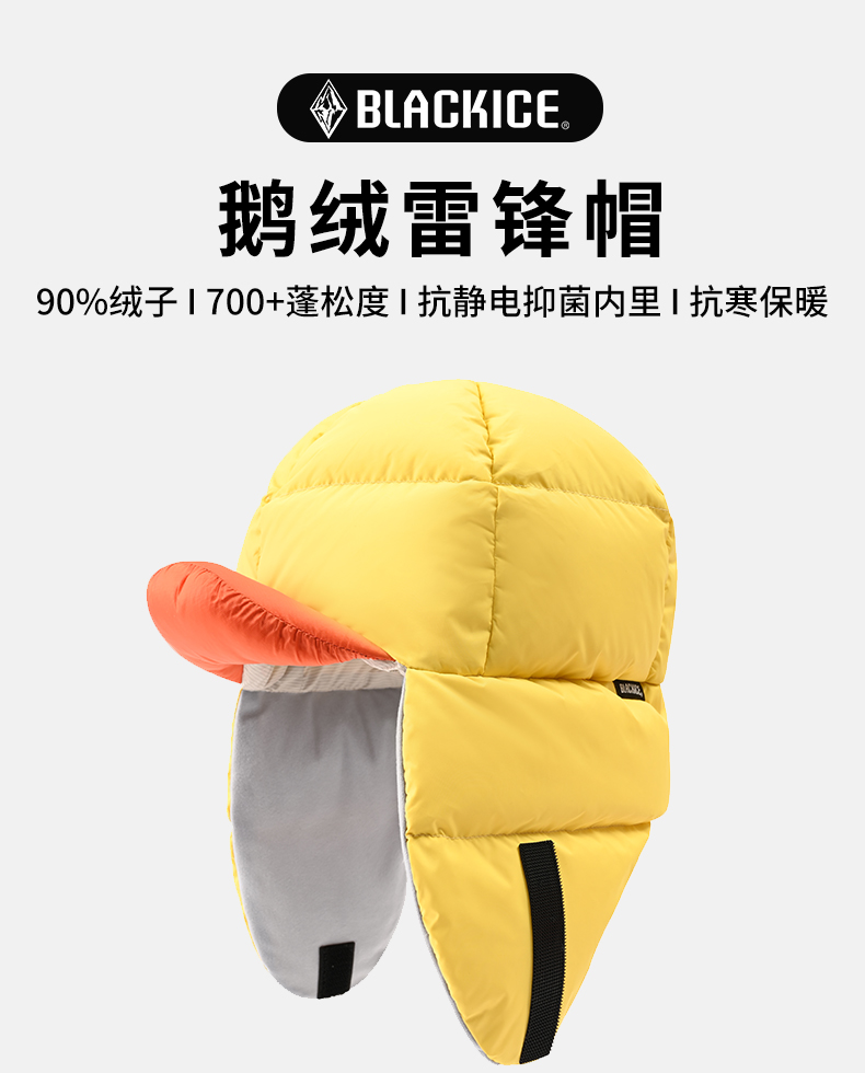 黑冰户外鹅绒雷锋帽男女保暖羽绒帽冬季防静电雷锋帽子Z2154