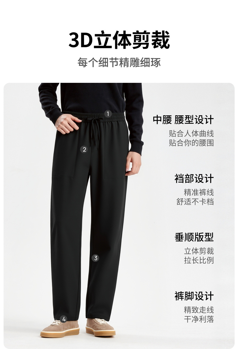 圣得西男士磨毛保暖加厚休闲裤冬季时尚修身直筒长裤男2042913030