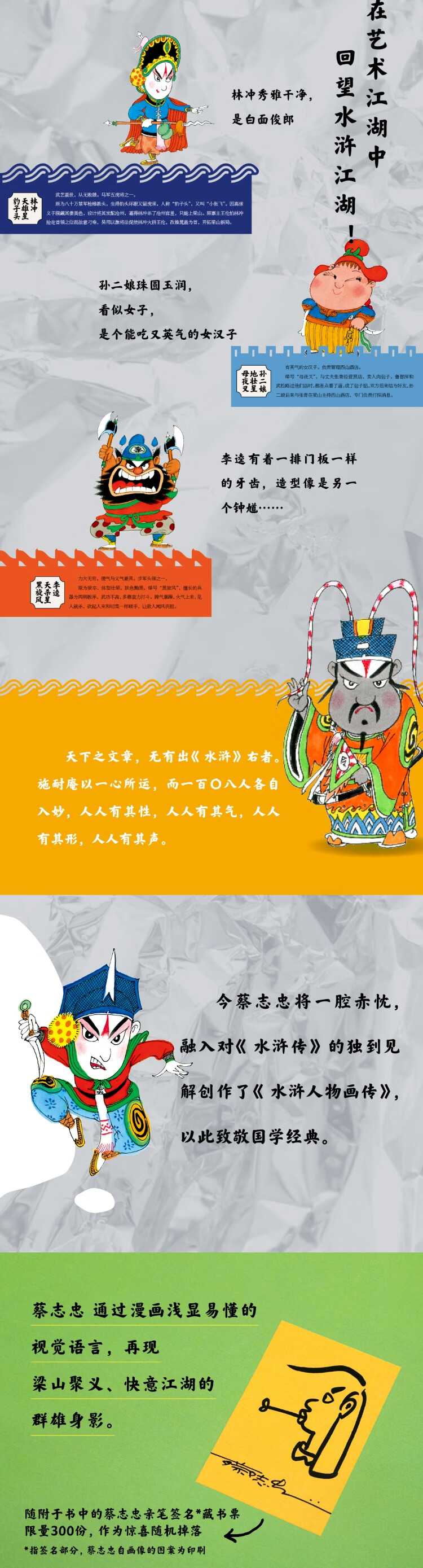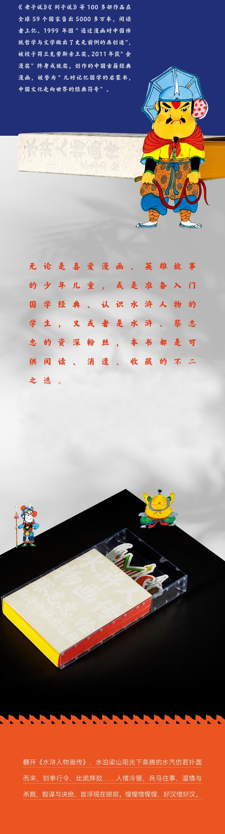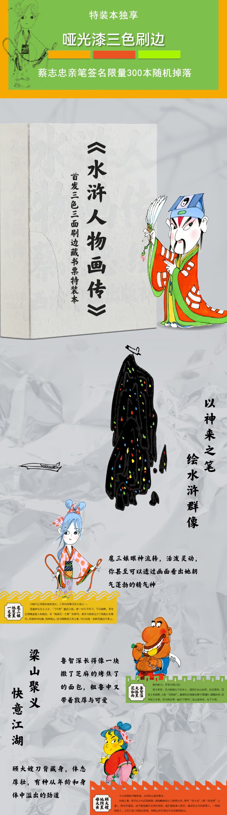 【重磅新书】蔡志忠《水浒人物画传》限量三色三面刷边特装版(赠定制PVC透明函套、藏书票和兵器书签),刷边版售完即止,后续不再加印 | 水浒一百单八将:人物小传+灵动漫画
