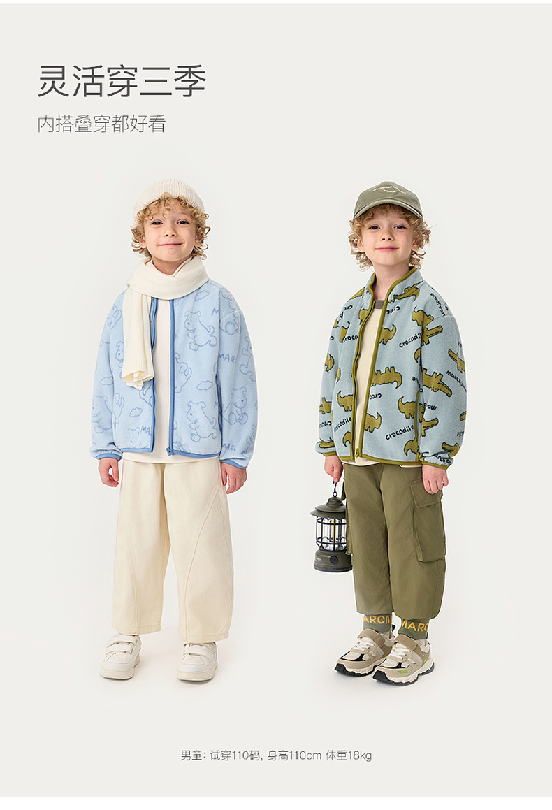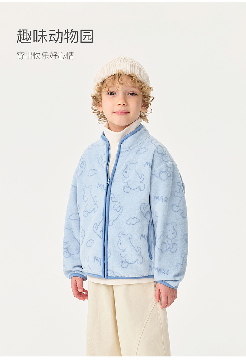 马克珍妮男女童趣味动物园摇粒绒外套2025年秋装新款551826