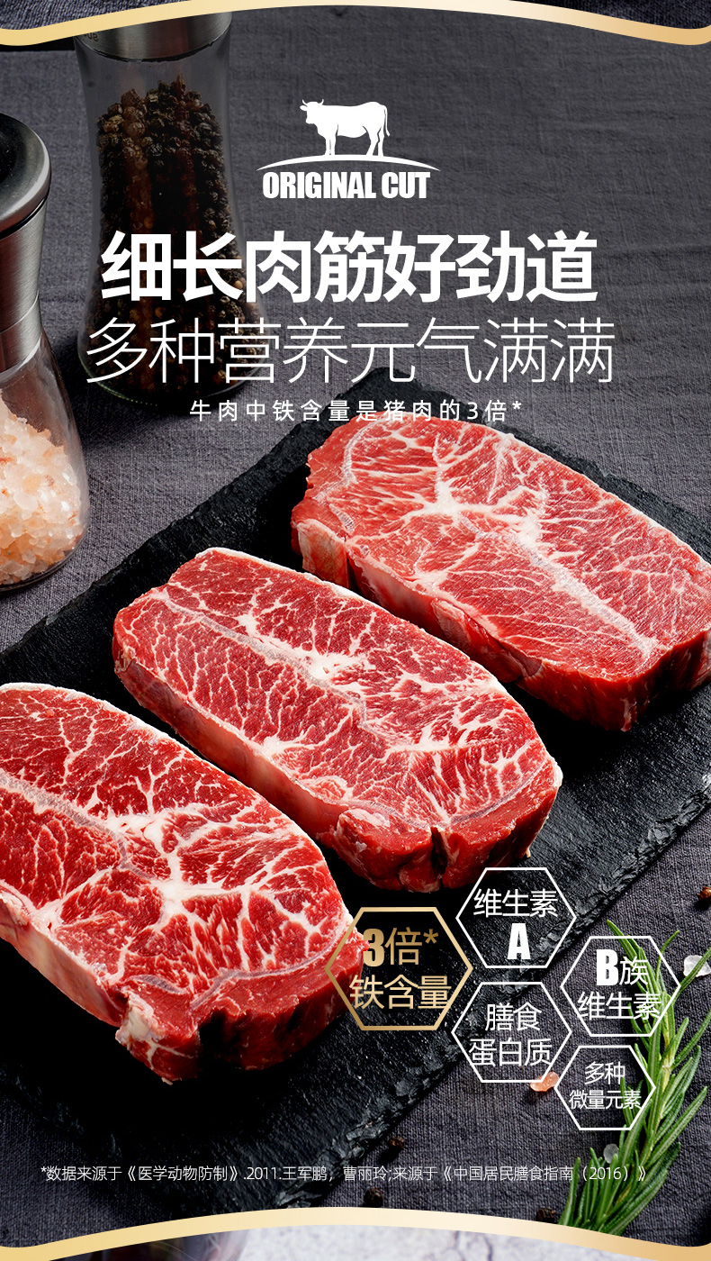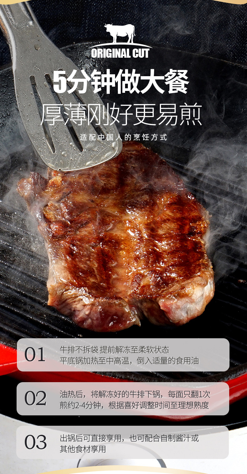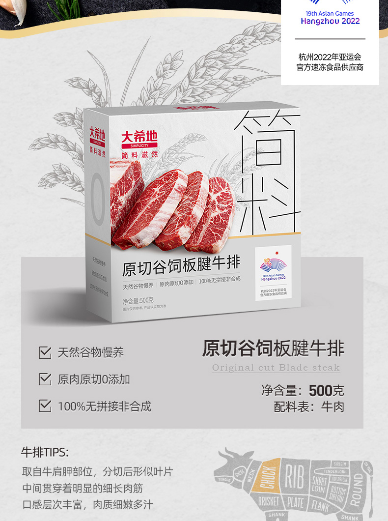 【原切牛排!】大希地简料滋然谷饲原切板腱牛排500g盒装*2(单盒4-6片)+撒料*10+刀叉