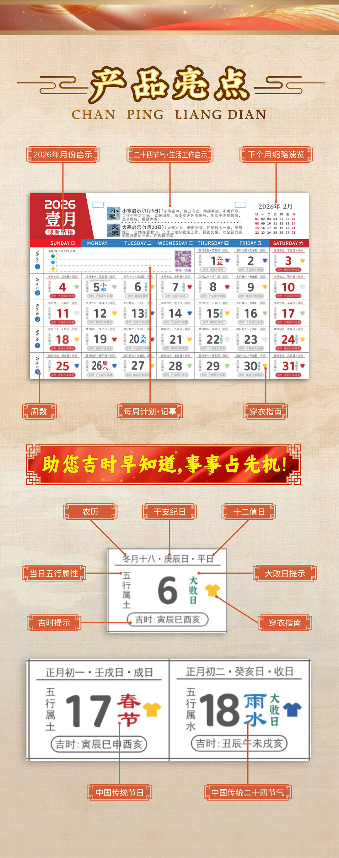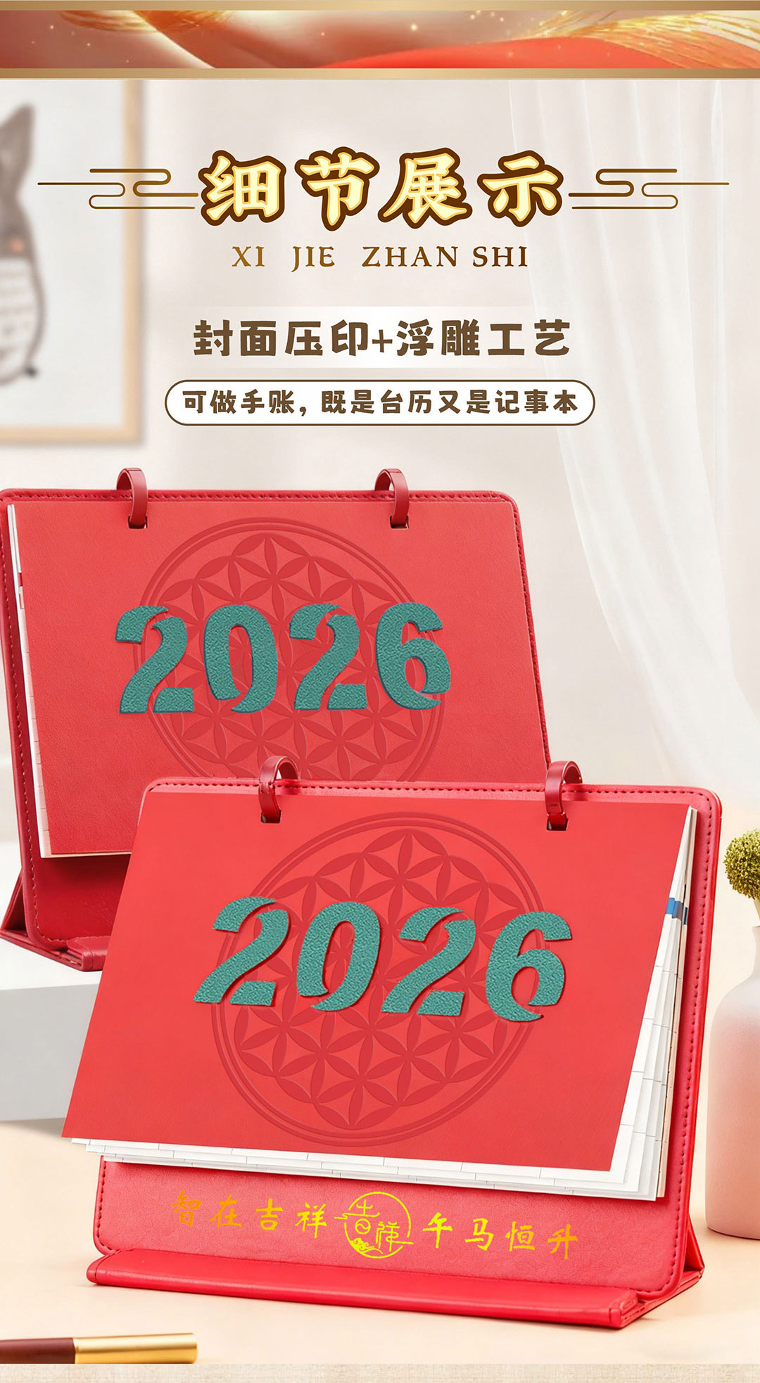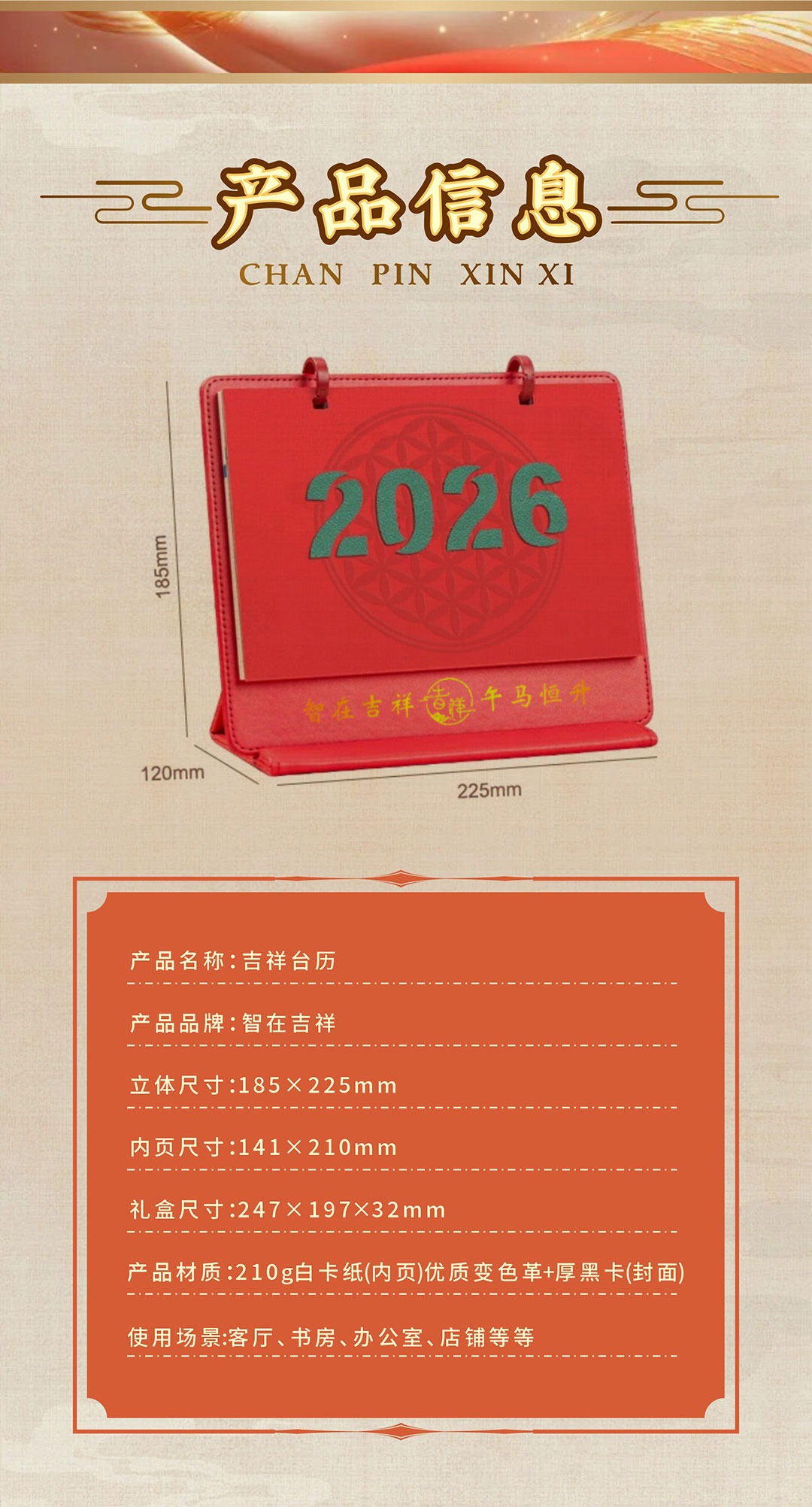 【智在吉祥】2026丙午马年·吉祥台历——五行穿衣指南、大败日、生肖月份启示语等等全涵盖!
