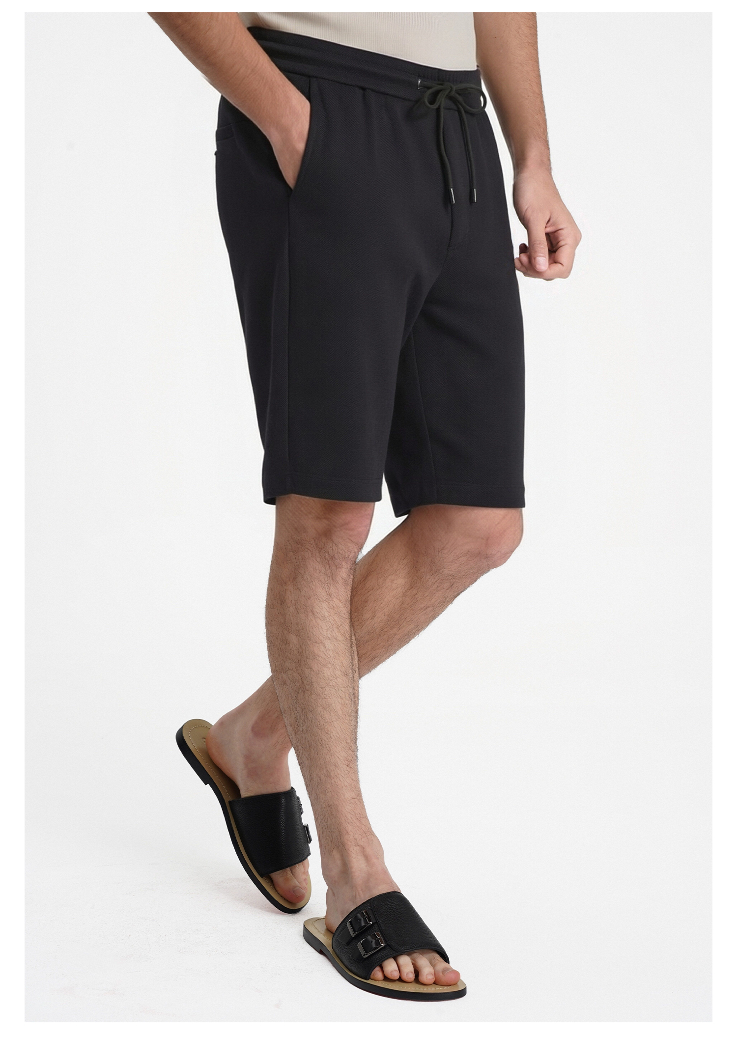 callisto藏青棉弹宽松休闲短裤