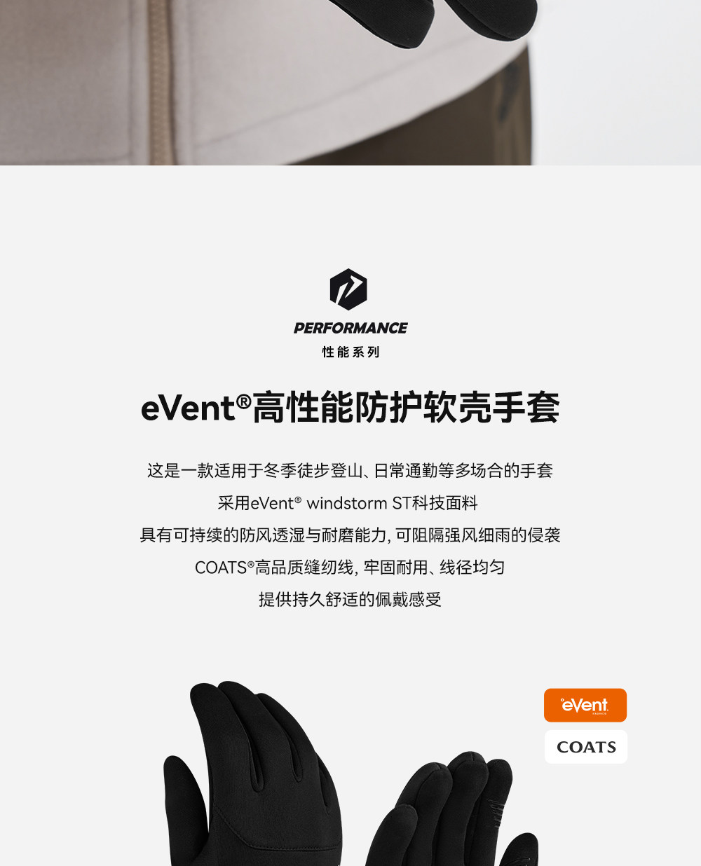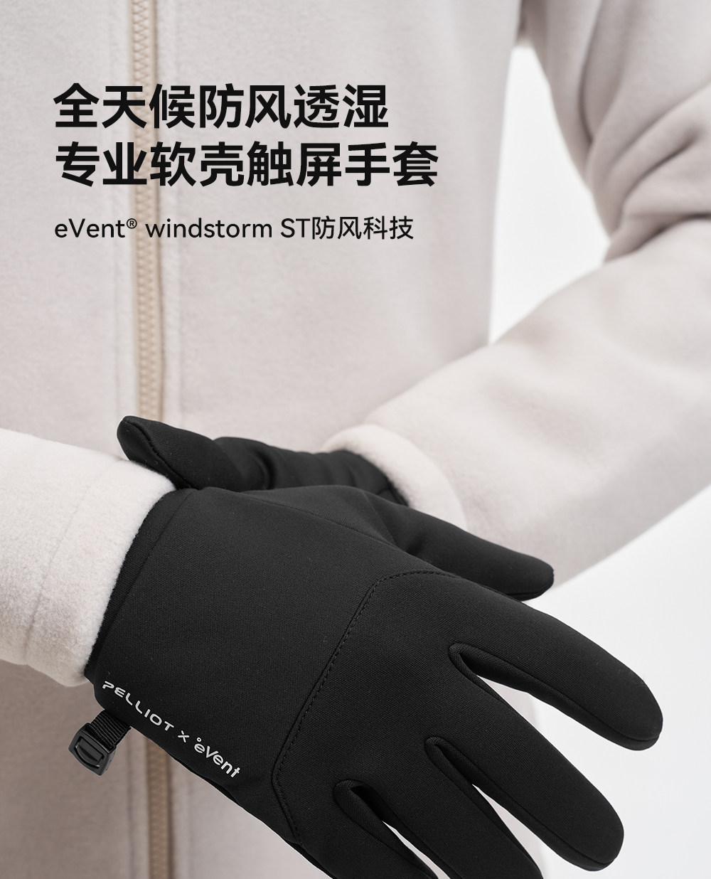 【P系列】伯希和户外软壳手套男eVent防泼水徒步登山骑行保暖女