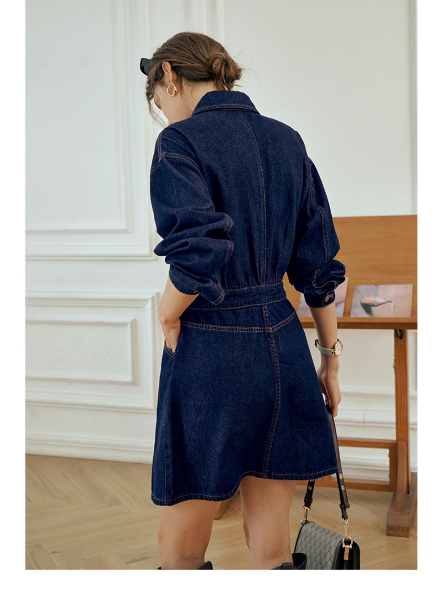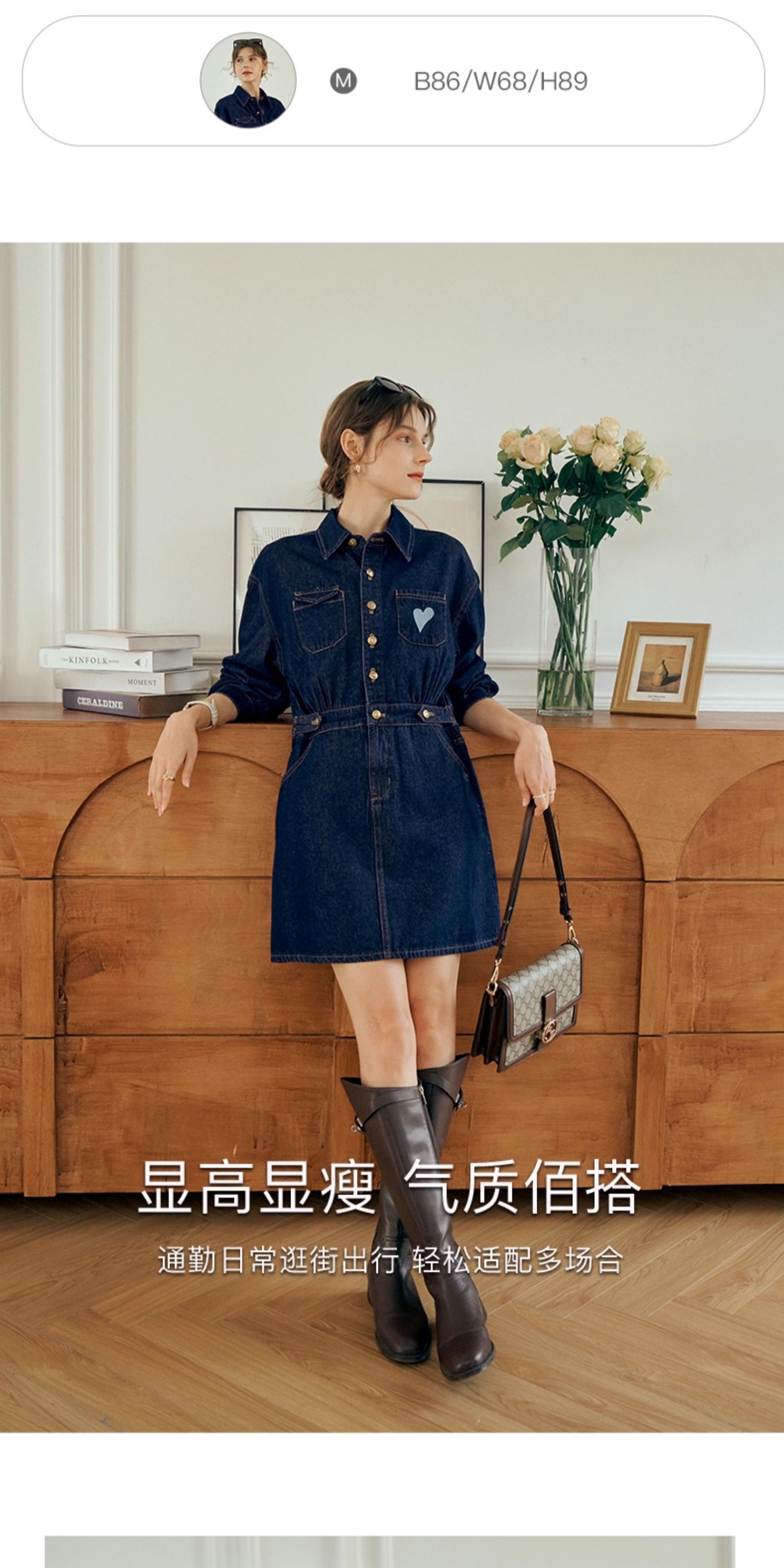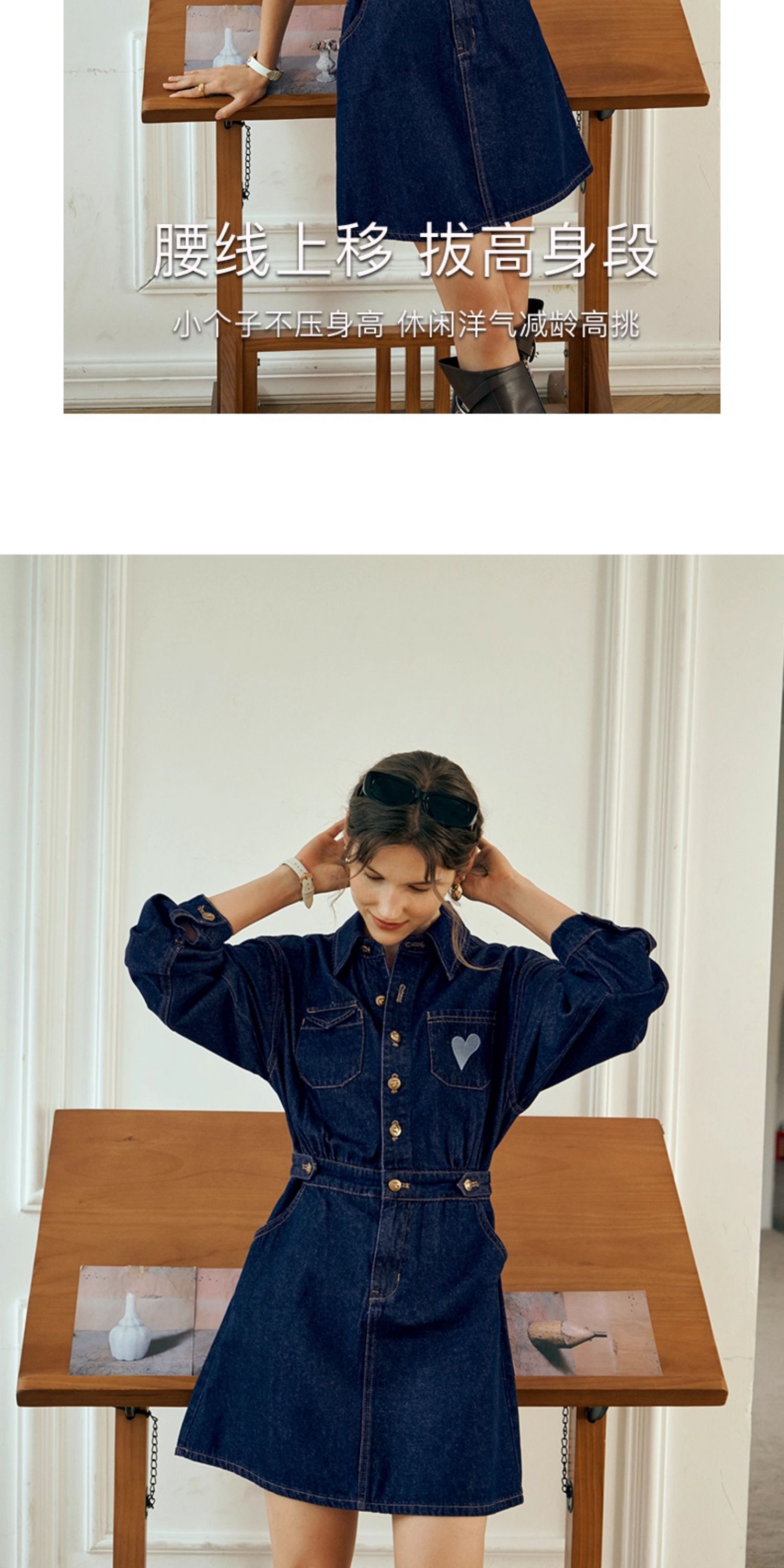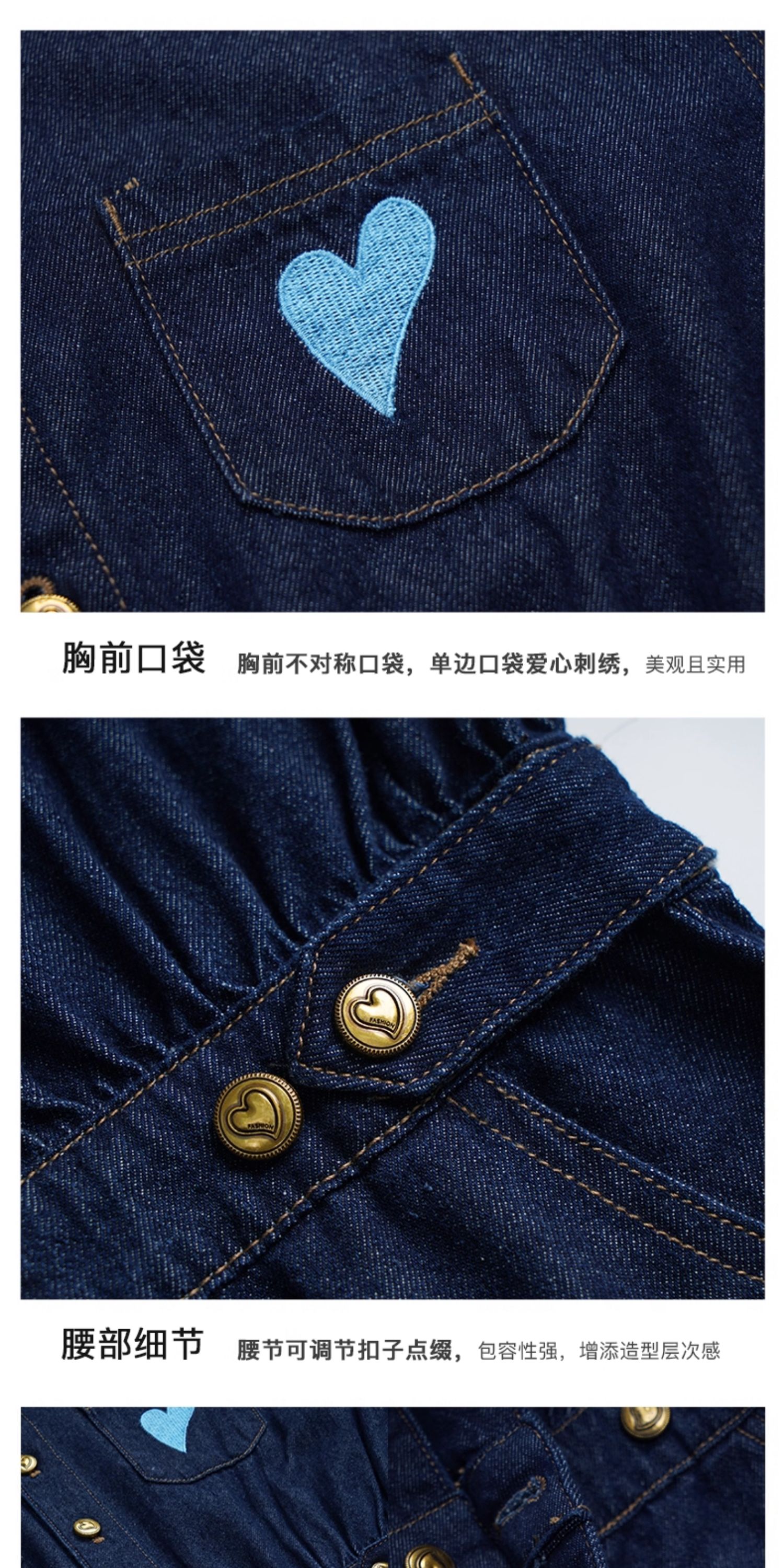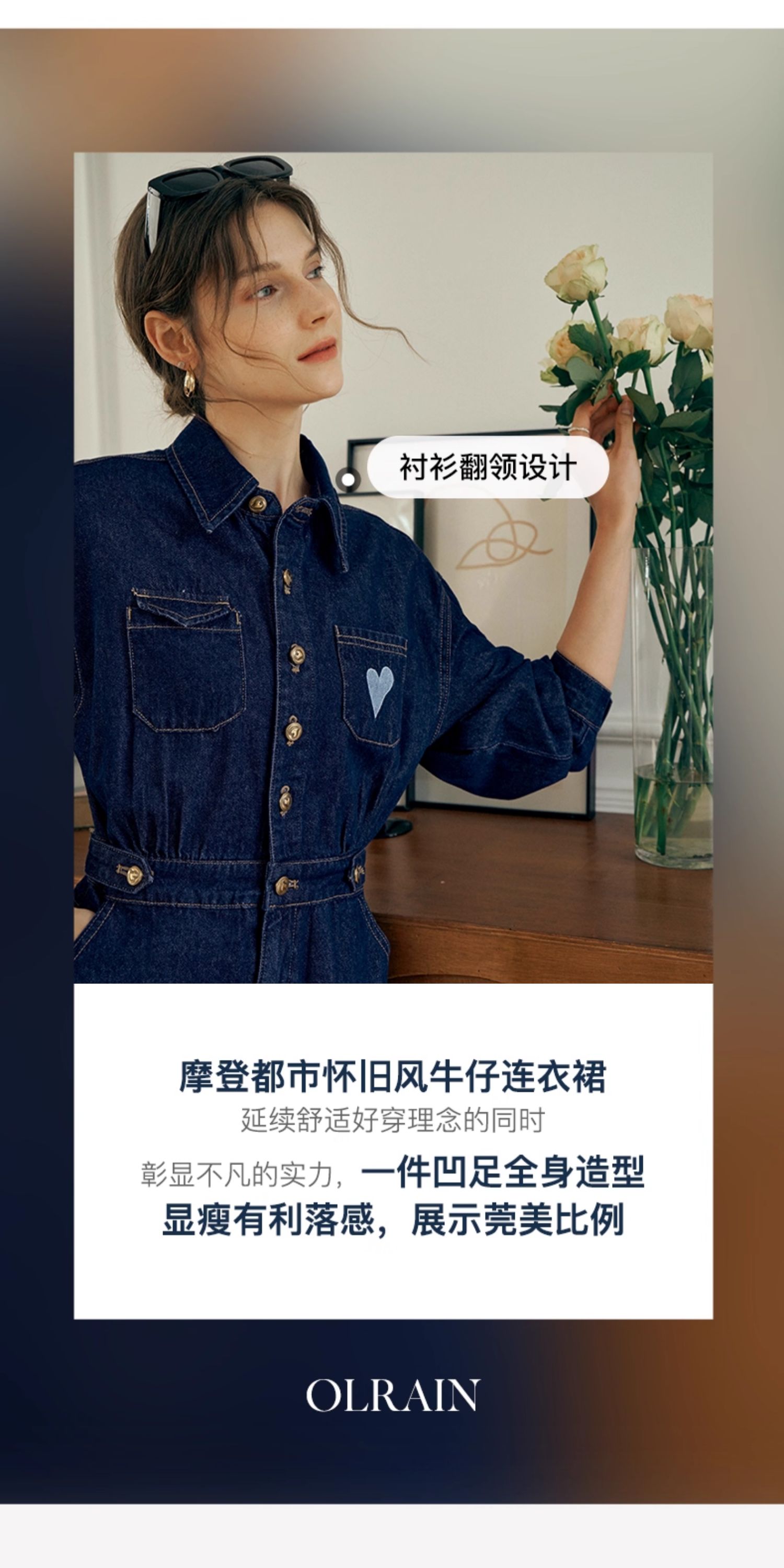 OLrain欧芮儿秋季2025年新款刺绣洗水收腰中长款长袖牛仔连衣裙女