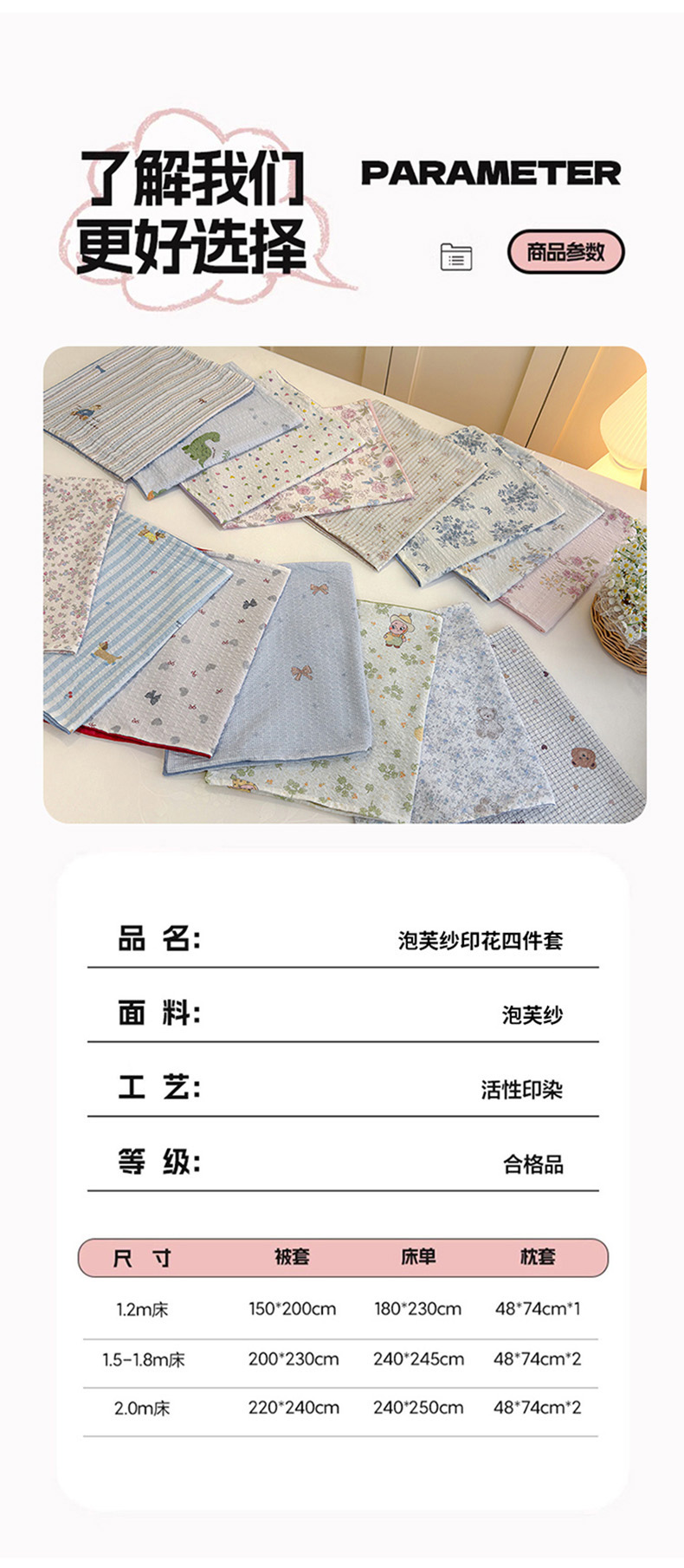 【69元起1套】超高品质谁睡谁爱上的纱四件套来啦!然 自带温柔自然褶皱 不用熨烫就有满满氛围感 面料软糯轻盈,贴身不压身 裸睡、敏感肌、宝妈、学生党都能放心睡