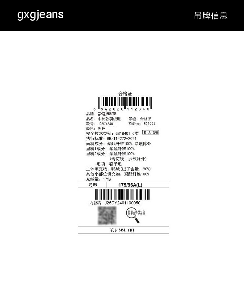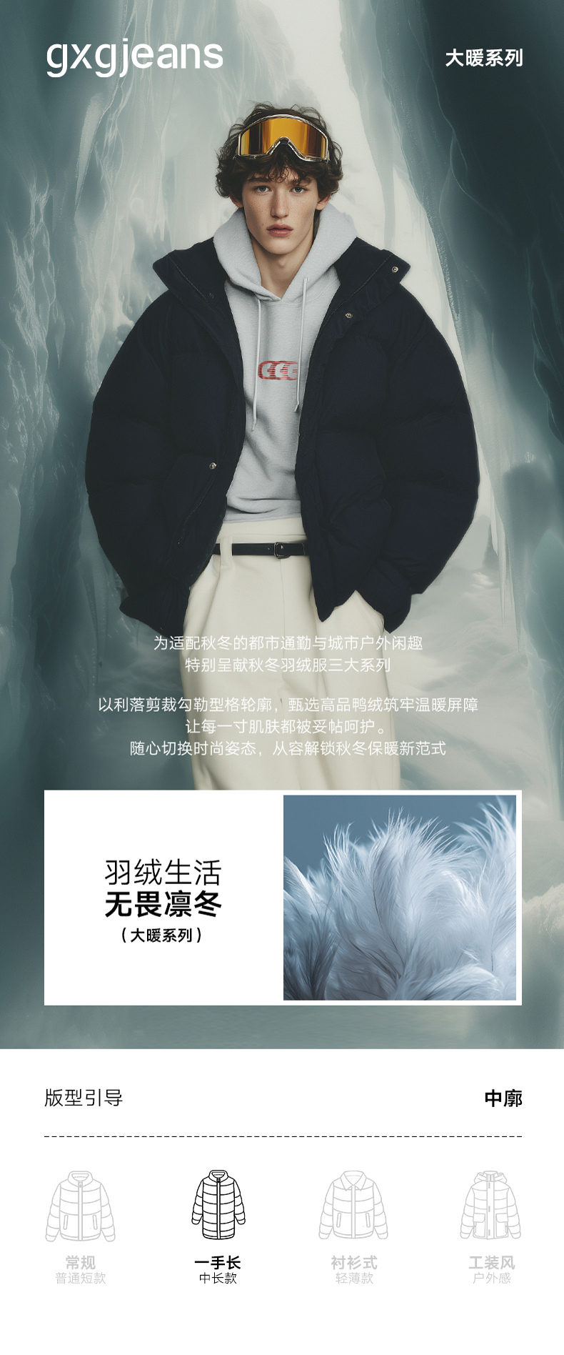 【三防】gxg.jeans男装 多色中长款工装户外貉子毛毛领派克服外套25冬新品