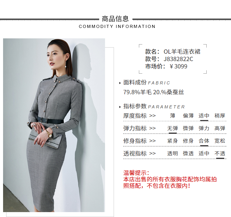 我们的产品:全网最具“质价比”的精英女装,只为有场合的“三高”女性打造,高知,高姿,高资。
