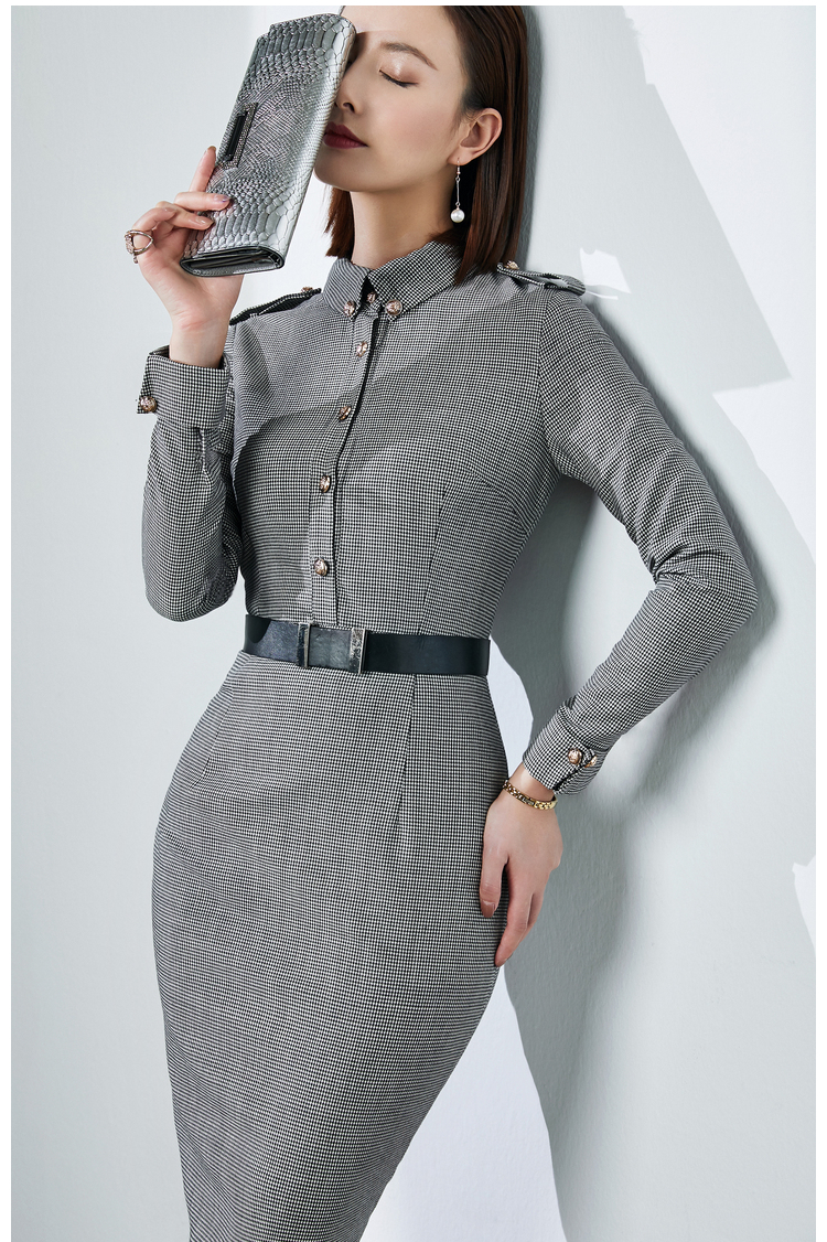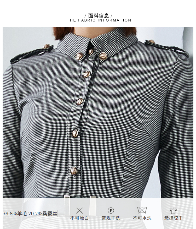 孤品-千鸟格羊毛连衣裙 J8382822A()不退可换