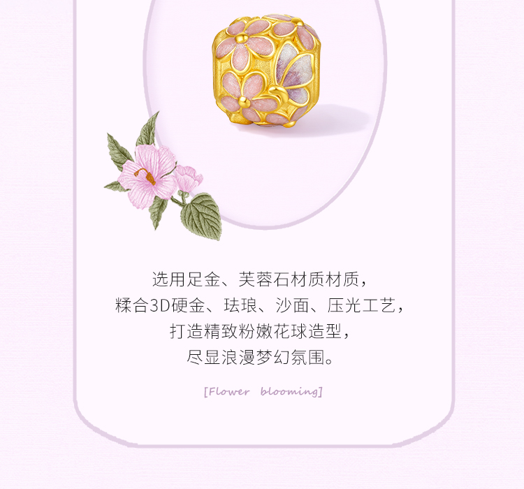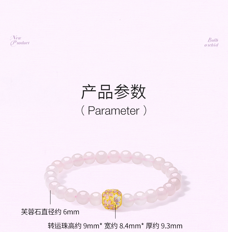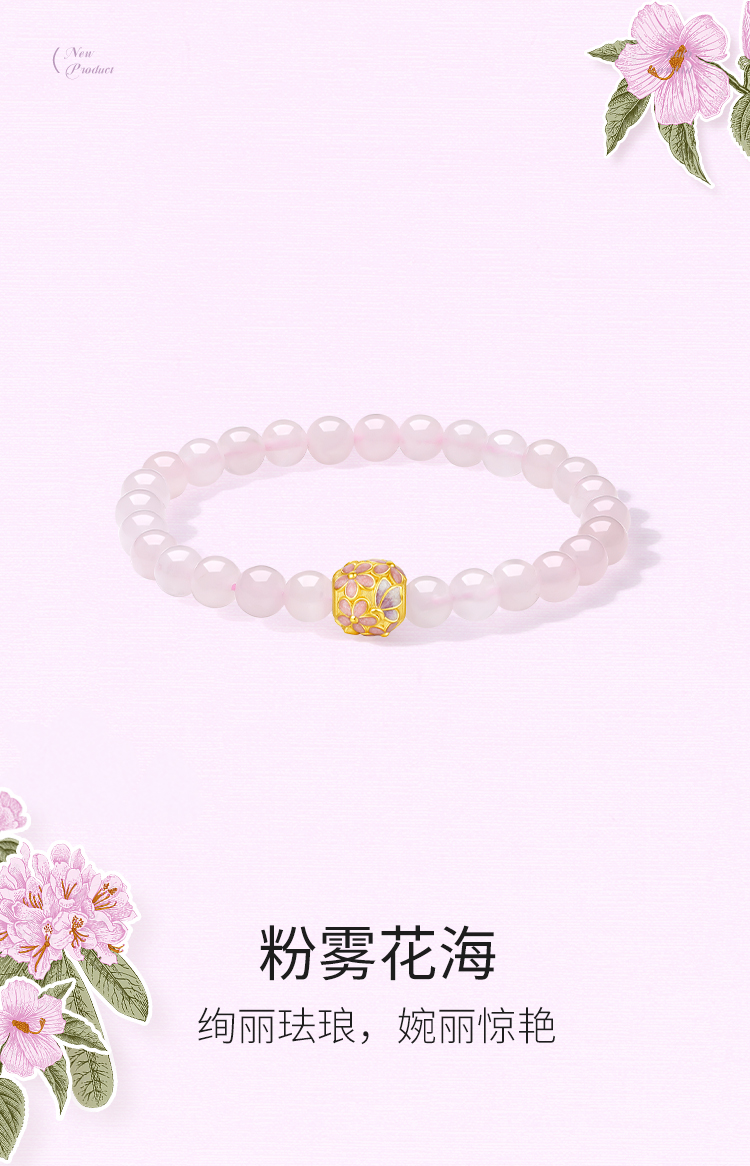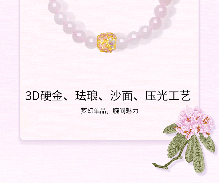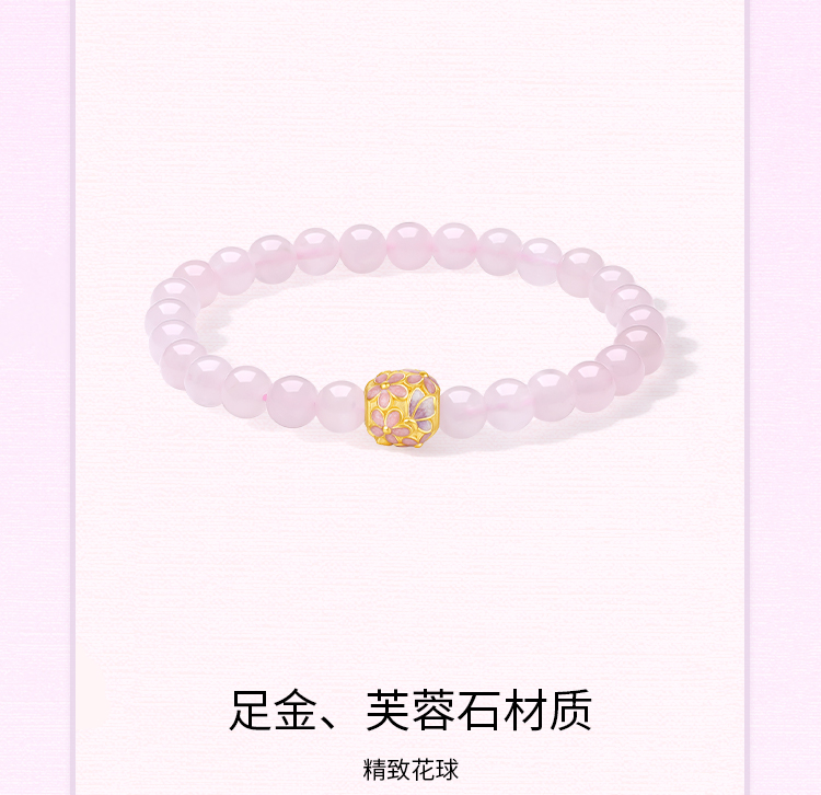 周六福黄金手串女款3d硬金定价粉雾花海花语转运珠芙蓉石绣球手链