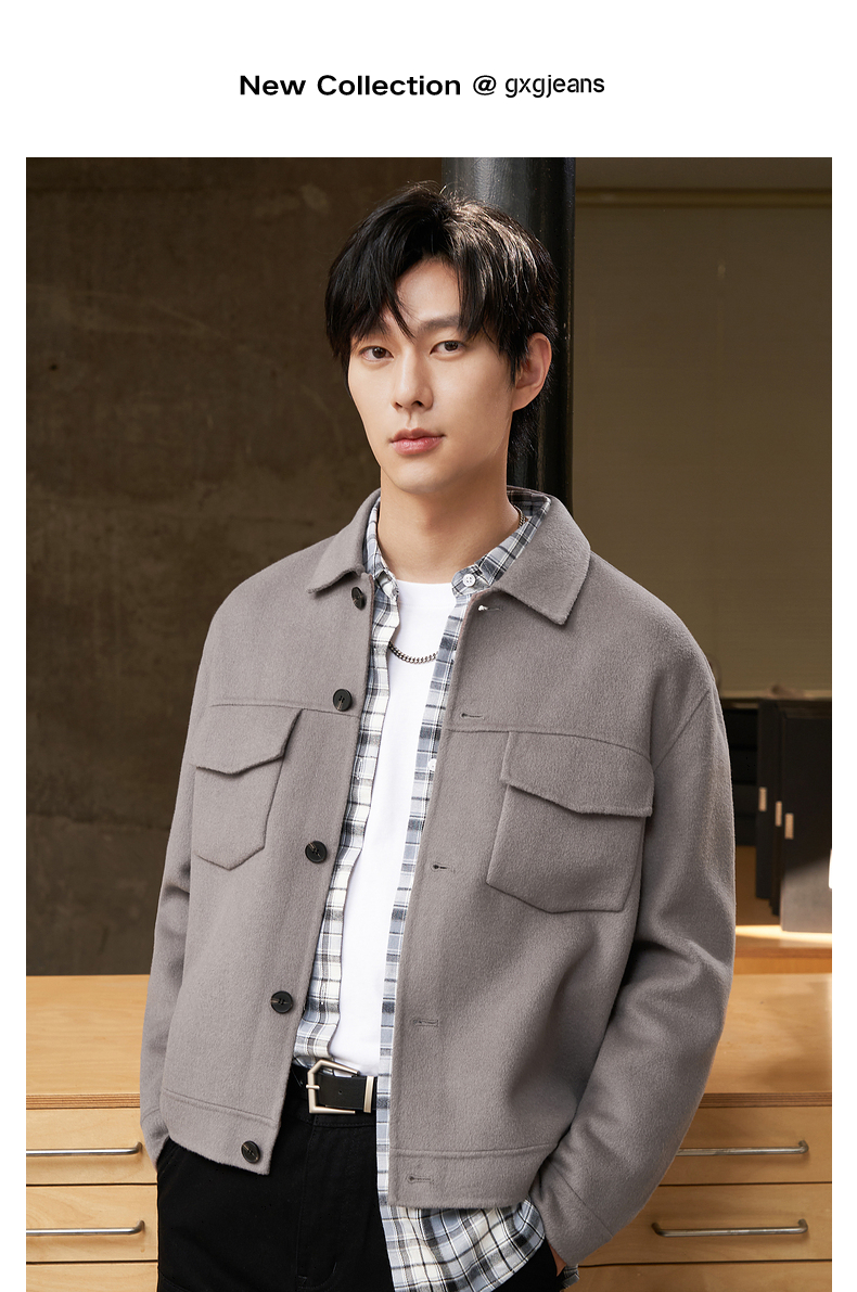 gxg.jeans男装冬季灰色翻领夹克休闲夹克JEX12100544
