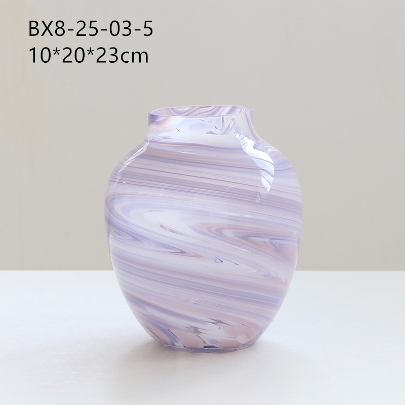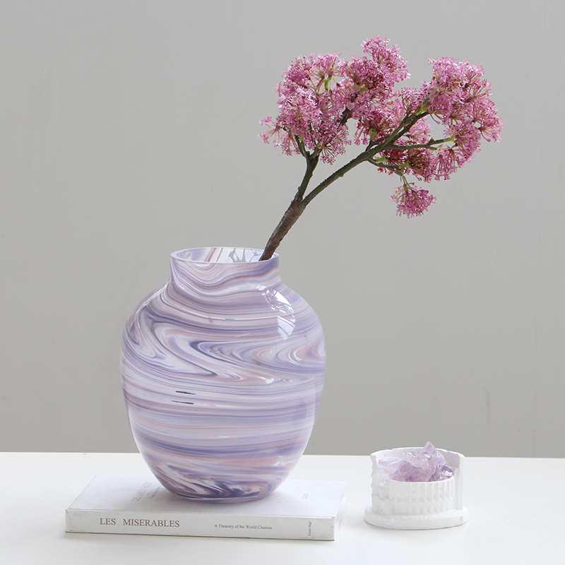 现代简约渐变纹艺术玻璃浪漫紫小口花瓶软装花器样板间水培花器摆
