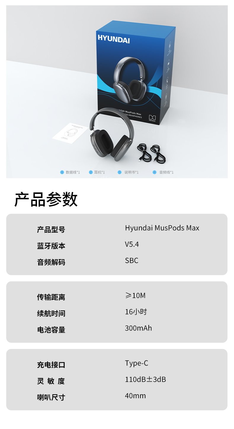 HYUNDA头戴式蓝牙耳机MusPods Max