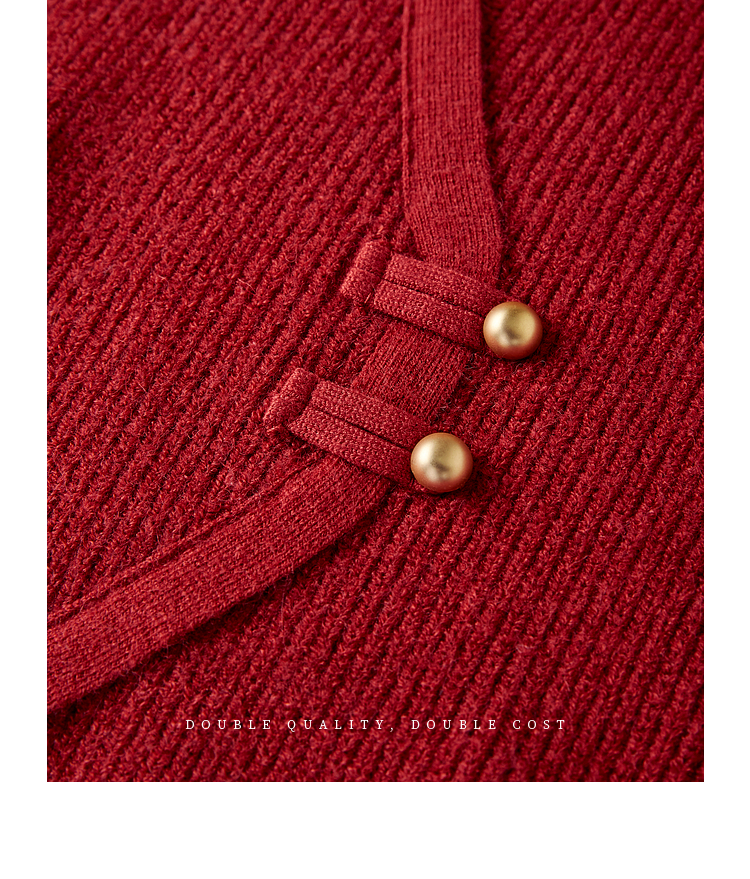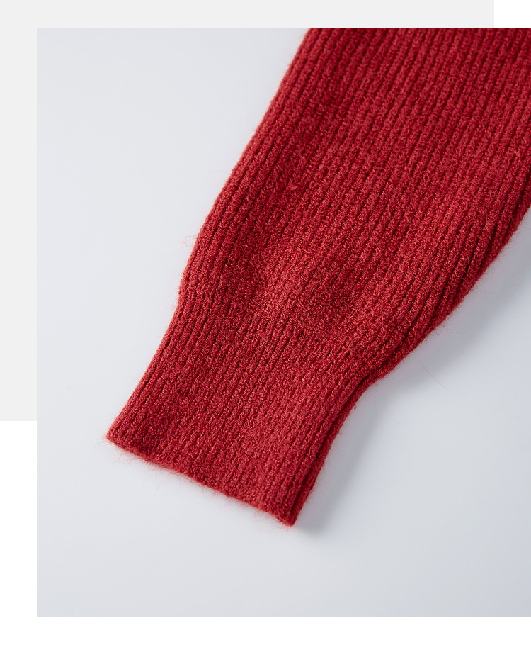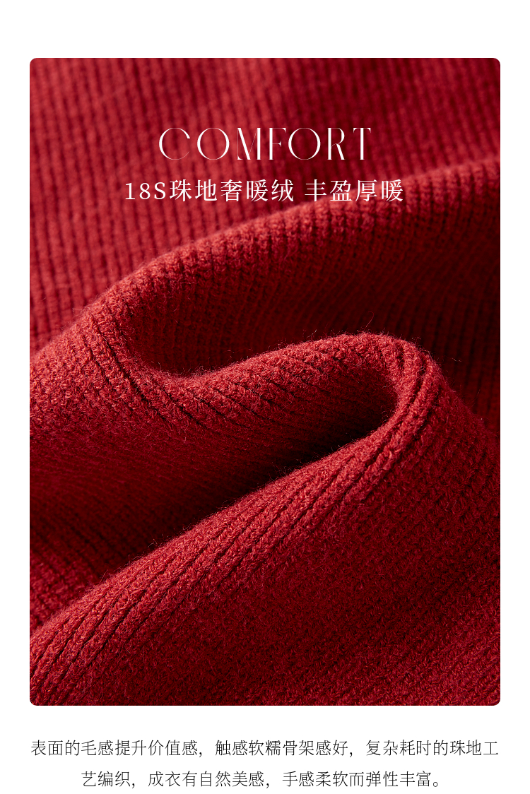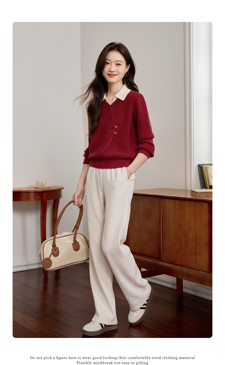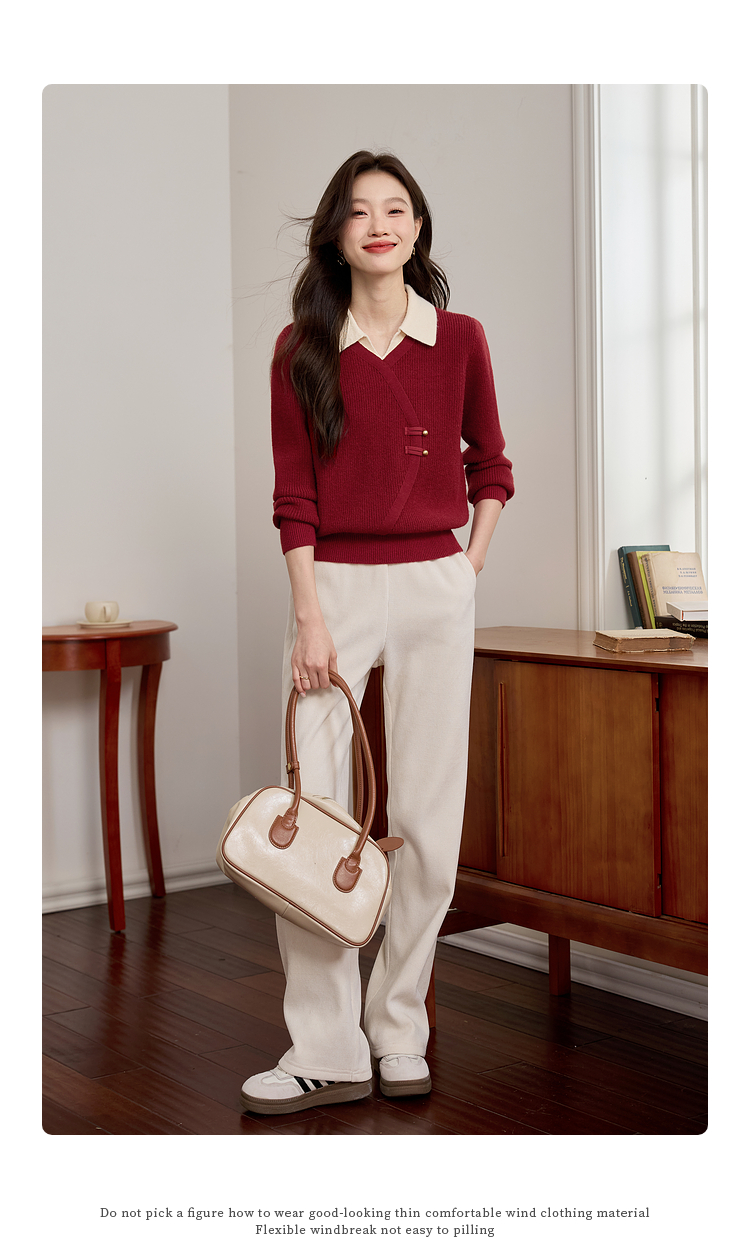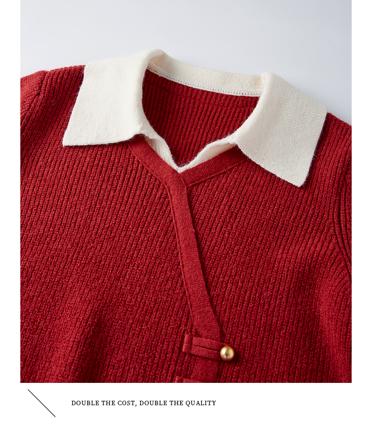 【年终特卖】熙世界新中式国风假两件针织毛衣女秋冬气质复古红色翻领打底上衣