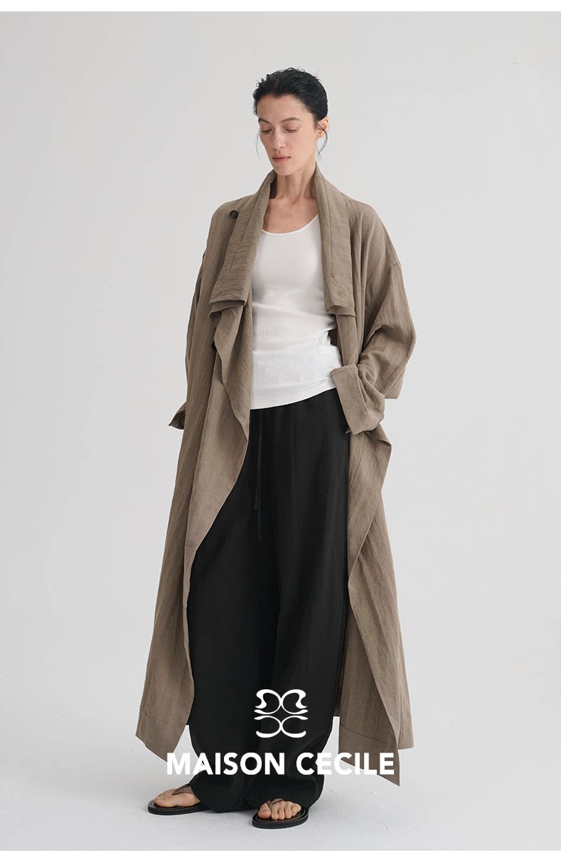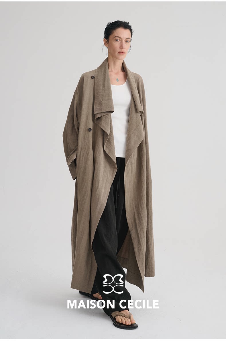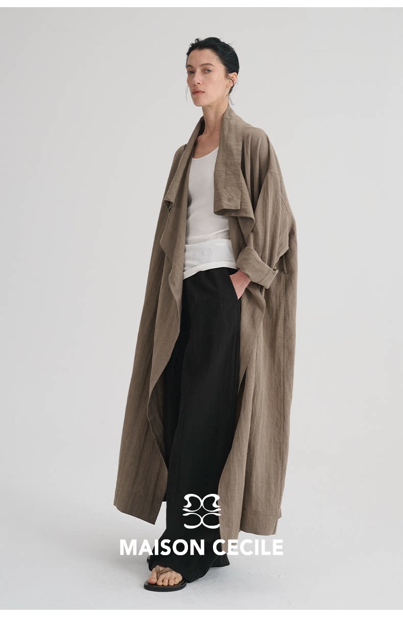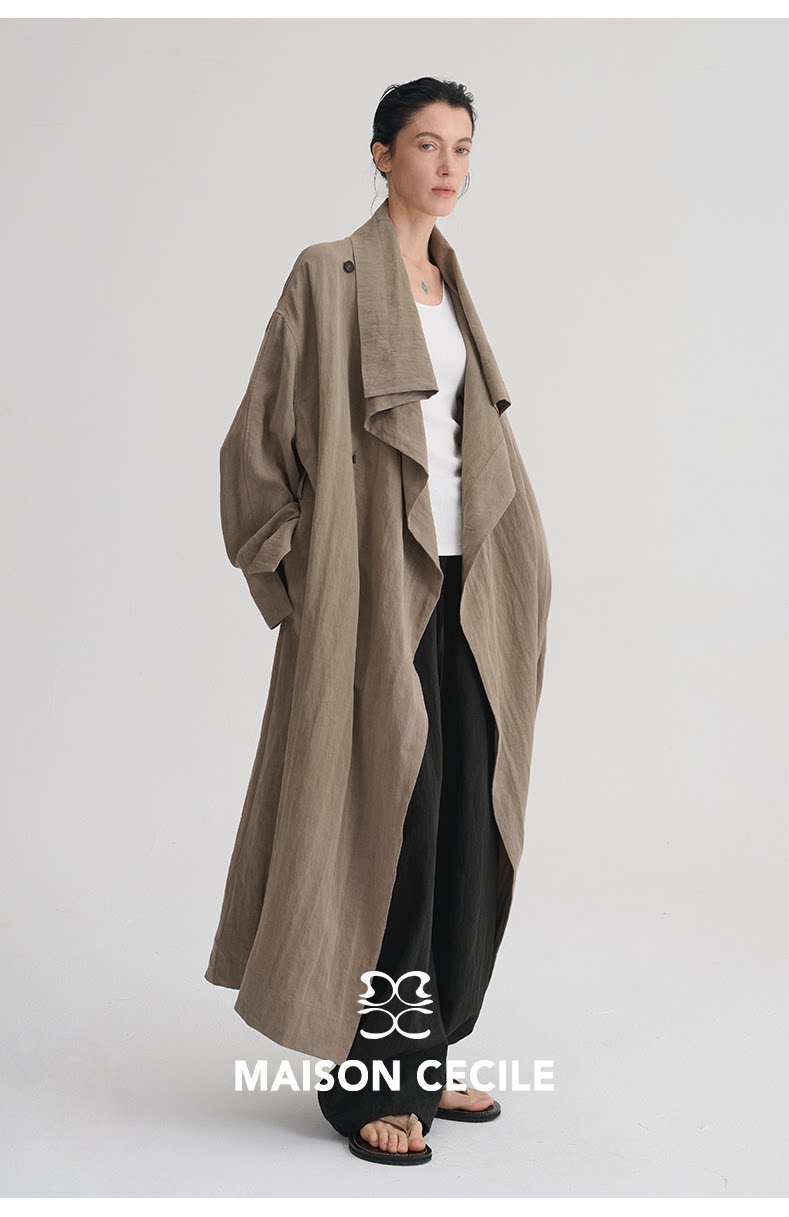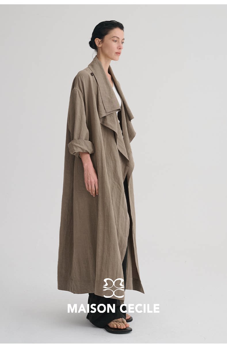 MAISON CECILE 莱赛尔肌理感优雅随性不规则荡领廓形长款风衣