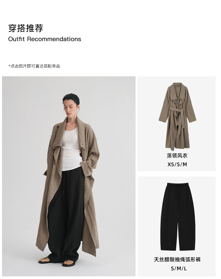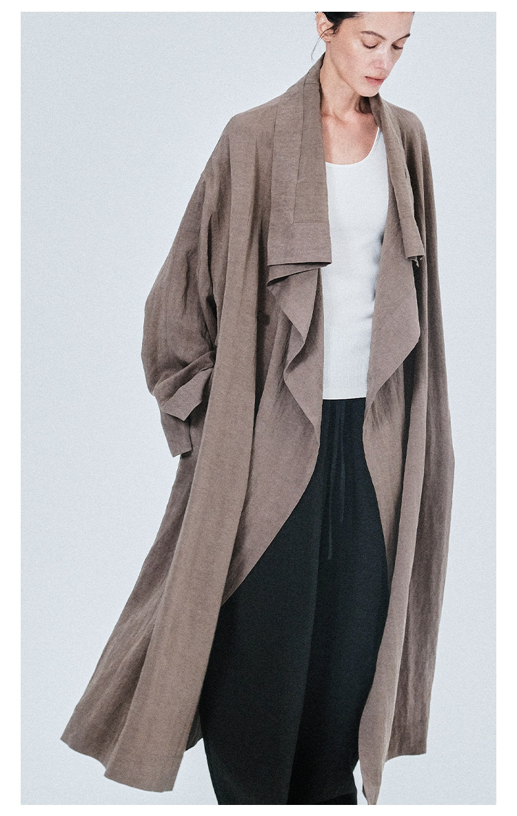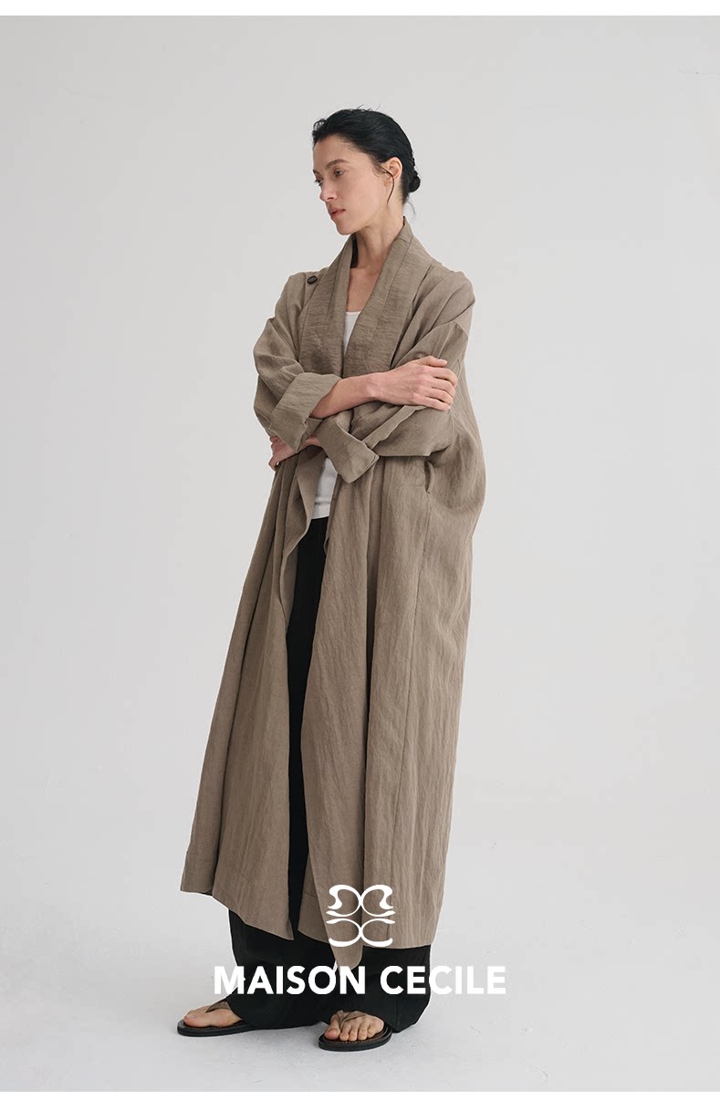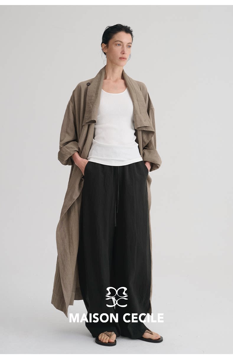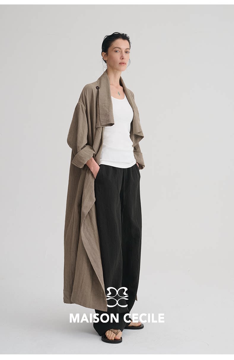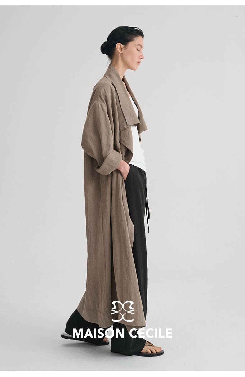 MAISON CECILE 莱赛尔肌理感优雅随性不规则荡领廓形长款风衣