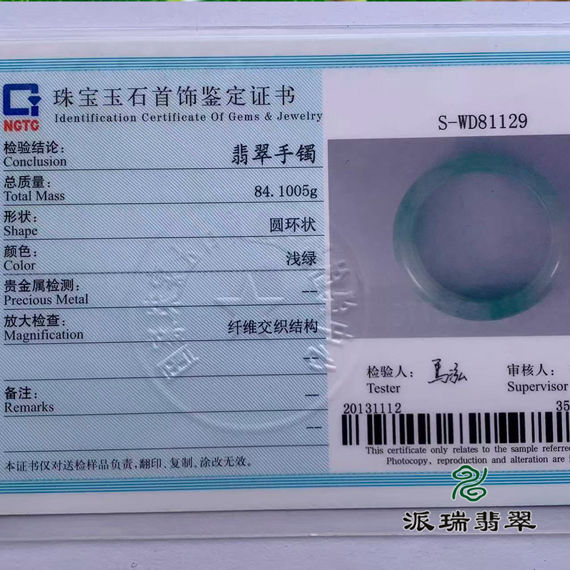 派瑞翡翠 翡翠手镯 糯种 浅绿