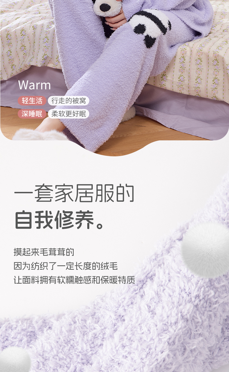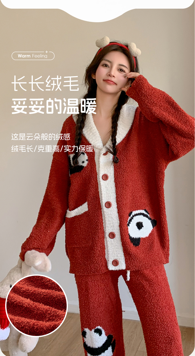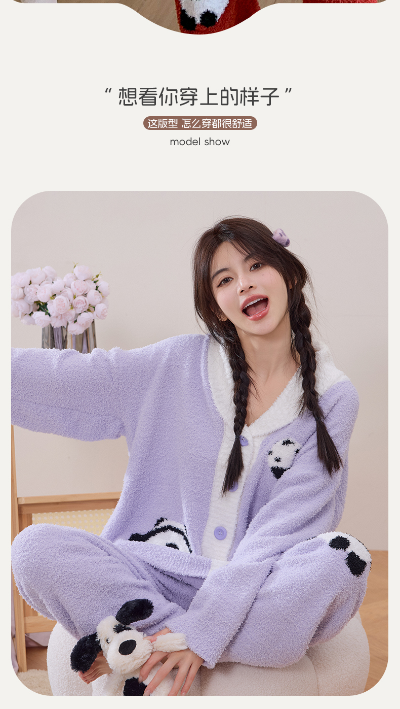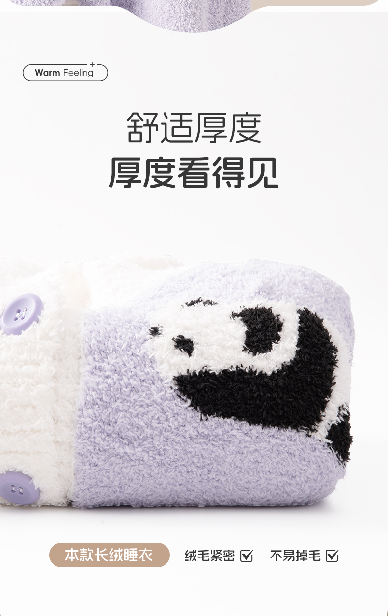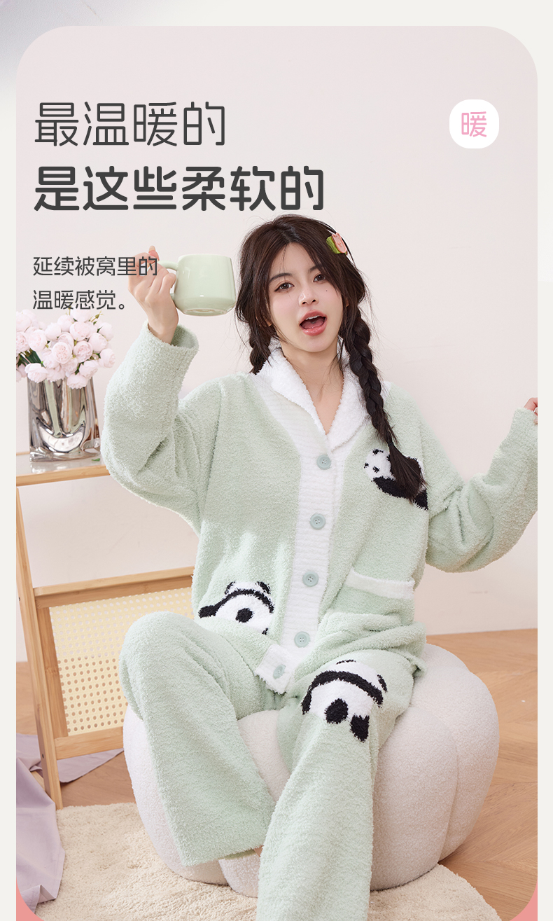 洁丽雅新款半边绒睡衣女冬季珊瑚绒加绒蓄热秋冬可外穿家居服套装