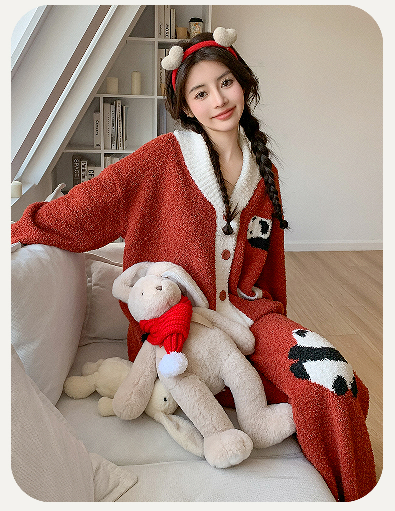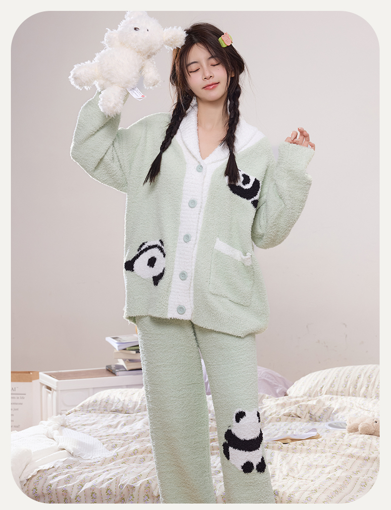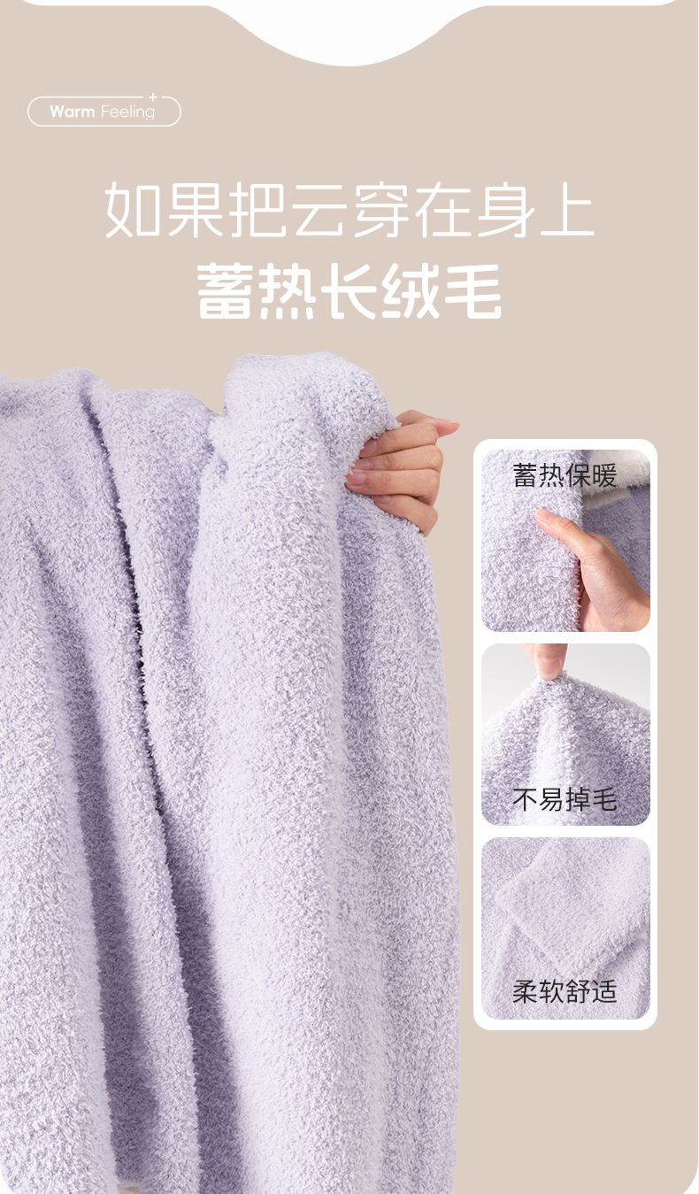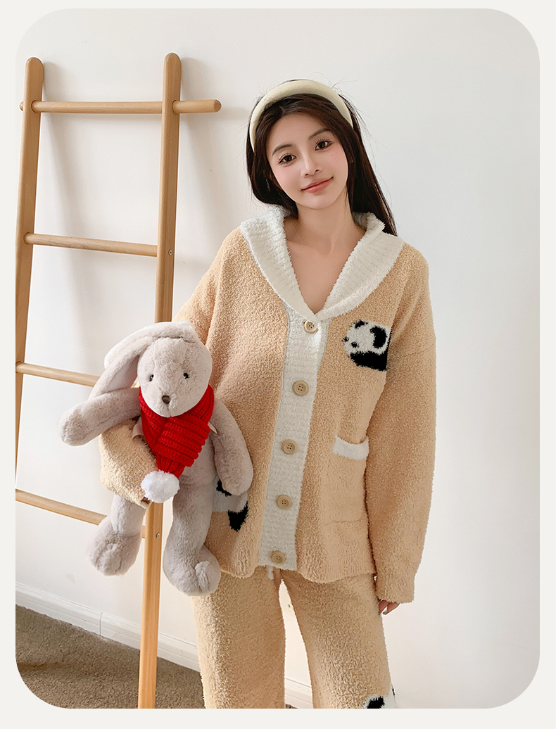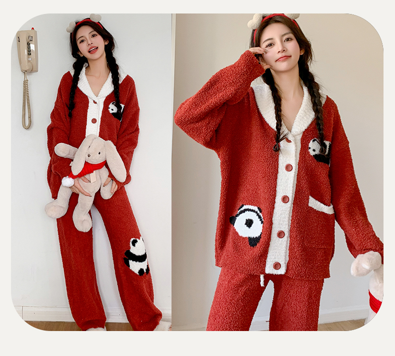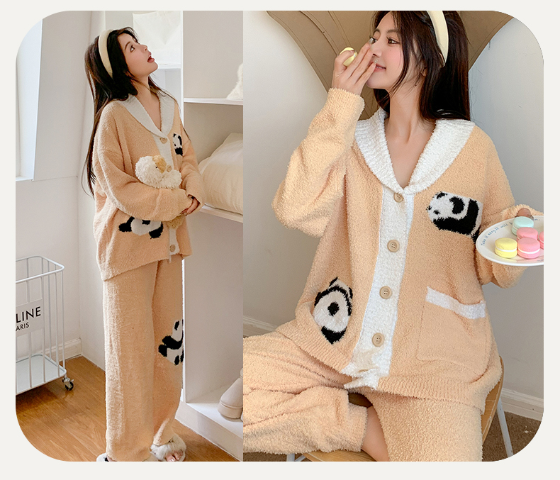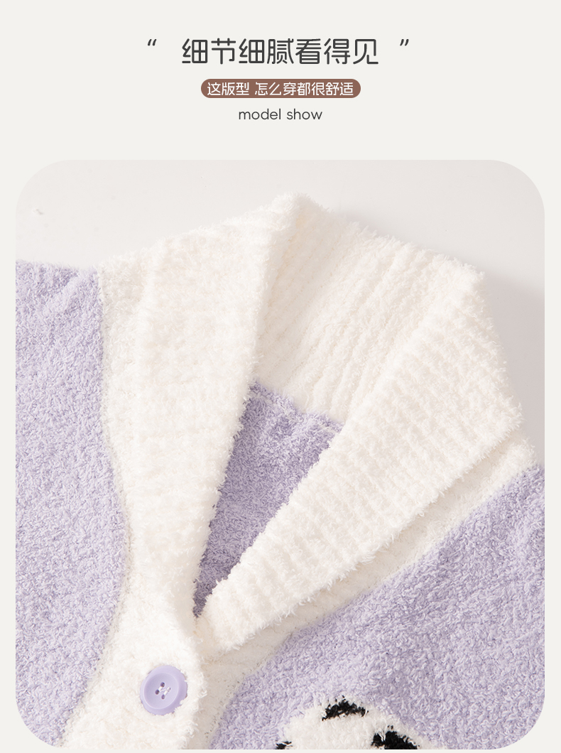 洁丽雅新款半边绒睡衣女冬季珊瑚绒加绒蓄热秋冬可外穿家居服套装