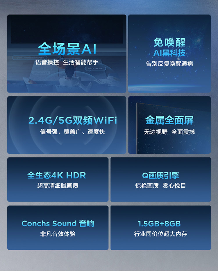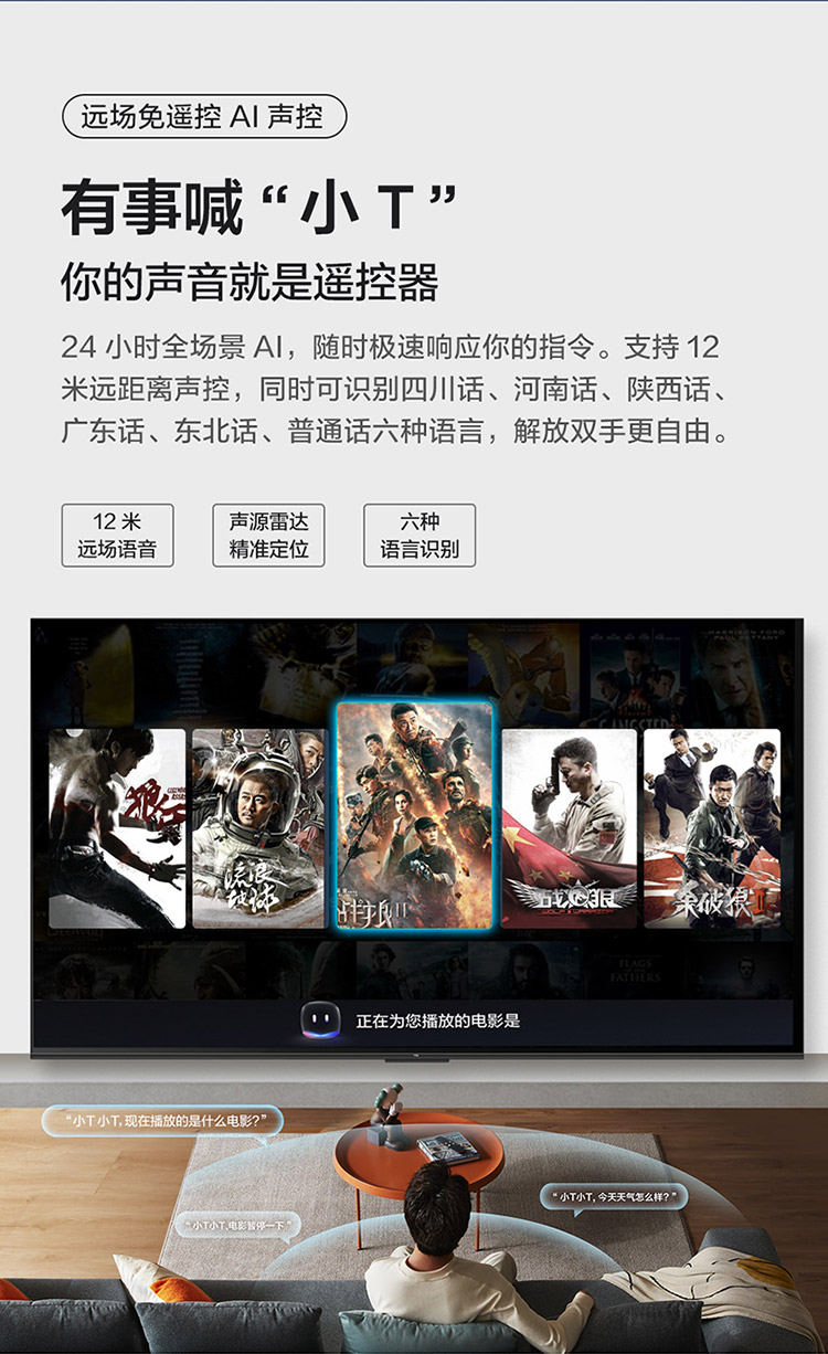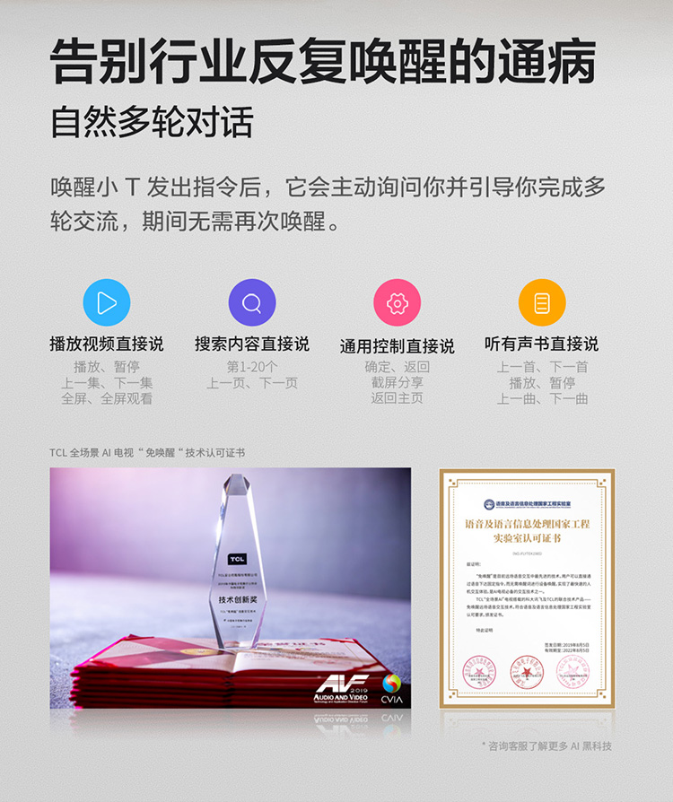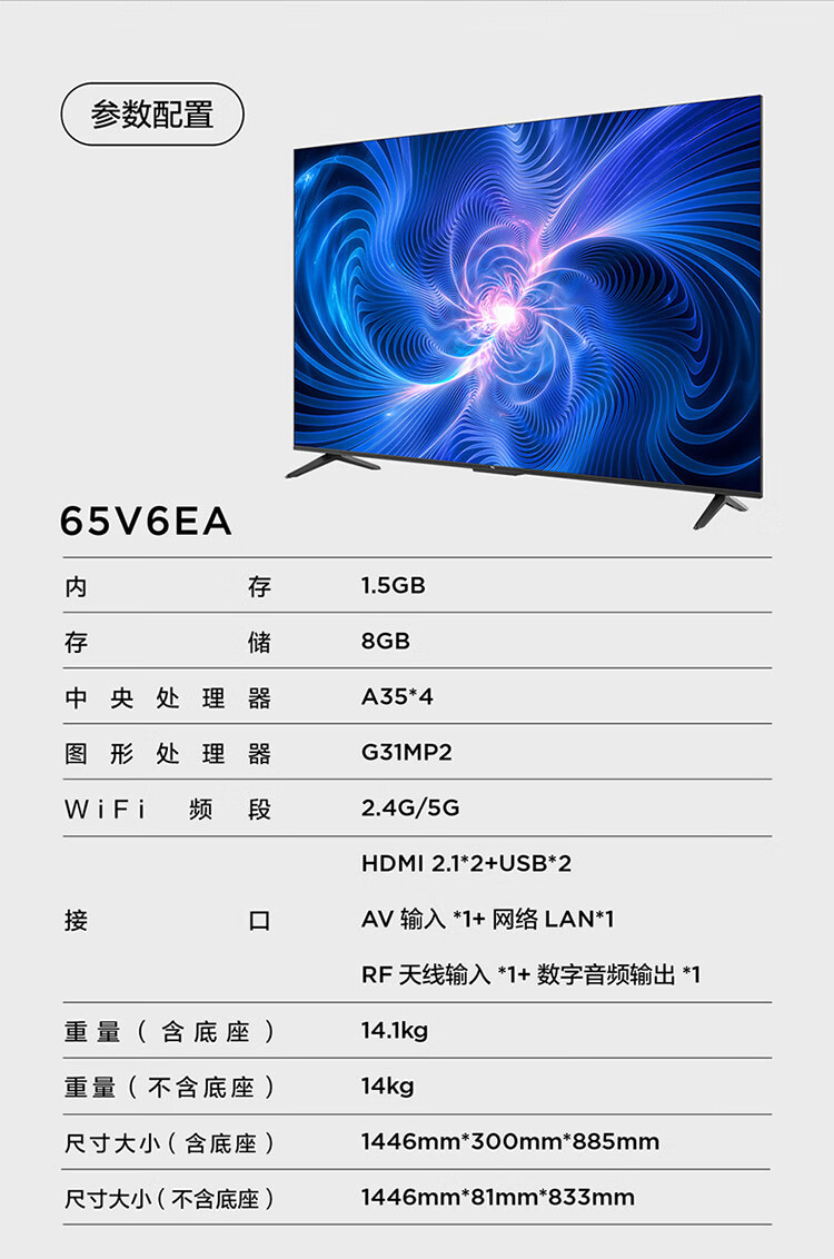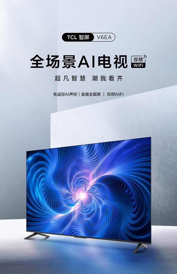 TCL电视 65V6EA 65英寸 4K超清超薄金属全面屏 免遥控电视 AI声控智慧屏 双频WiFi