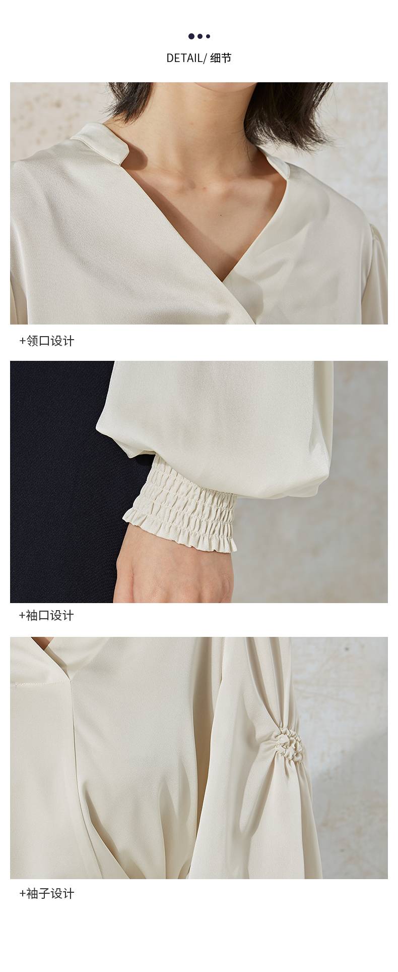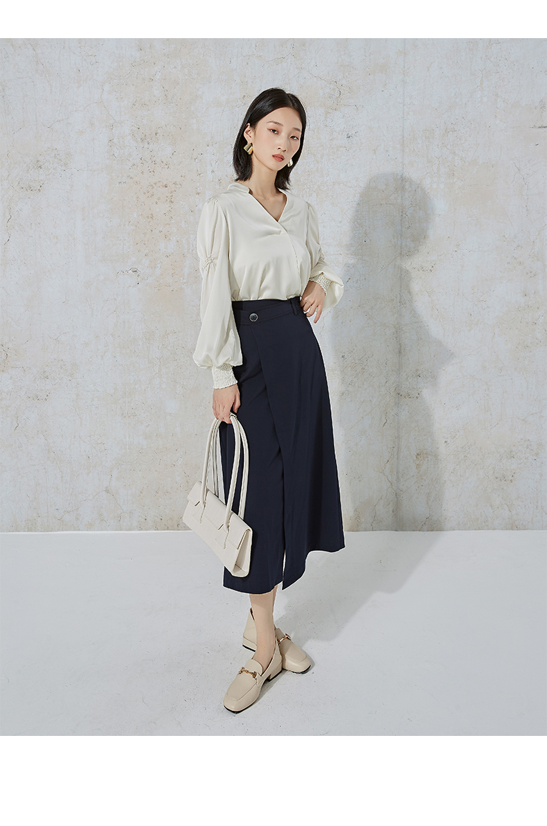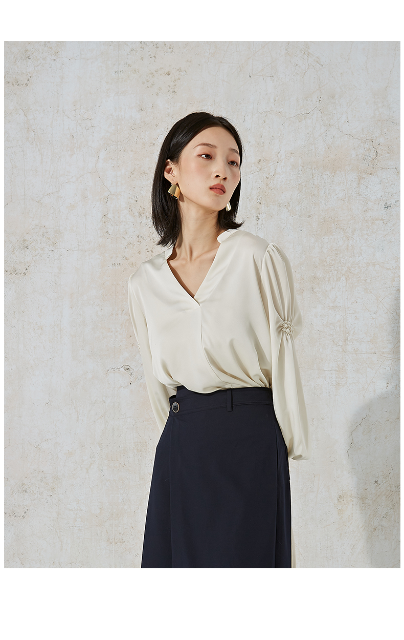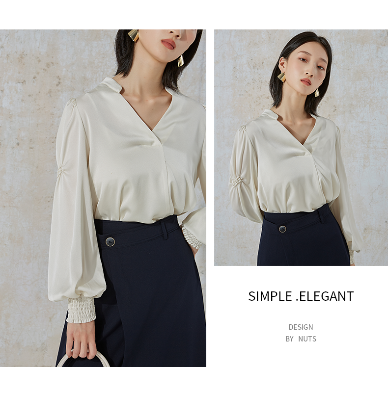 NUTS商场同款春秋季白色高级感设计感V领长袖衬衫女231013021B
