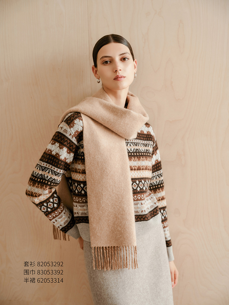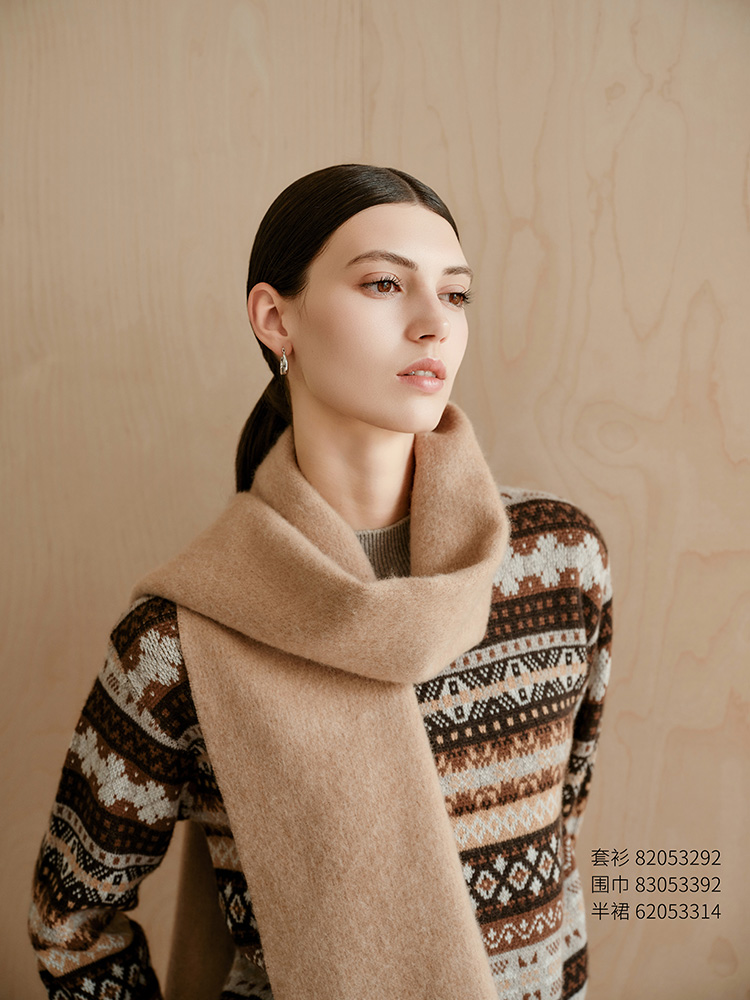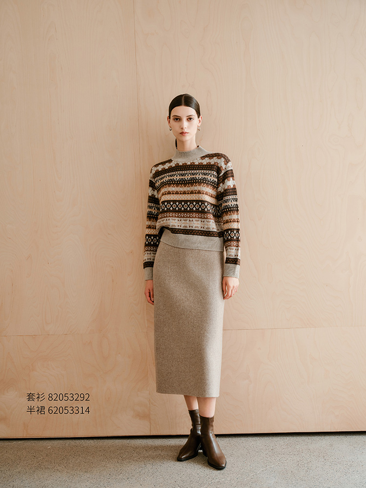 【半高领条纹提花套衫】羊绒世家秋冬新品女士100%山羊绒内搭保暖套衫