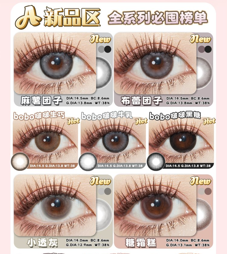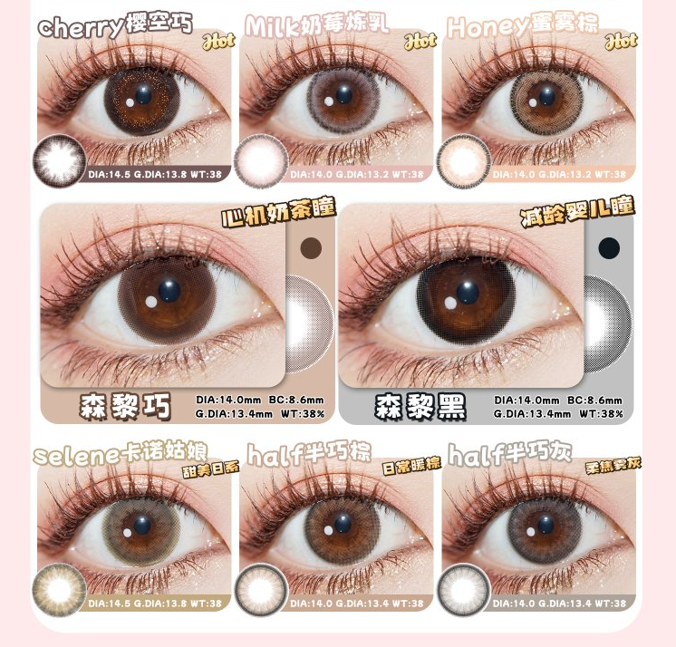 镜片材质: 含硅水凝胶年抛