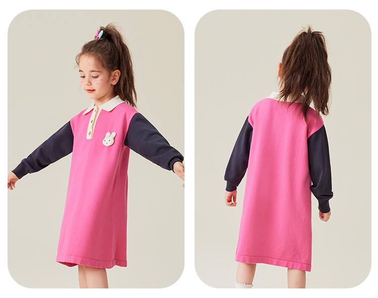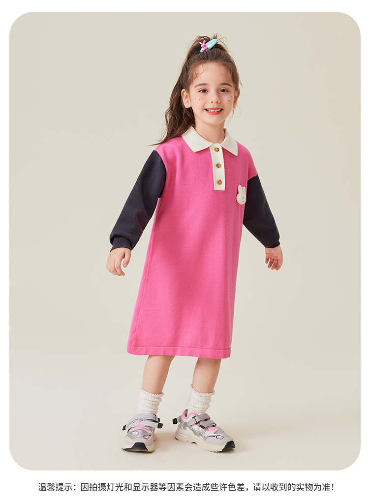 【90-140】【MQDmini】女童撞色毛衫拼接连衣裙