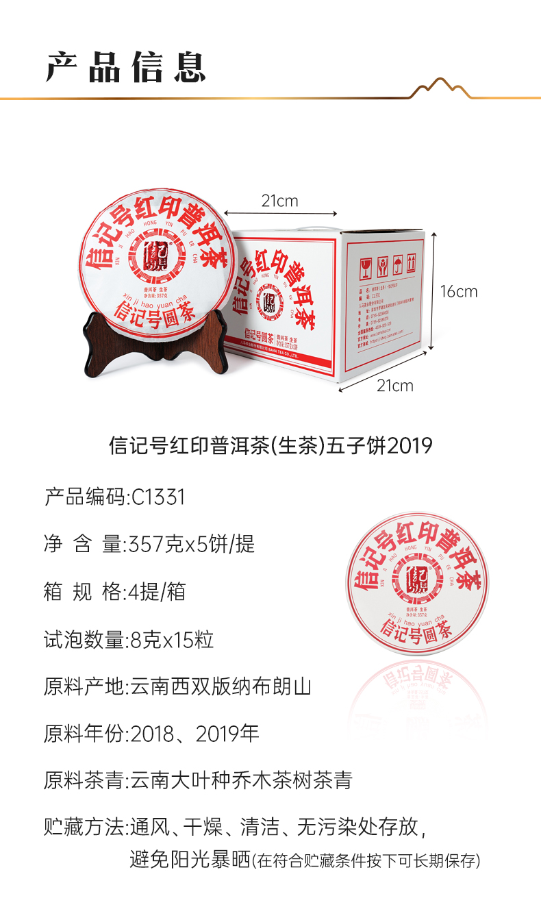 八马信记号|普洱生茶 红印(357克*5饼)C1331