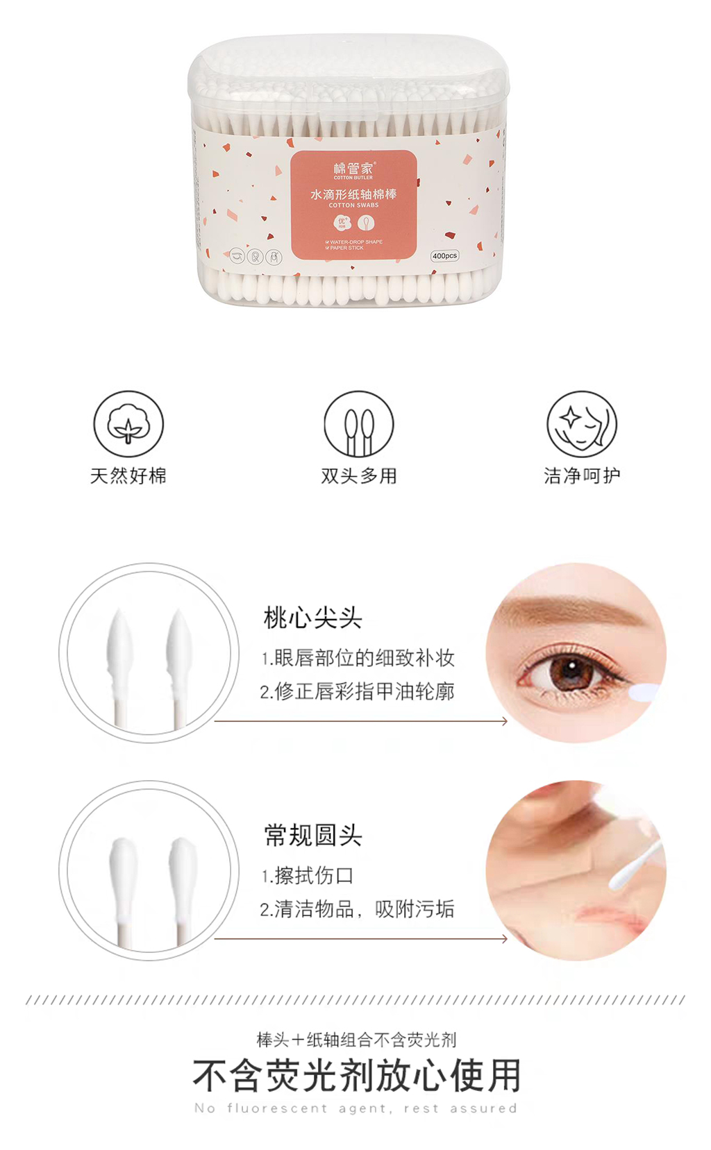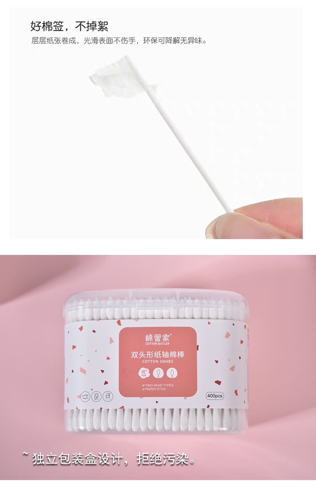 双头棉签掏耳朵化妆一次性卫生棉棒400支/盒 WS20702