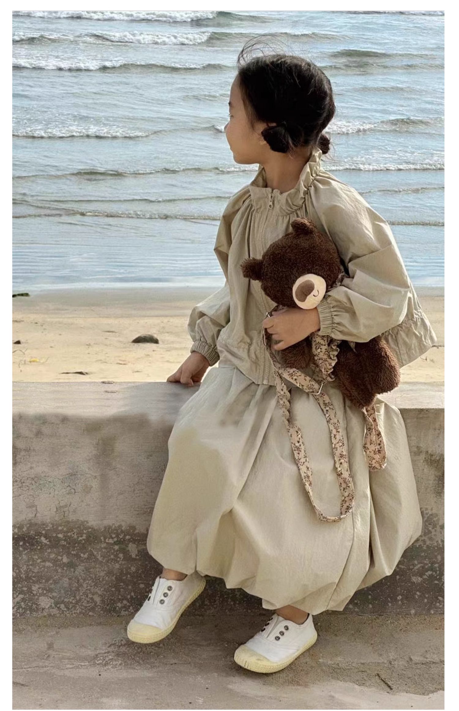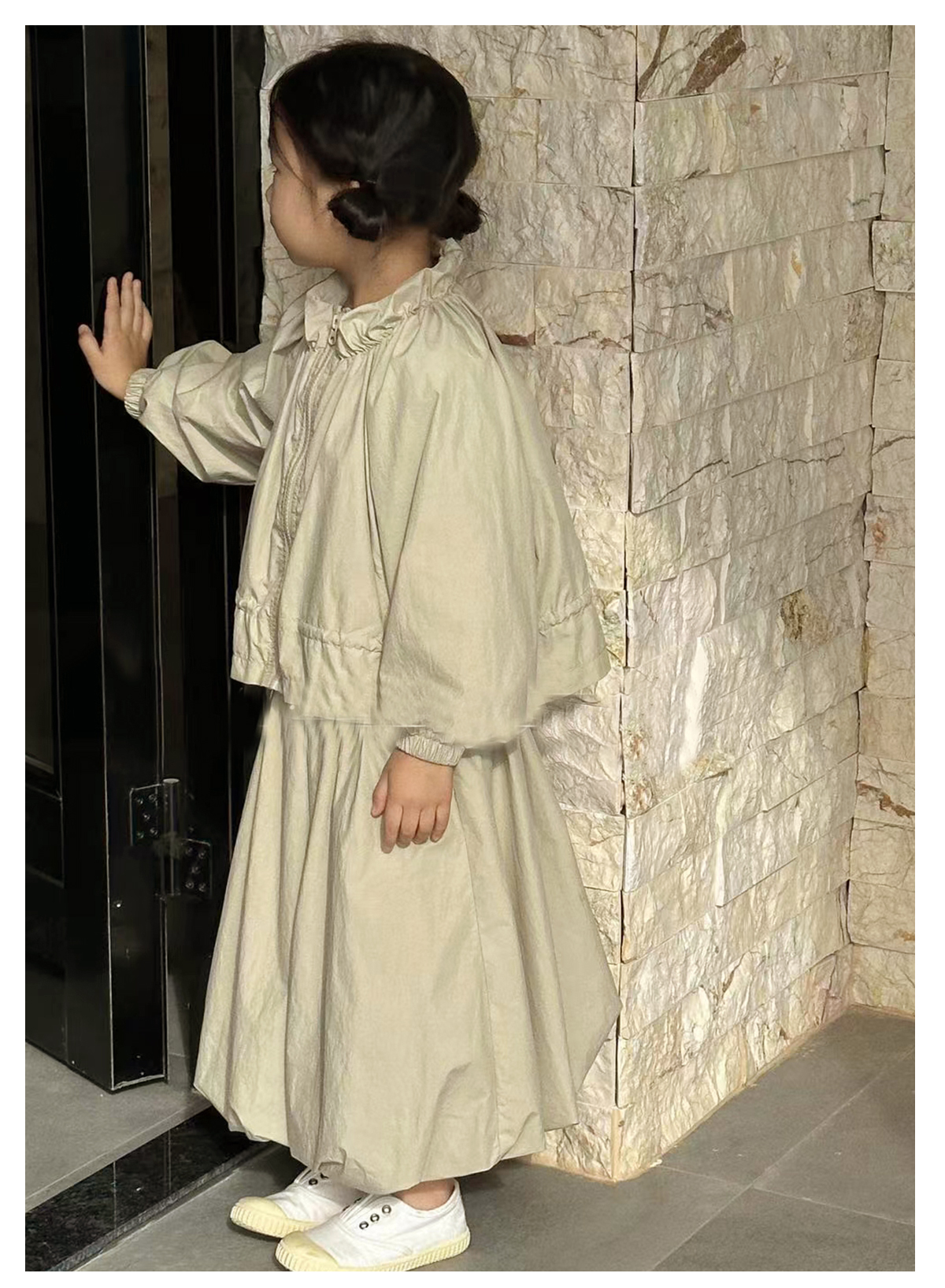 Littletime女童套装春秋新款儿童时尚泡泡袖上衣裙子运动服两件套