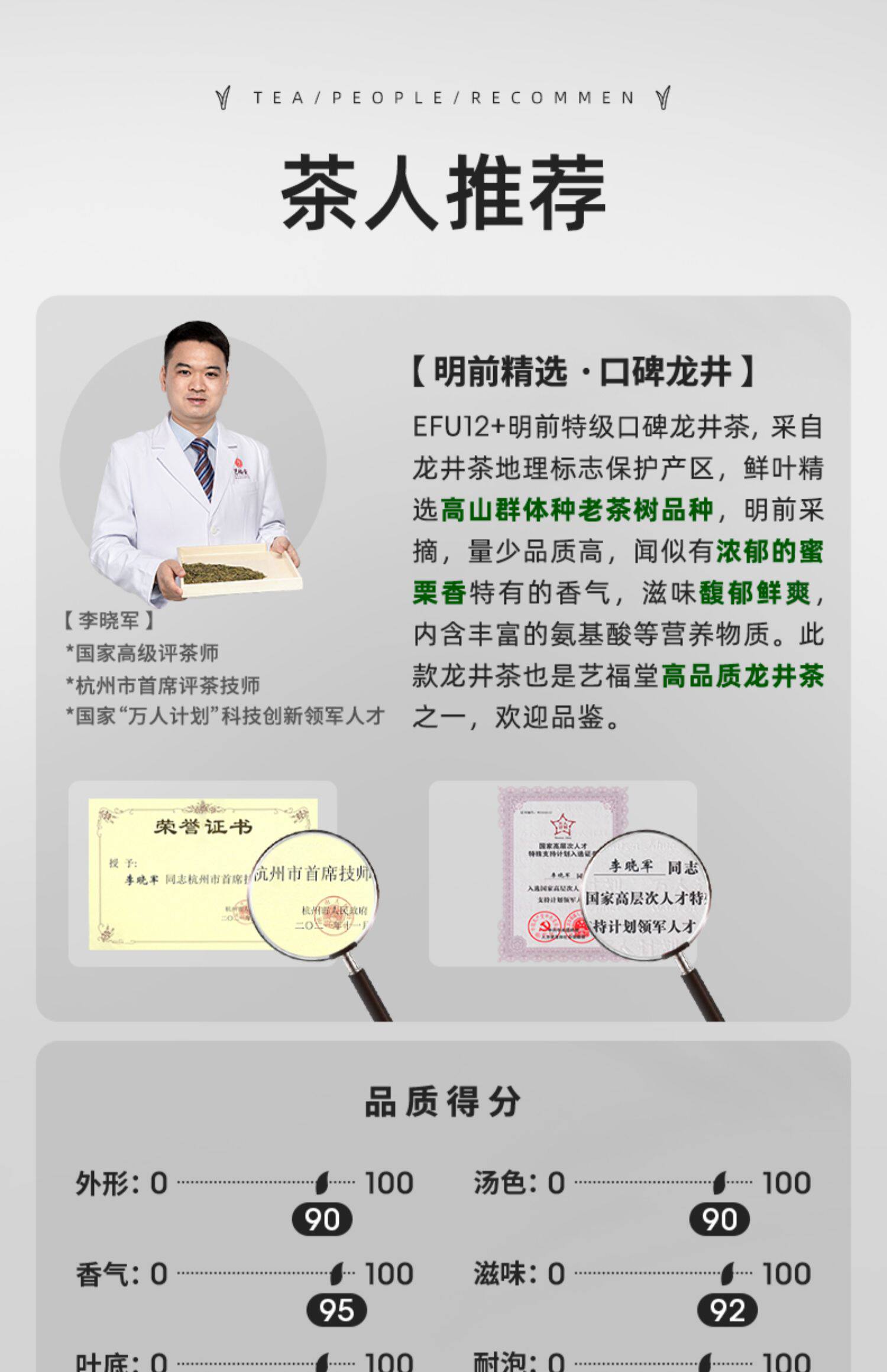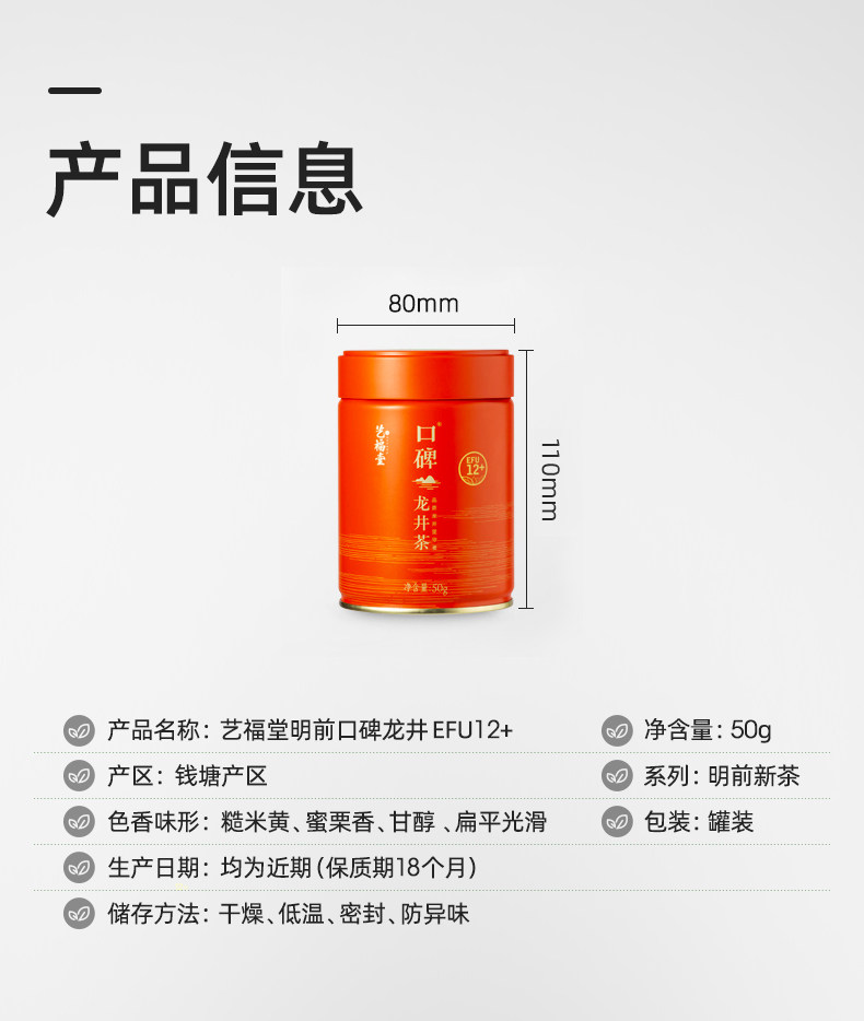 艺福堂 明前特级正宗龙井茶 口碑龙井EFU12+ 2025年新茶 50g/罐