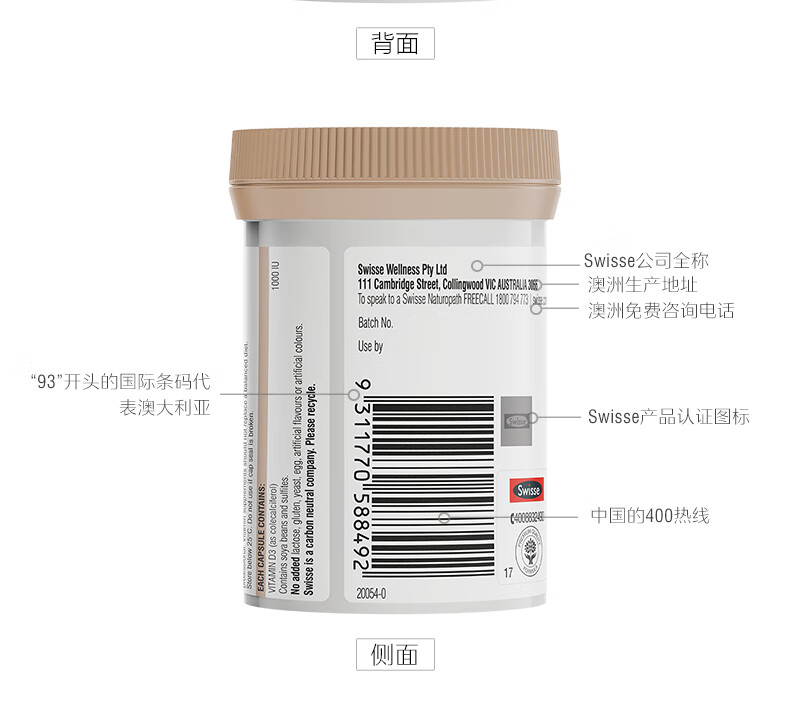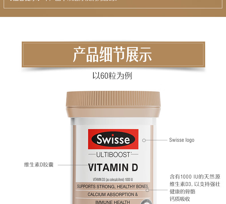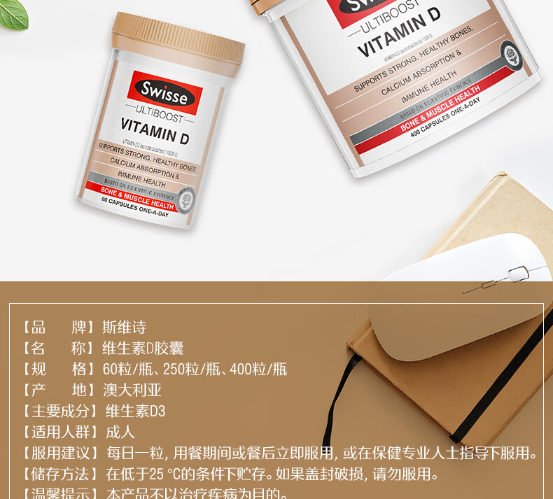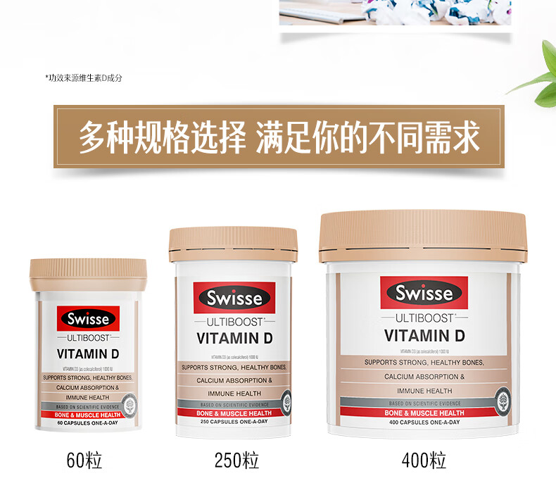 Swisse斯维诗维生素D 400粒 维生素d3片矿物质青少年成人促进钙吸收