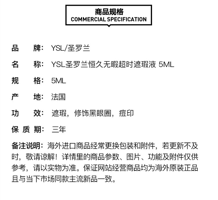 Yves saint Laurent/圣罗兰 恒久无暇超时遮瑕液5ML (4色可选)