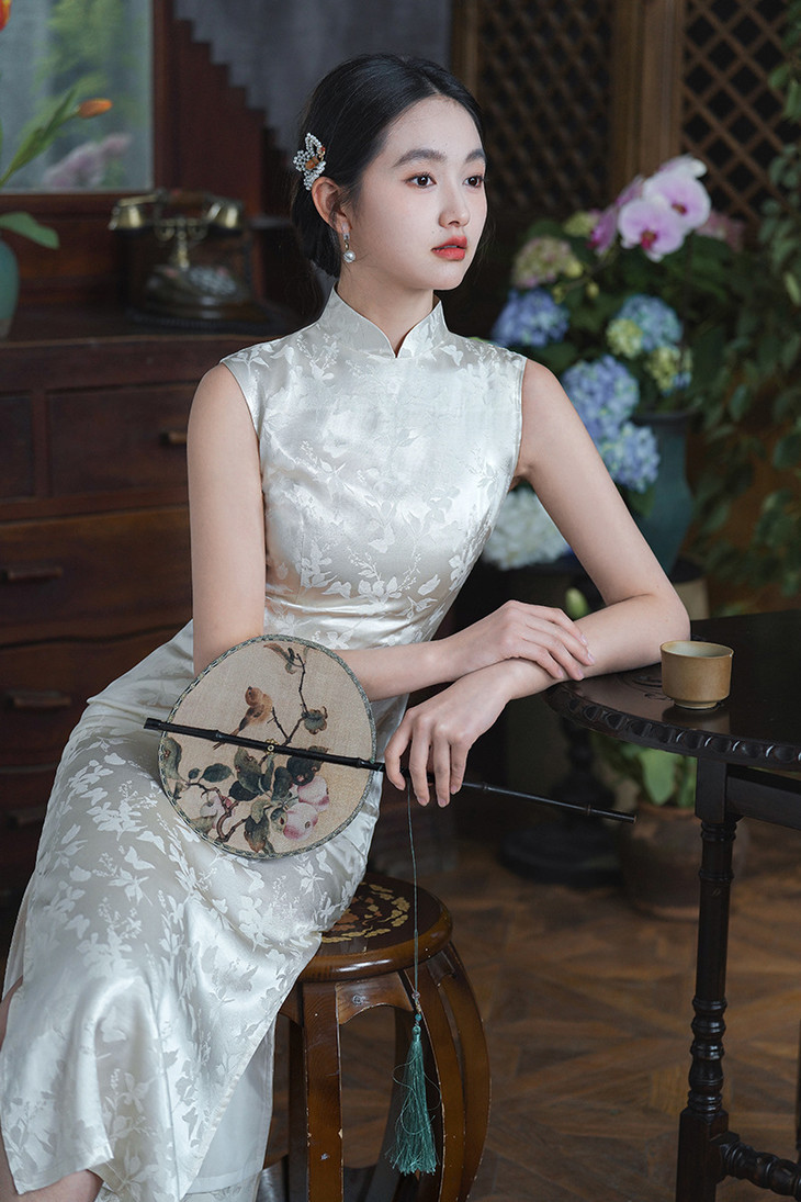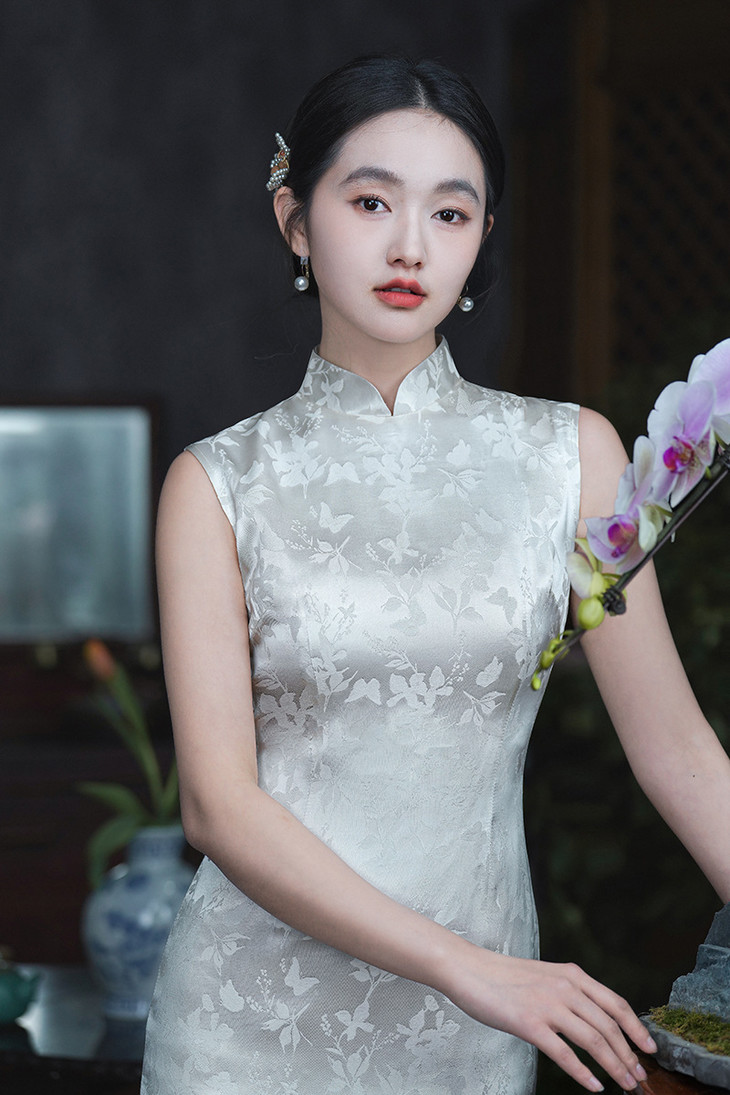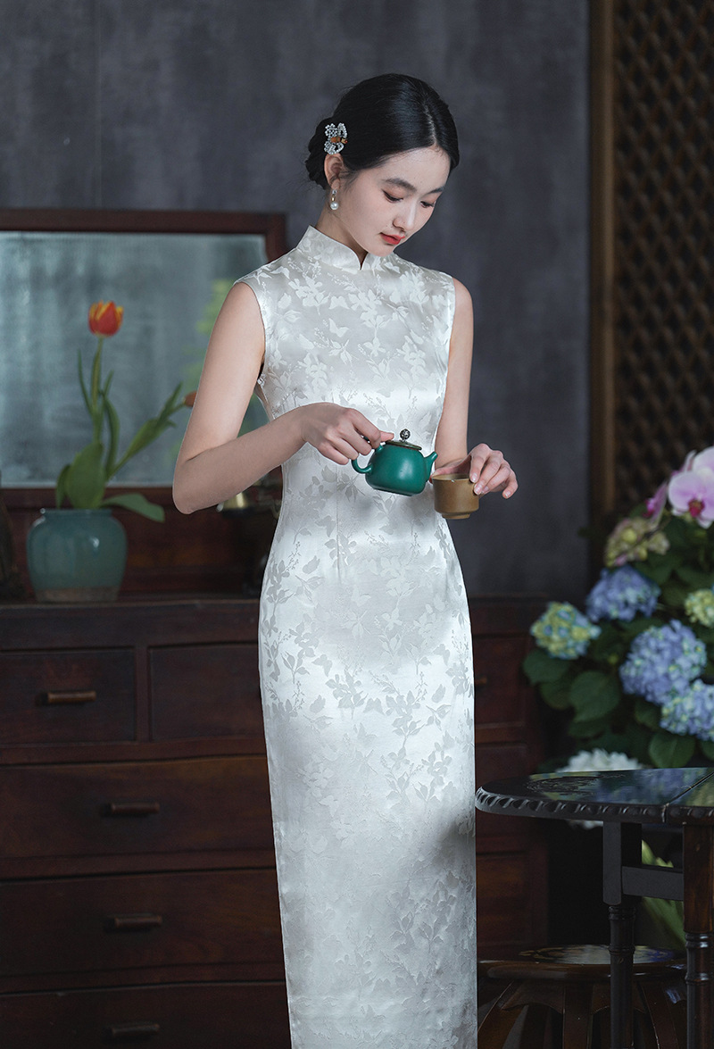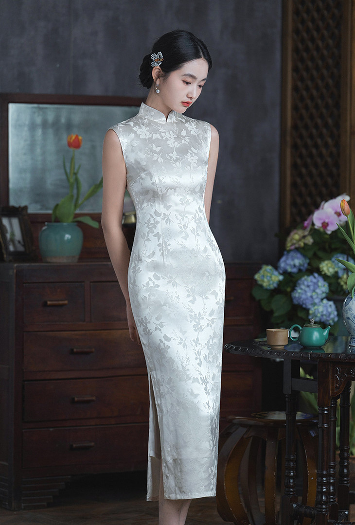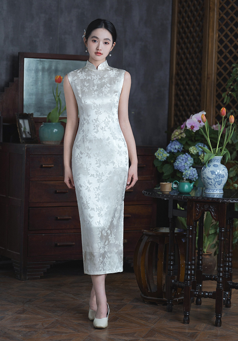 改良白色旗袍,新中式新娘订婚敬酒晚礼服裙连衣裙7729