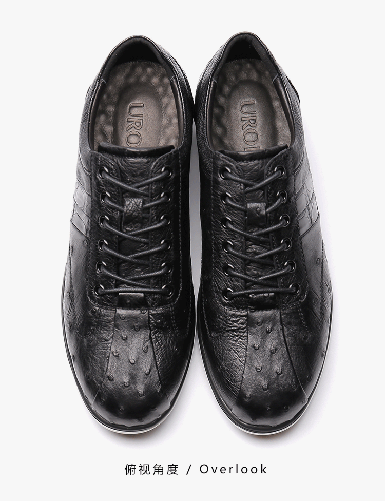 【21春夏新品】UROK新款鸵鸟皮男士防滑耐磨休闲板鞋个性时尚潮流男鞋